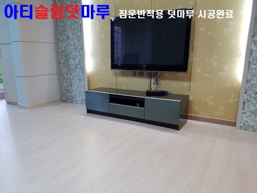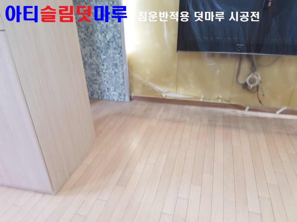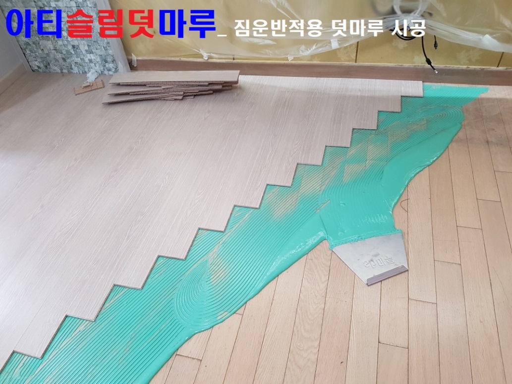 * 살고있는집 짐운반적용덧마루시공 : 살고있는집에 대한 거실 및 주방 냉장고, 에어컨,쇼파등 큰 짐에 한하여 주방싱크대포함 비닐커버링작업후 냉장고등 큰 짐을 옮겨가면서 원목마루용 친환경접착제에의한 나무재질의 바닥재로 밀착시공하여 시간이 지나도 들뜸이 없어 결로현상이 발생되지않아 기존마루에 영향없이 마루새단장 할 수 있으며 표면은 긁힘이나 스크래치 강한 강마루제품을 사용하며 친환경접착제에 의한 시공으로 냄새도 없어 당일시공완료후 바로생활 할 수 있는 장점이 있습니다.