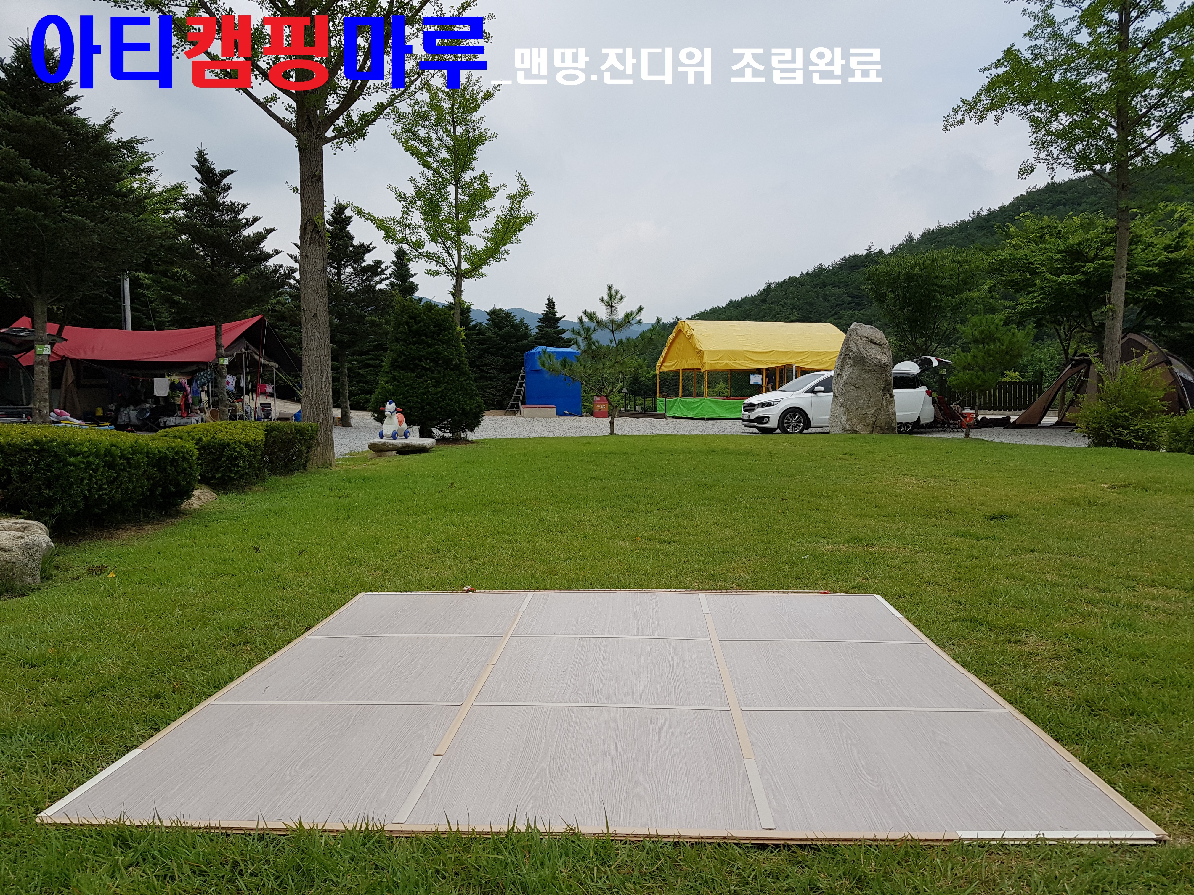 캠핑장 및 야외공간 파쇄석, 잔디, 맨땅등 울퉁불퉁한 불편한 바닥을 거실에 사용되는 강마루바닥재로 야외공간에서 DIY조립하여 사용할 수 있는 특화된 신개념의 조립식 강마루바닥재 아티캠핑마루입니다.