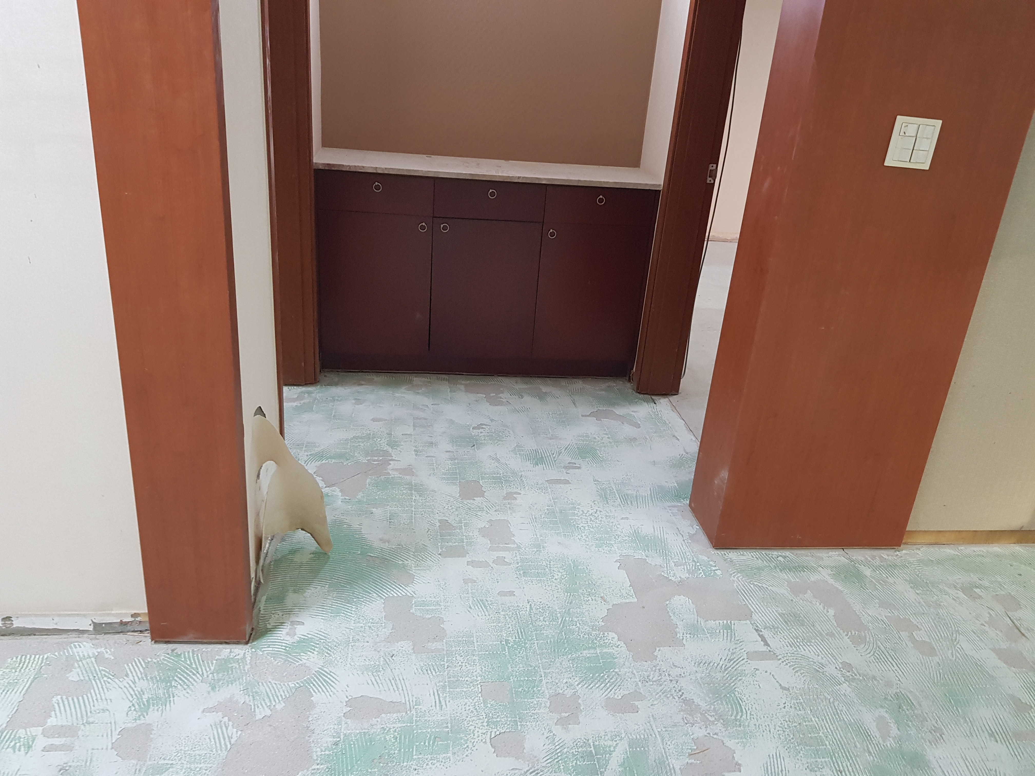 * 이사전 빈집에 대한 NO철거덧마루시공 : 이사 당일 이사 나가고 빈집에 대한 거실 및 주방에 대한 노후바닥에 대한 교체를 최대한 빠른시간내에 원목마루용 친환경접착제에의한 나무재질의 강마루제품으로 밀착시공 완료후 당일 바로 이사후 생활 할 수 있는 마루시공방법입니다.