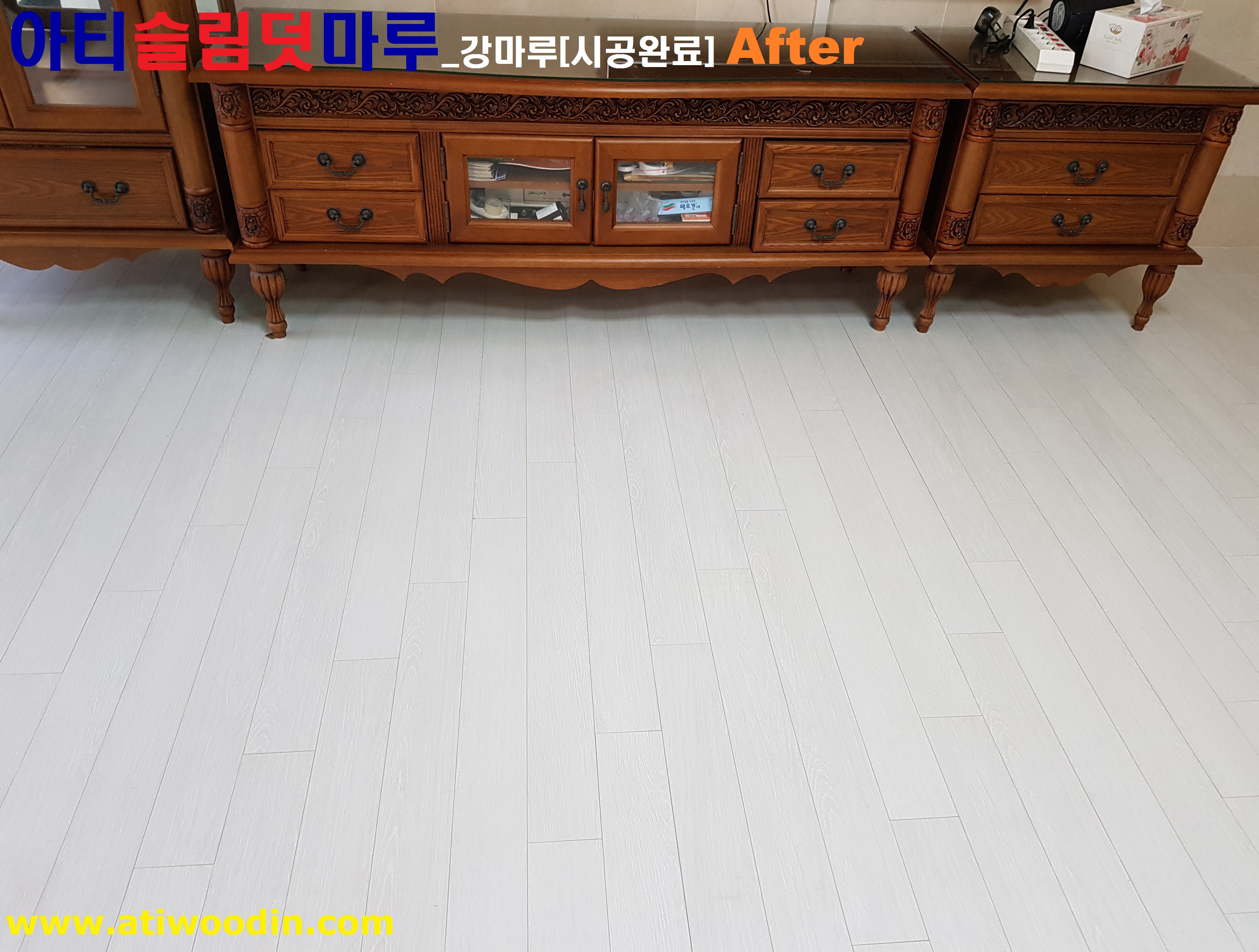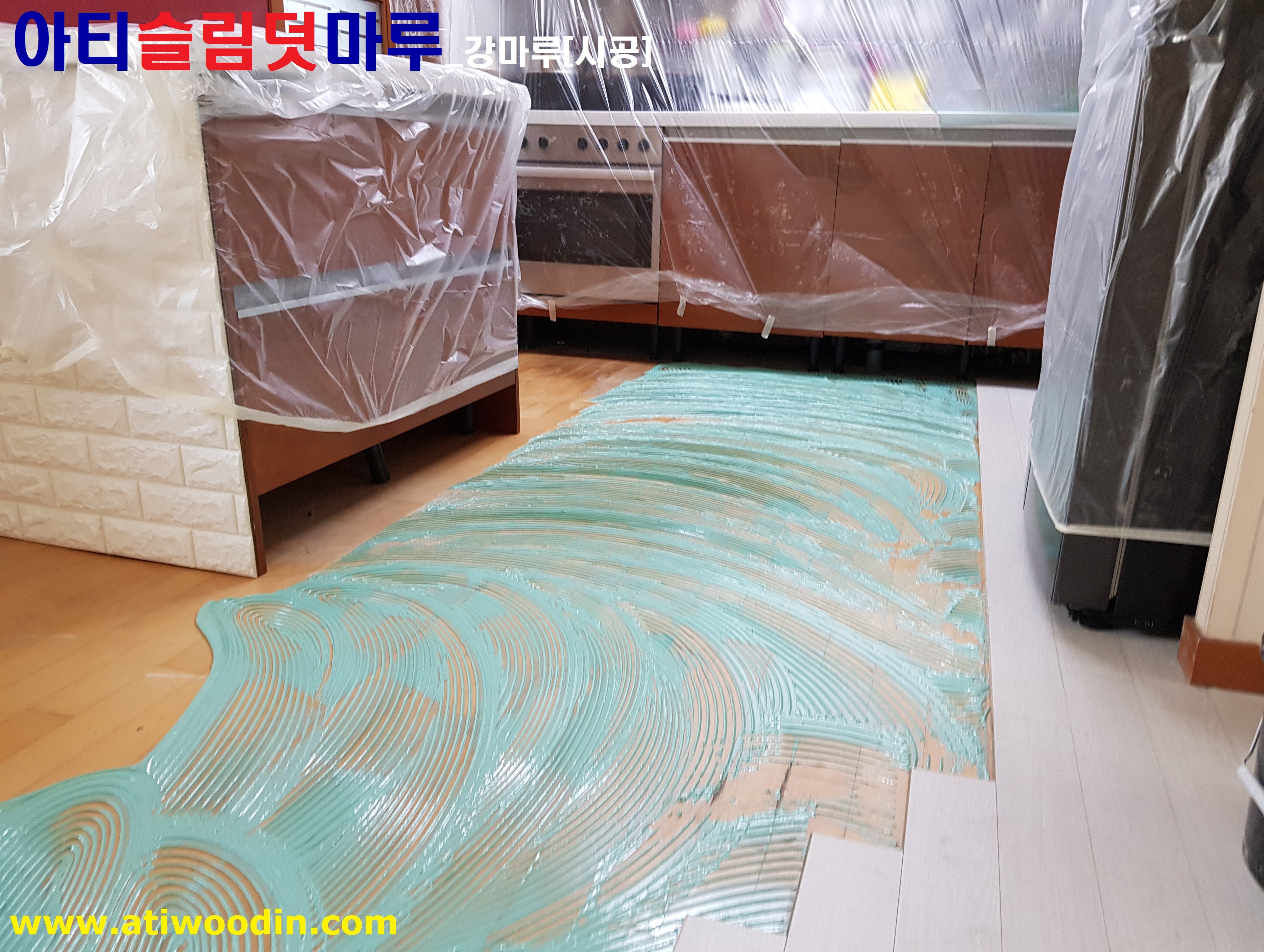 아파트 살고있는집 거실 및 주방 노후온돌마루시공을 아티슬림덧마루_강마루시공으로 마루보수 고민해결 당일시공완료 마루새단장 할수 있습니다.