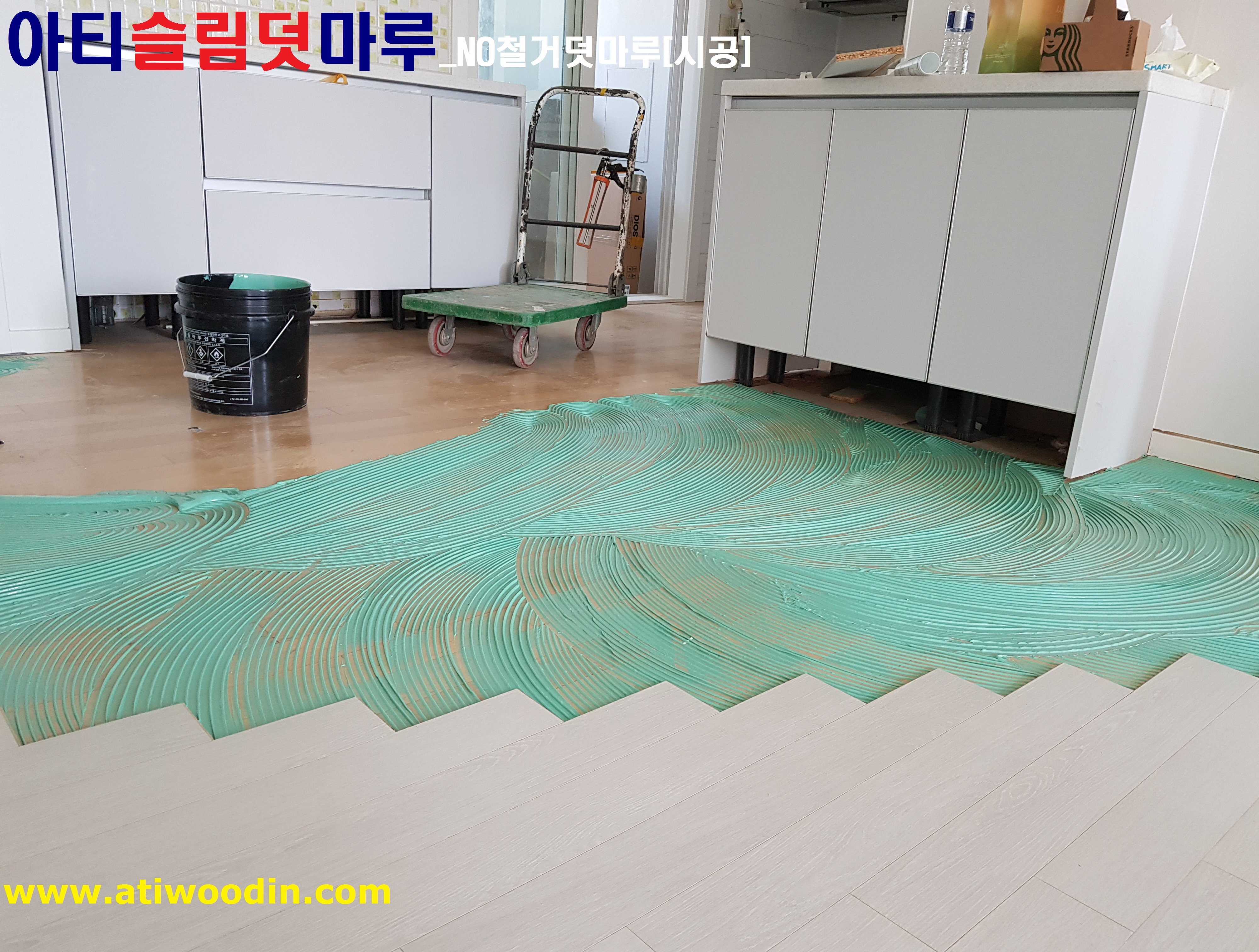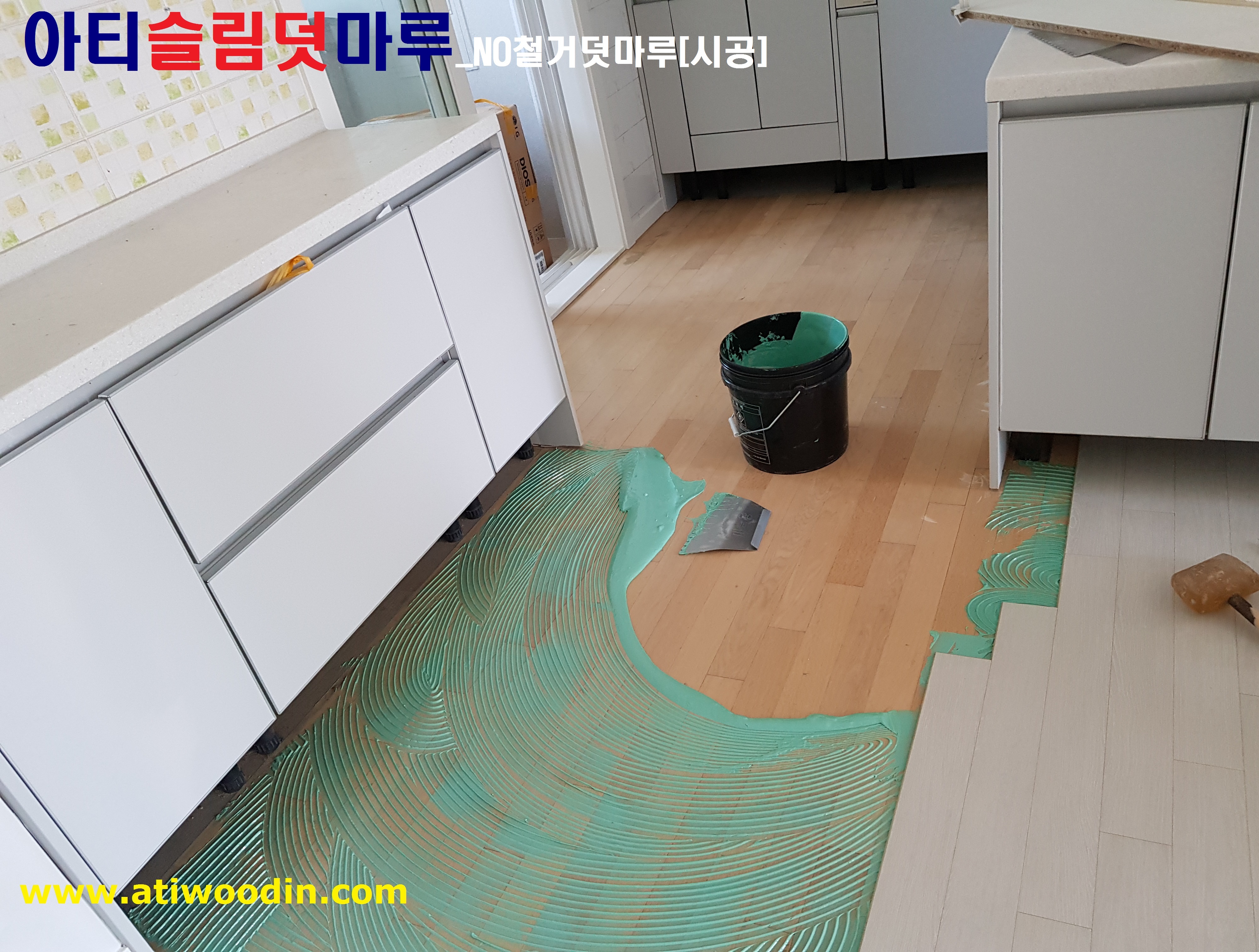 2. NO철거덧마루시공-원목마루용 친환경접착제에의한 나무재질의 강마루바닥재로 밀착시공
