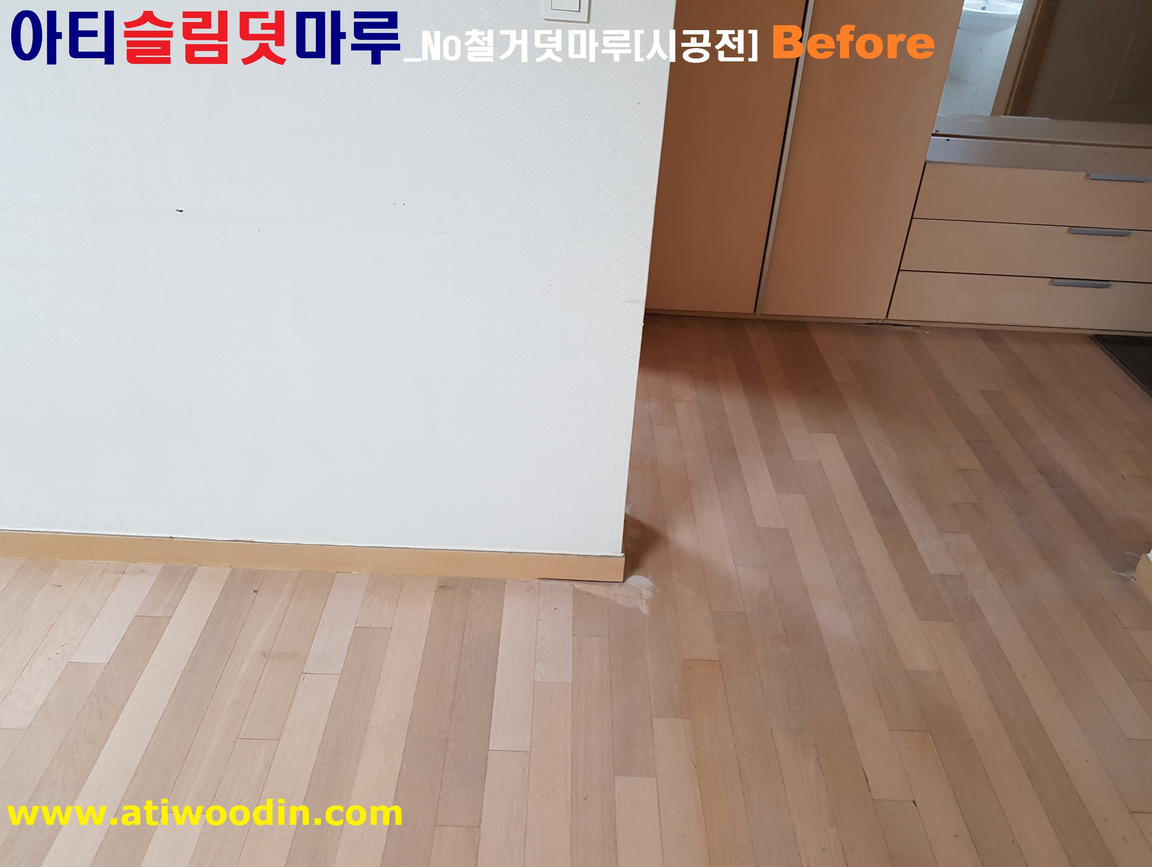 아티슬림덧마루_강마루시공은 기존 노후마루에 대한 NO철거로 철거소음, 철거먼지, 철거비용과 시간등 철거고민없이 마루교체 가능하며 원목마루용 친환경접착제에의한 나무재질의 바닥재를 사용하여 밀착시공으로 시간이 지나도 들뜸현상이 없어 바닥재에 대한 결로현상보완으로 기존 마루에 영향없이 마루새단장 할 수 있으며 난방에 대해서도 기존 생활하는거와 차이없이 생활 가능하며 표면을 긁힘이나 스크래치 강한 나무재질의 강마루바닥재를 사용하며 친환경접착제 사용으로 당일시공완료후 바로생활 할 수 있는 장점의 시공방법으로 살고있는집에 대한 짐운반적용덧마루시공과 이사전 빈집에 대한 NO철거덧마루시공 2가지 시공방법으로 구분하여 진행하고 있습니다.