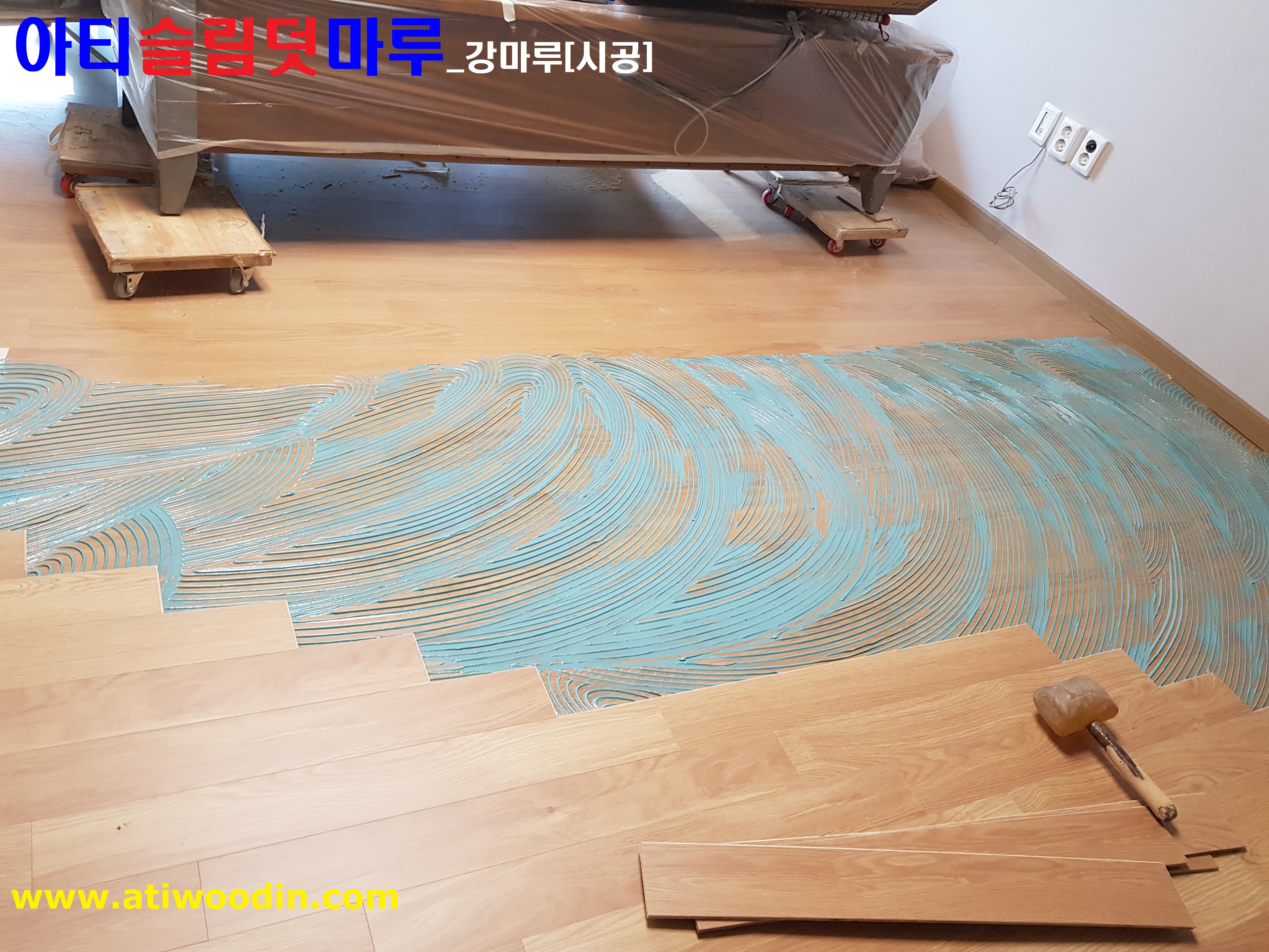 3. 짐운반적용덧마루시공 -원목마루용 친환경접착제에의한 나무재질의 바닥재를 사용하여 쇼파 냉장고,식탁등 큰 짐을 옮겨가면서 덧마루 밀착시공