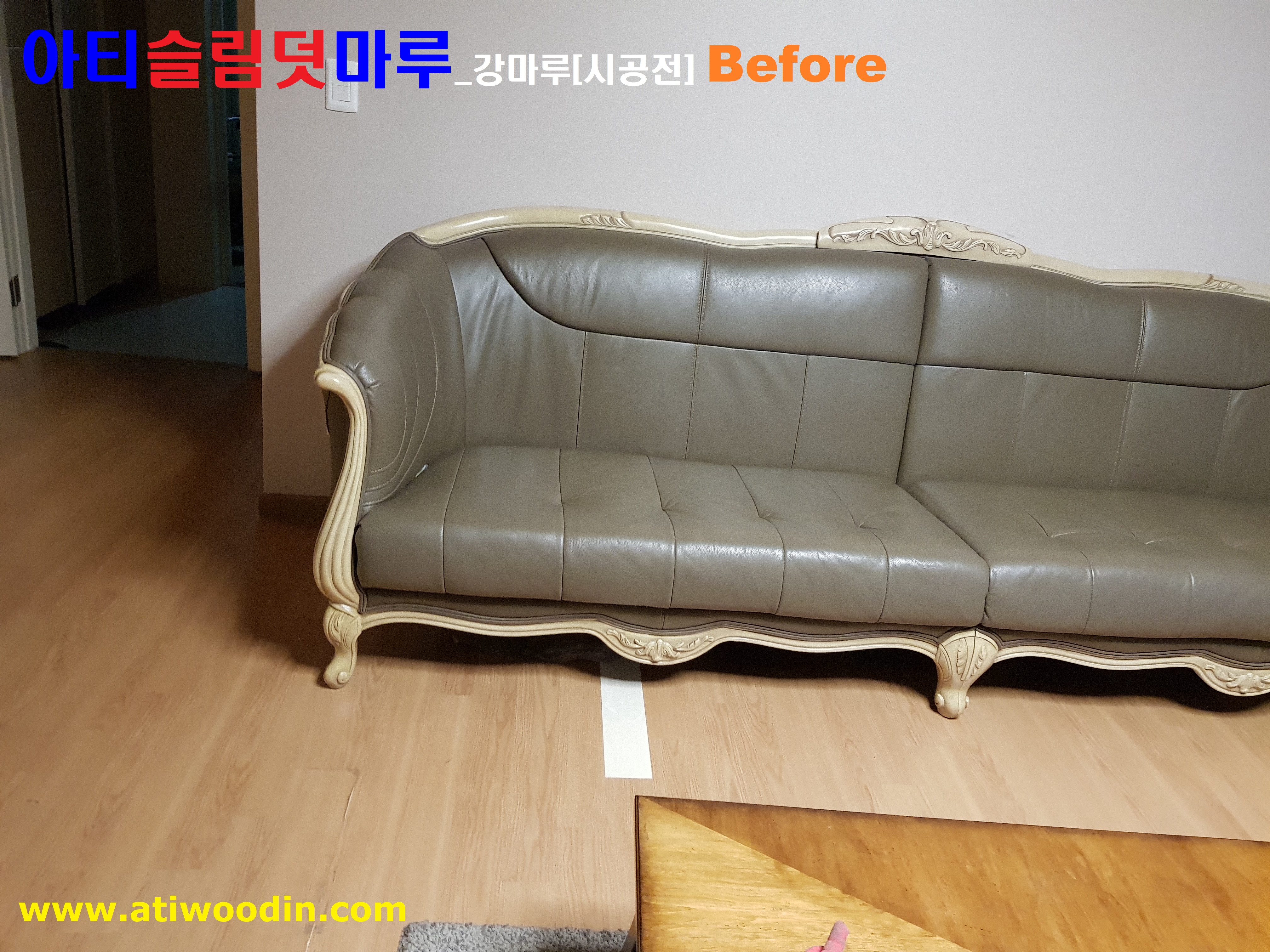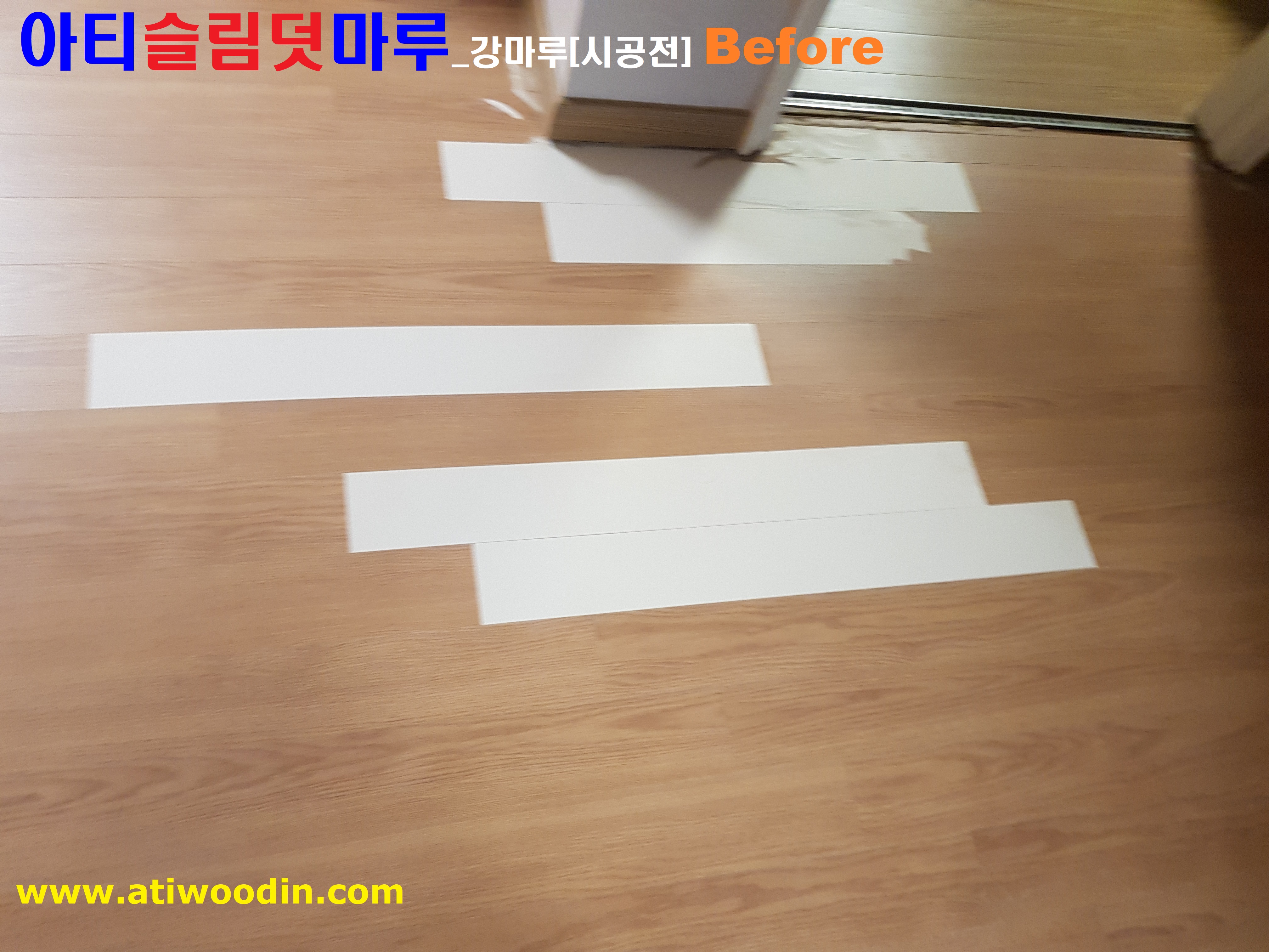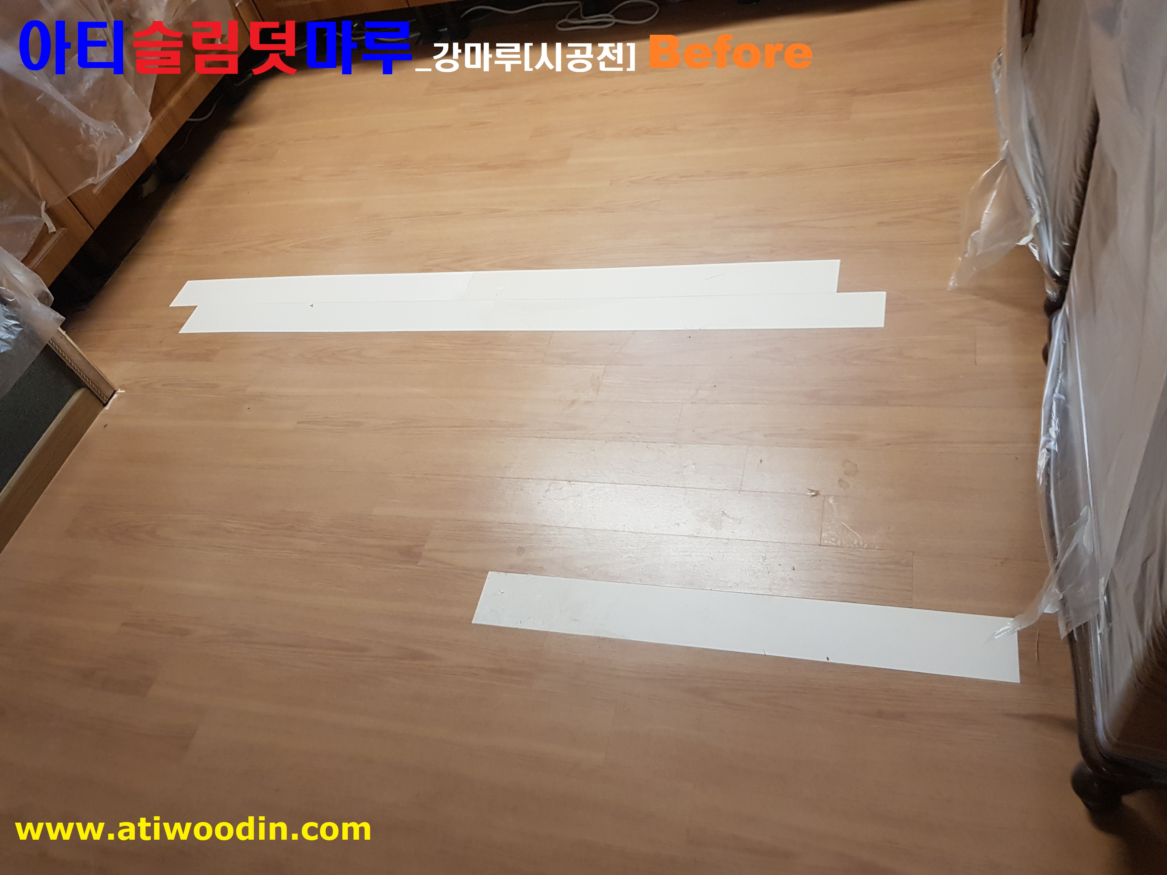 1. 짐운반적용덧마루시공전 - 색상변색 ,벚겨짐 및 긁힘등 노후바닥으로 덧마루시공전 Before