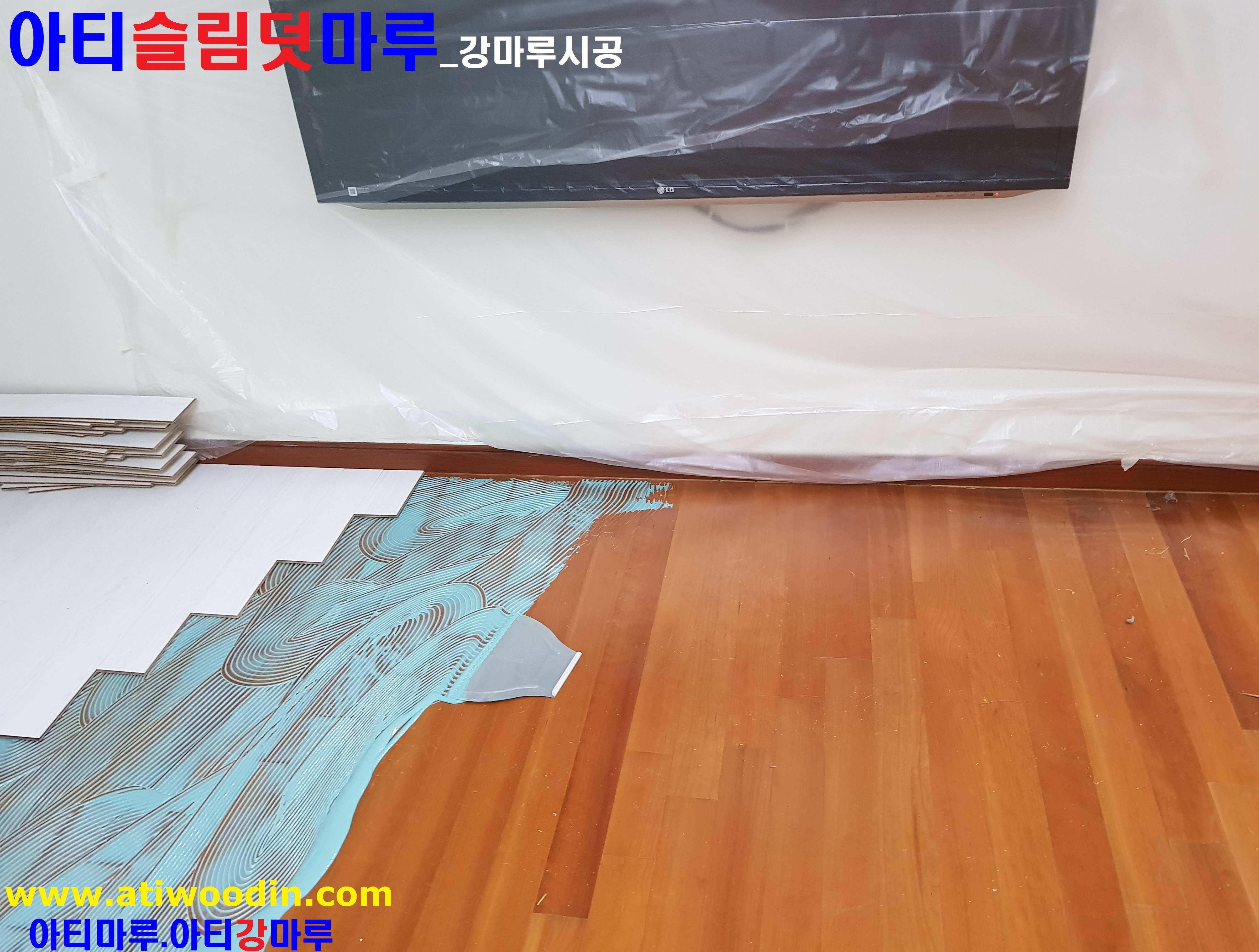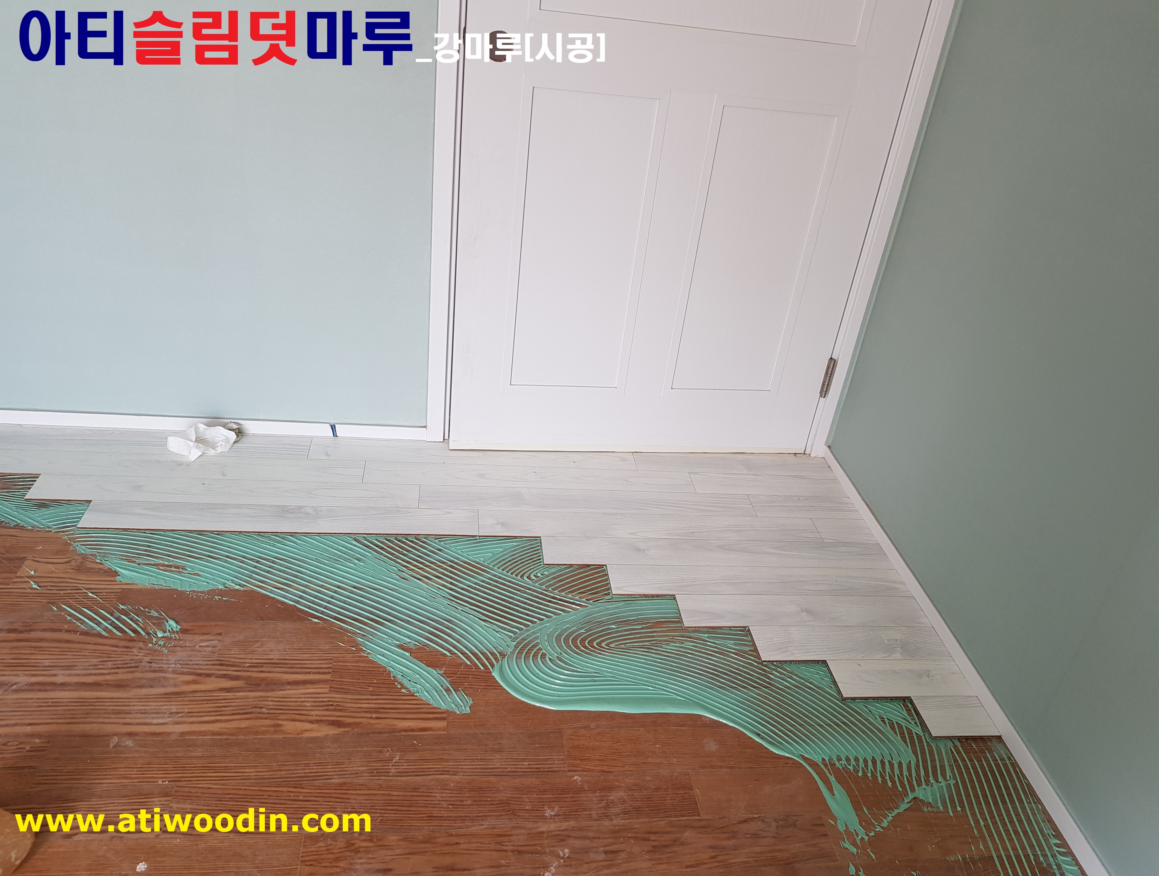 2. NO철거덧마루시공-원목마루용 친환경접착제에의한 나무재질의 강마루바닥재를 적용하여 밀착시공