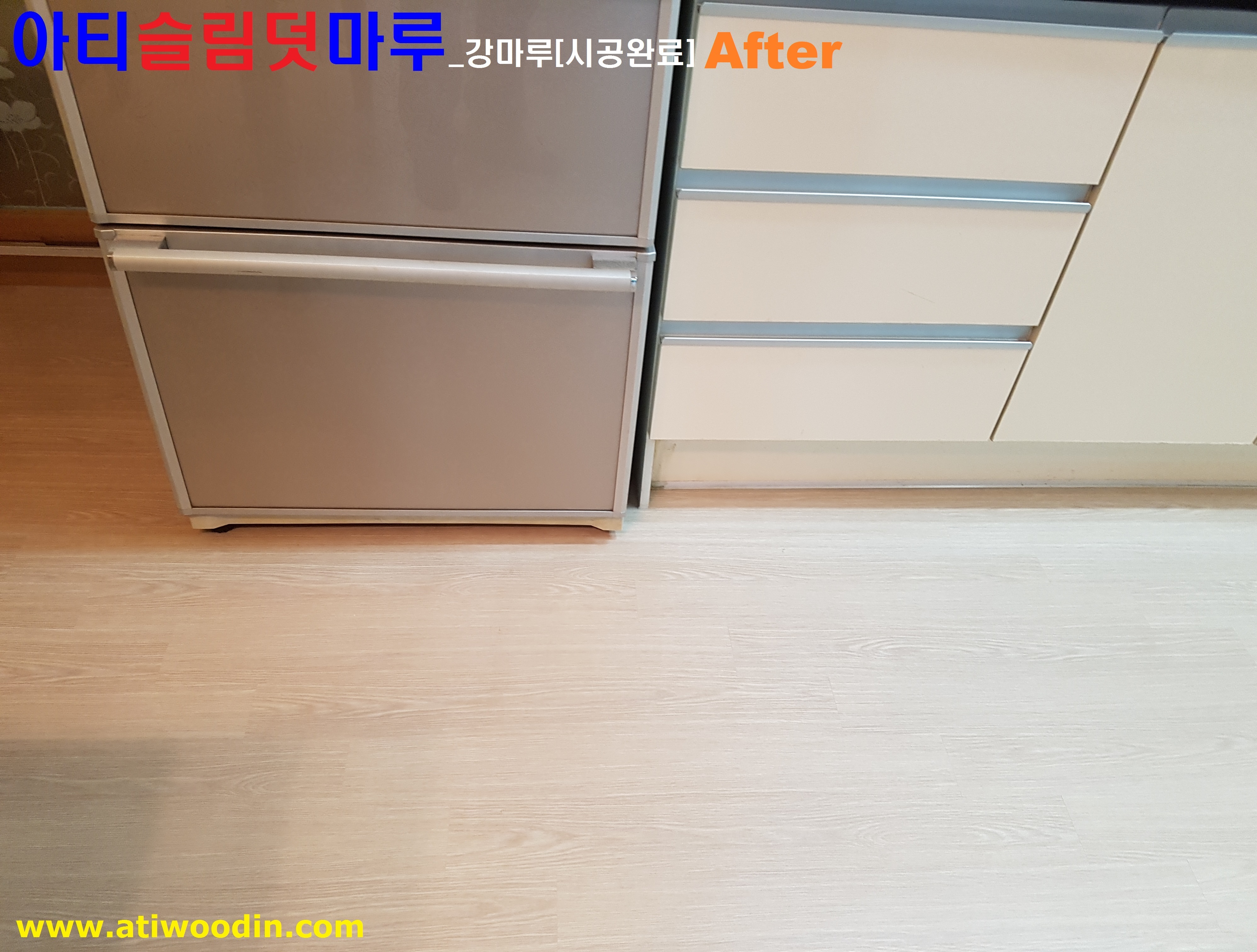 아파트 살고있는집 거실 및 주방 바닥표면의 노후로 표면이 벚겨짐의 하자발생에 대한 노후온돌마루시공을 아티슬림덧마루_강마루시공으로 마루보수 고민해결 당일시공완료 마루새단장 사례입니다.