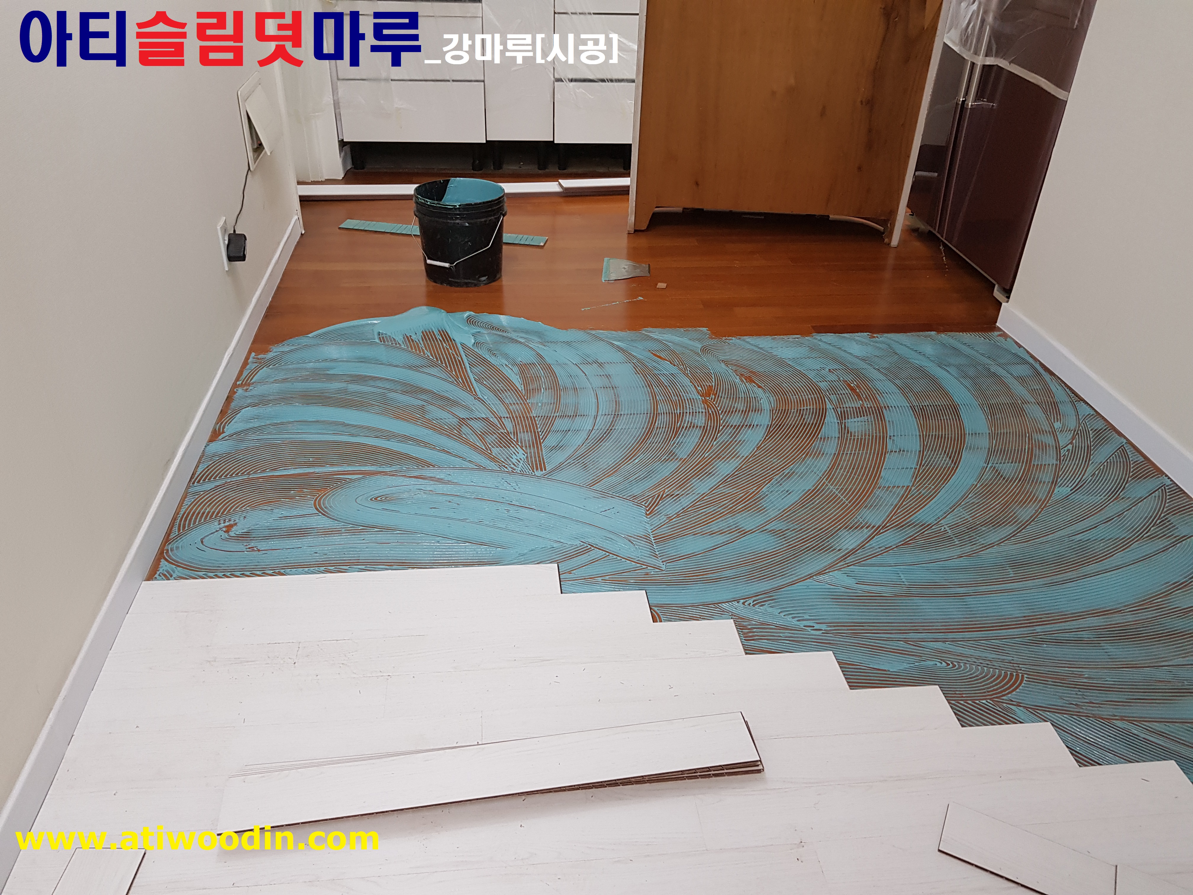 * 이사전 빈집에 대한 NO철거덧마루시공 : 이사 당일 이사 나가고 빈집에 대한 거실 및 주방에 대한 노후바닥에 대한 교체를 최대한 빠른시간내에 원목마루용 친환경접착제에의한 나무재질의 강마루제품으로 밀착시공 완료후 당일 바로 이사후 생활 할 수 있는 마루시공방법입니다.