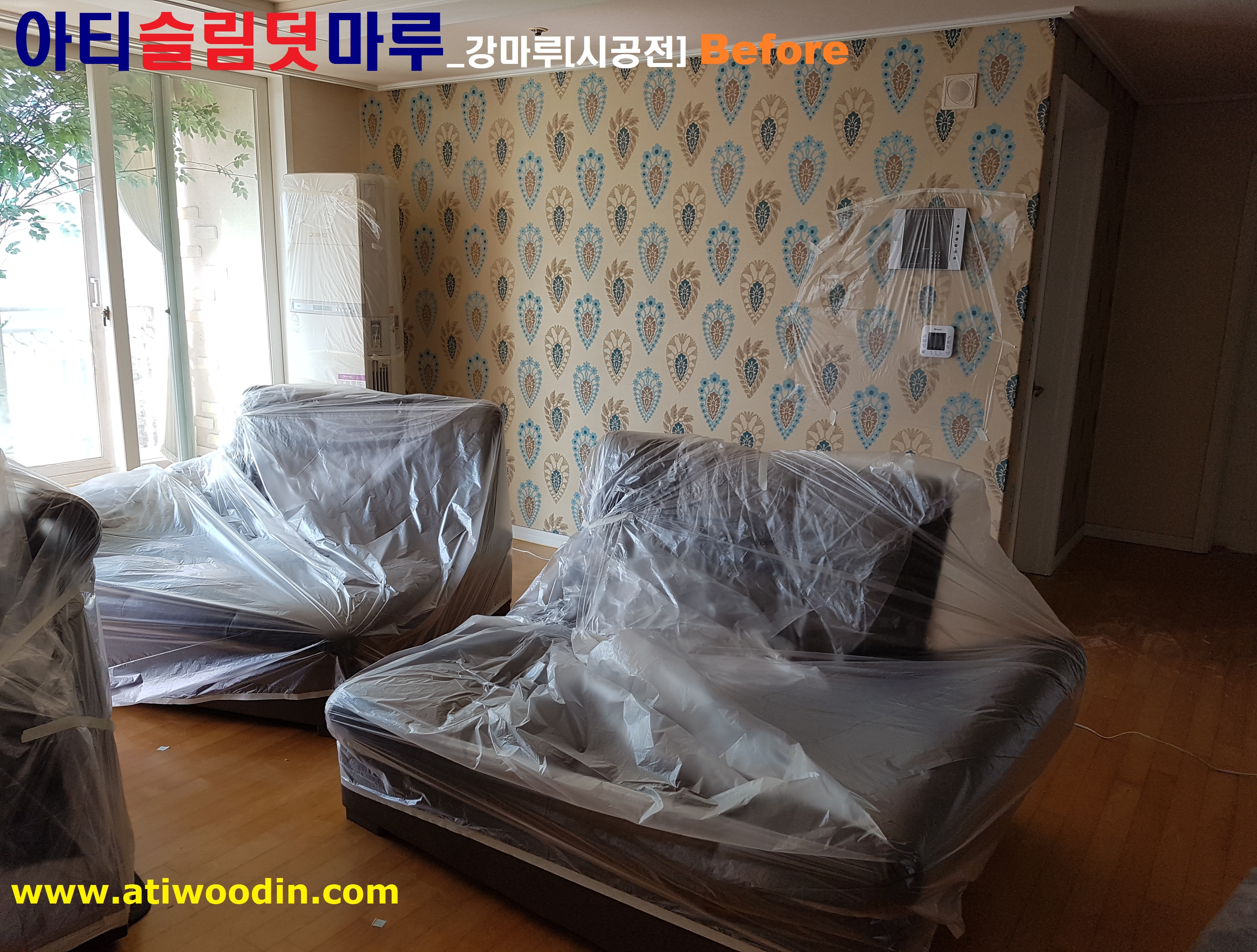 2. 짐운반적용덧마루시공전 사전준비작업- 살고있는집 거실 및 주방 쇼파등 큰 짐에 한하여 비닐커버링작업
