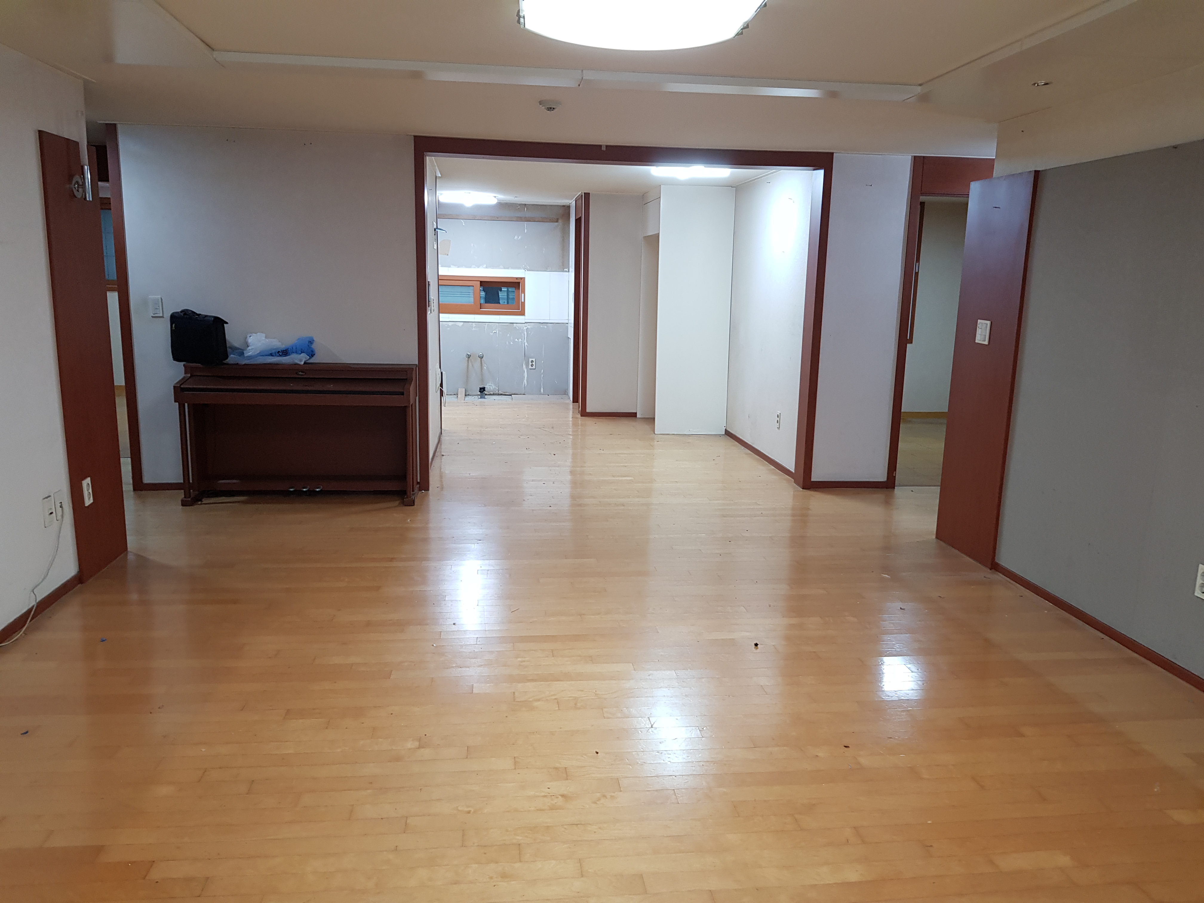 이사하기전 비워있는집에 대한 노후온돌 마루 철거후 원목마루용 친환경접착제에의한 강마루 및 온돌마루제품 과 헤링본제품으로 마루시공 방법입니다