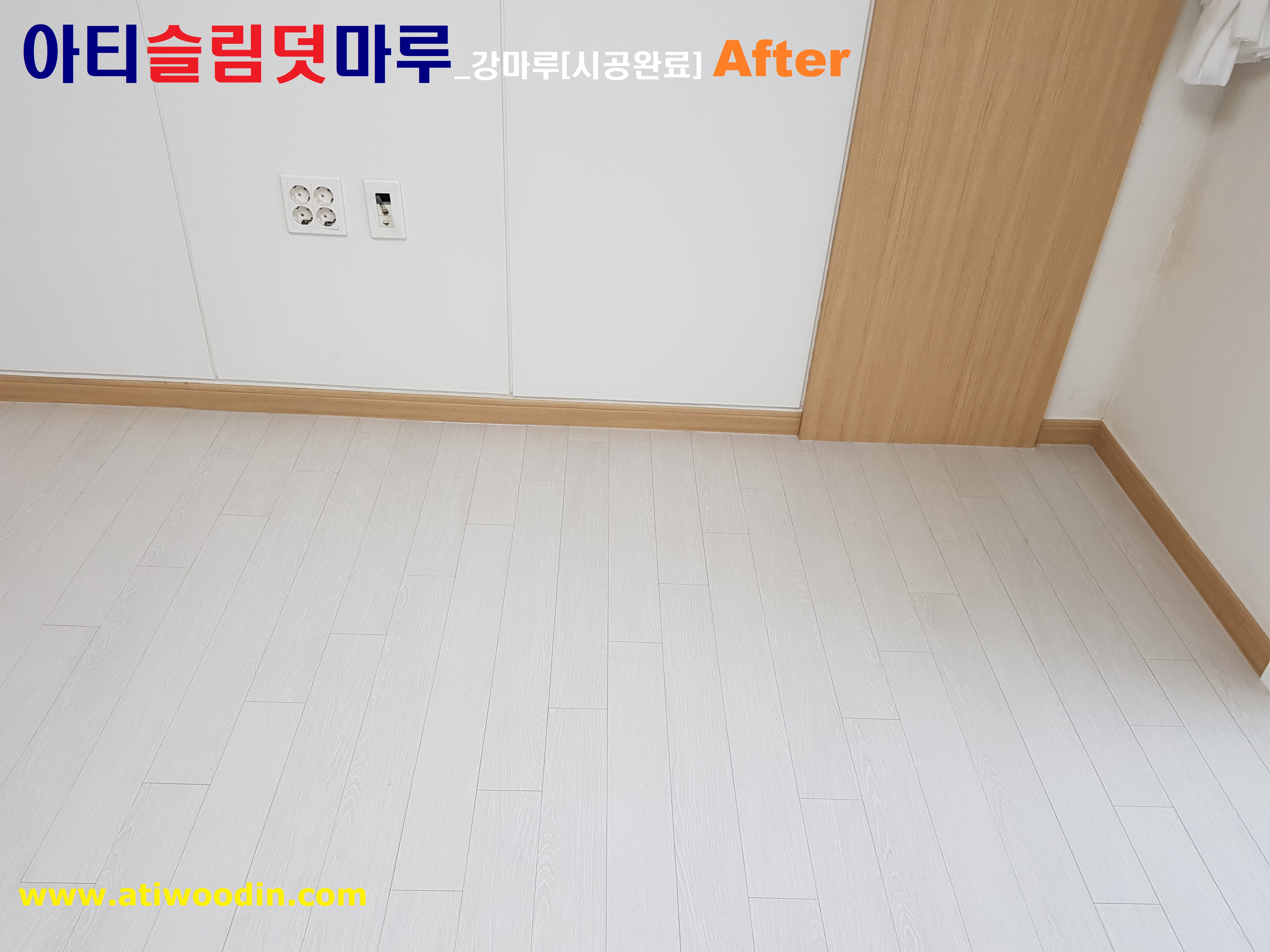 원목마루용 친환경접착제에의한 나무재질의 바닥재를 밀착시공하여 시간이 지나도 들뜸현상이 없어 결로현상이 발생되지 않아 기존마루에 영향이 없으며 표면은 긁힘이나 스크래치가 강한 나무재질의 강마루제품을 사용하며 친환경접착제사용으로 냄새도없어 당일시공후 바로생활 할 수 있는 장점이 있습니다.