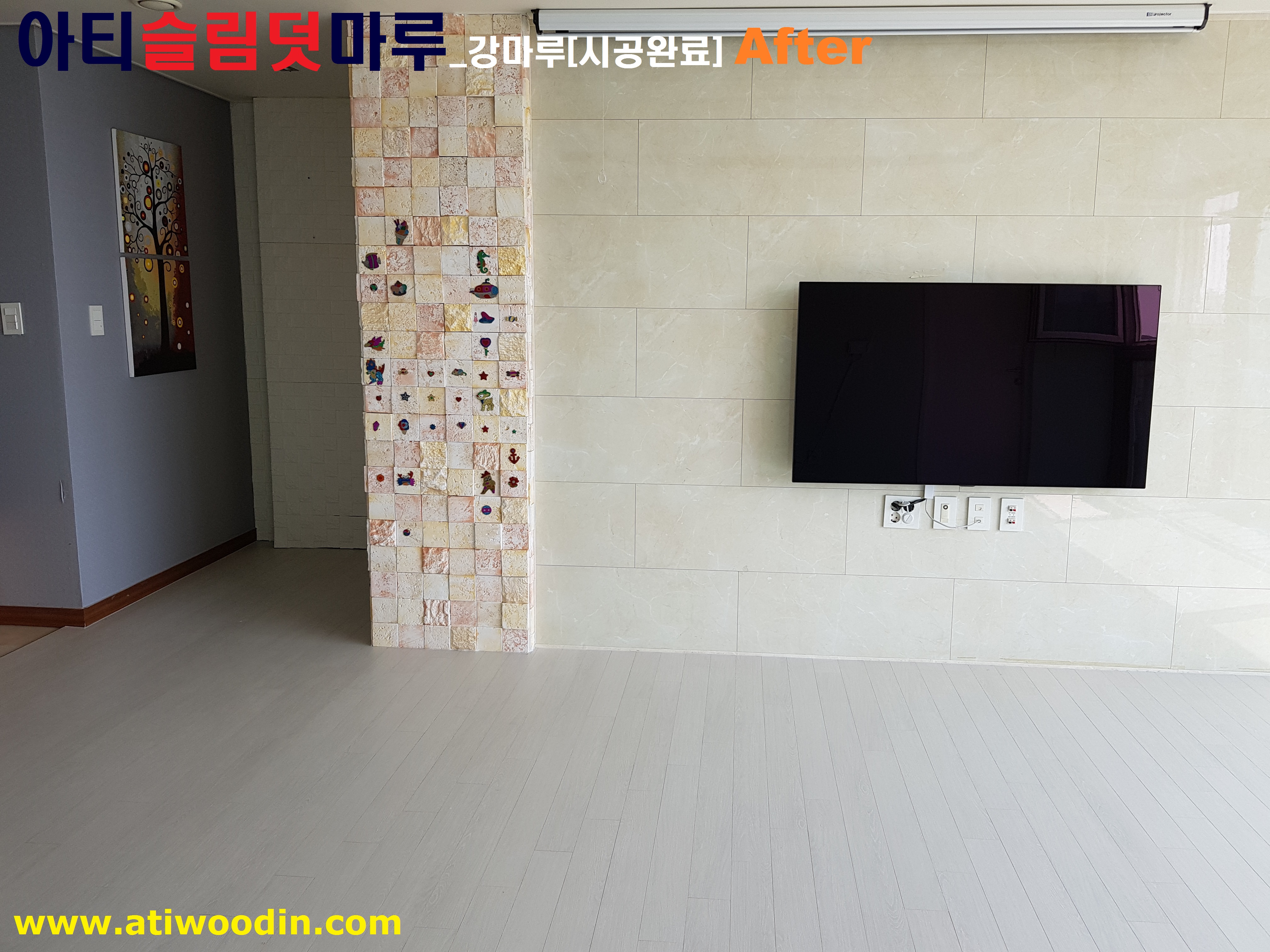 아파트 살고있는집에 대한 거실 및 주방 노후온돌마루시공을 아티슬림덧마루_강마루시공으로 빠른시간내에 노후마루교체완료 바로생활 할 수 마루시공사례입니다.