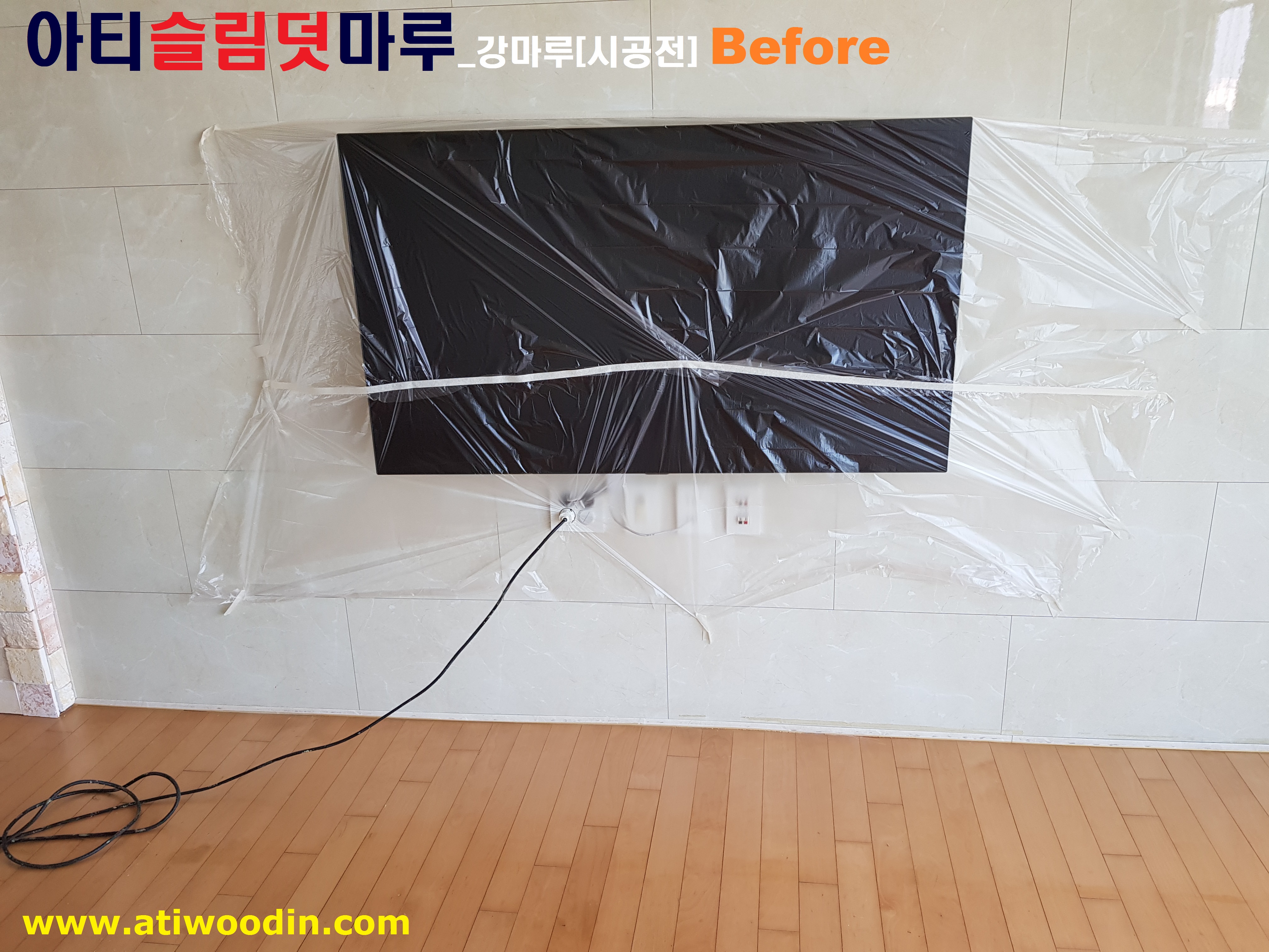 2. 짐운반적용덧마루시공전 준비작업- 거실 및 주방 냉장고,쇼파등 큰 짐에 한하여 비닐커버링작업으로 생활 짐에 대한 먼지 최소화를 위하여 준비작업
