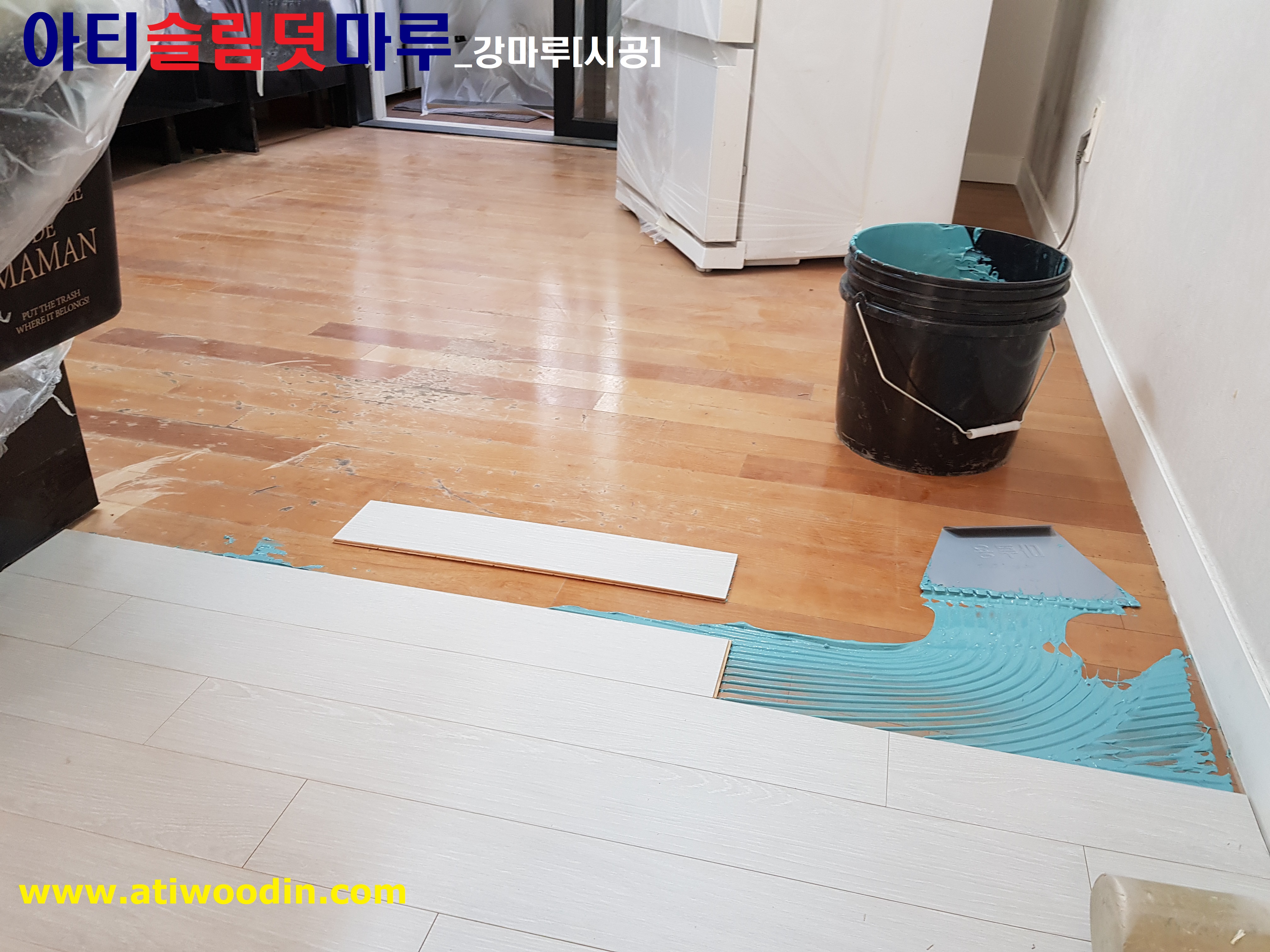 아파트 및 빌라 살고있는집 거실 및 주방 노후온돌마루시공을 아티슬림덧마루_강마루시공으로 마루보수 고민해결 당일시공완료 마루새단장 할수 있습니다.