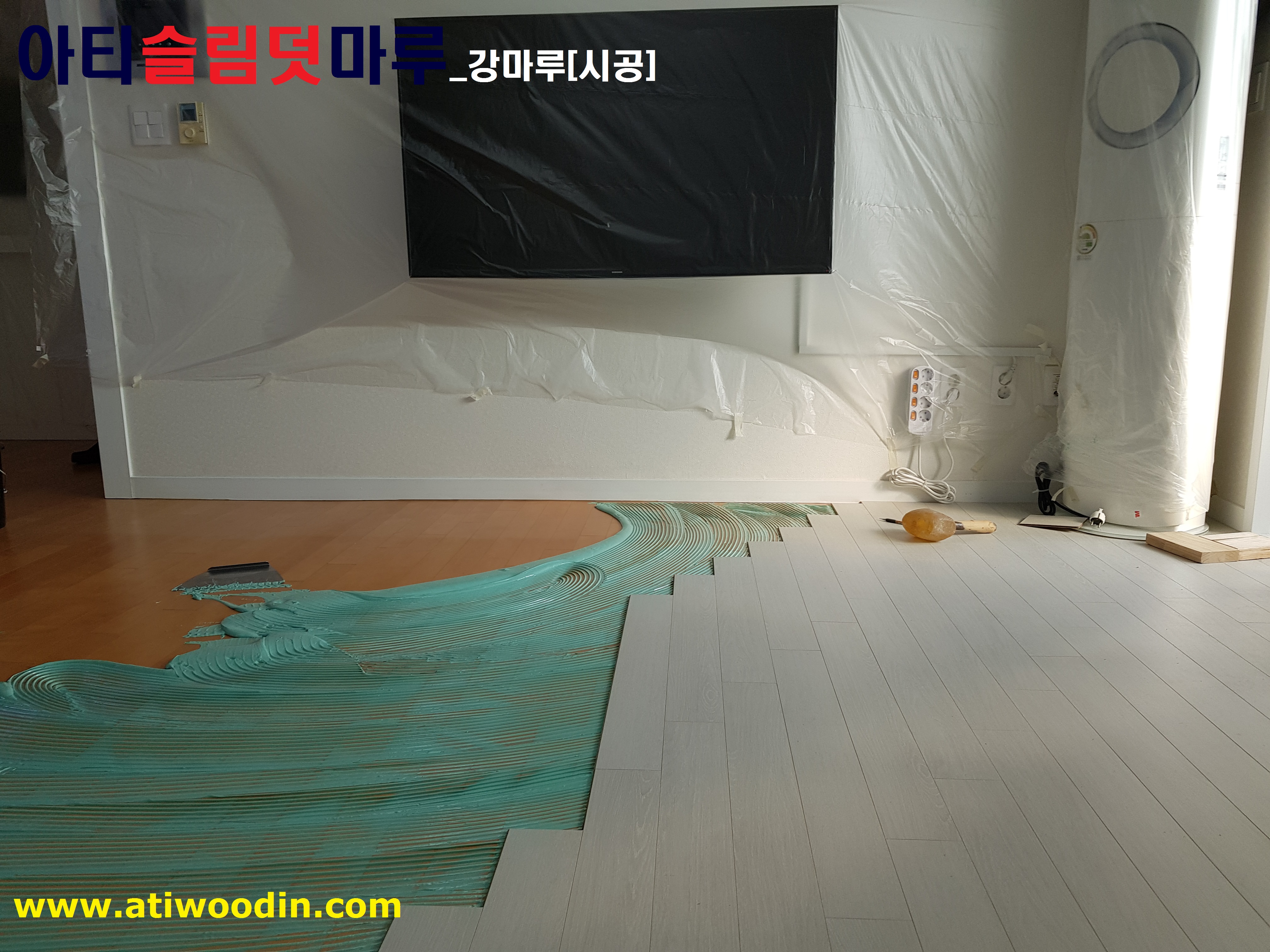 원목마루용 친환경접착제의한 나무재질의 바닥재로 밀착시공하여 기존마루에 영향없이 마루새단장 할 수 있으며 표면은 긁힘이나 스크래치강한 강마루제품으로 사용하며 친환경접착제사용으로 냄새도 없어 당일시공완료후 바로생활 할 수 있는 장점이 있습니다.