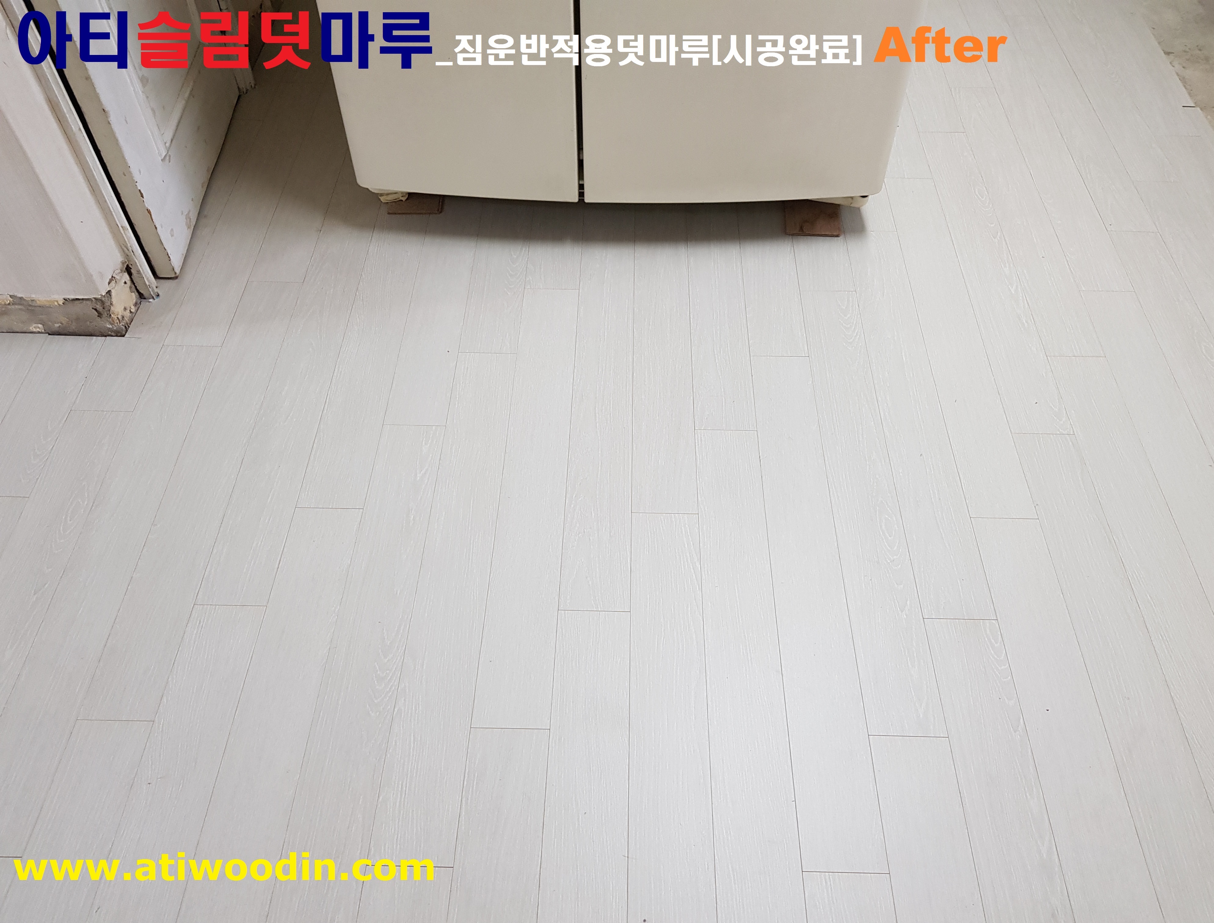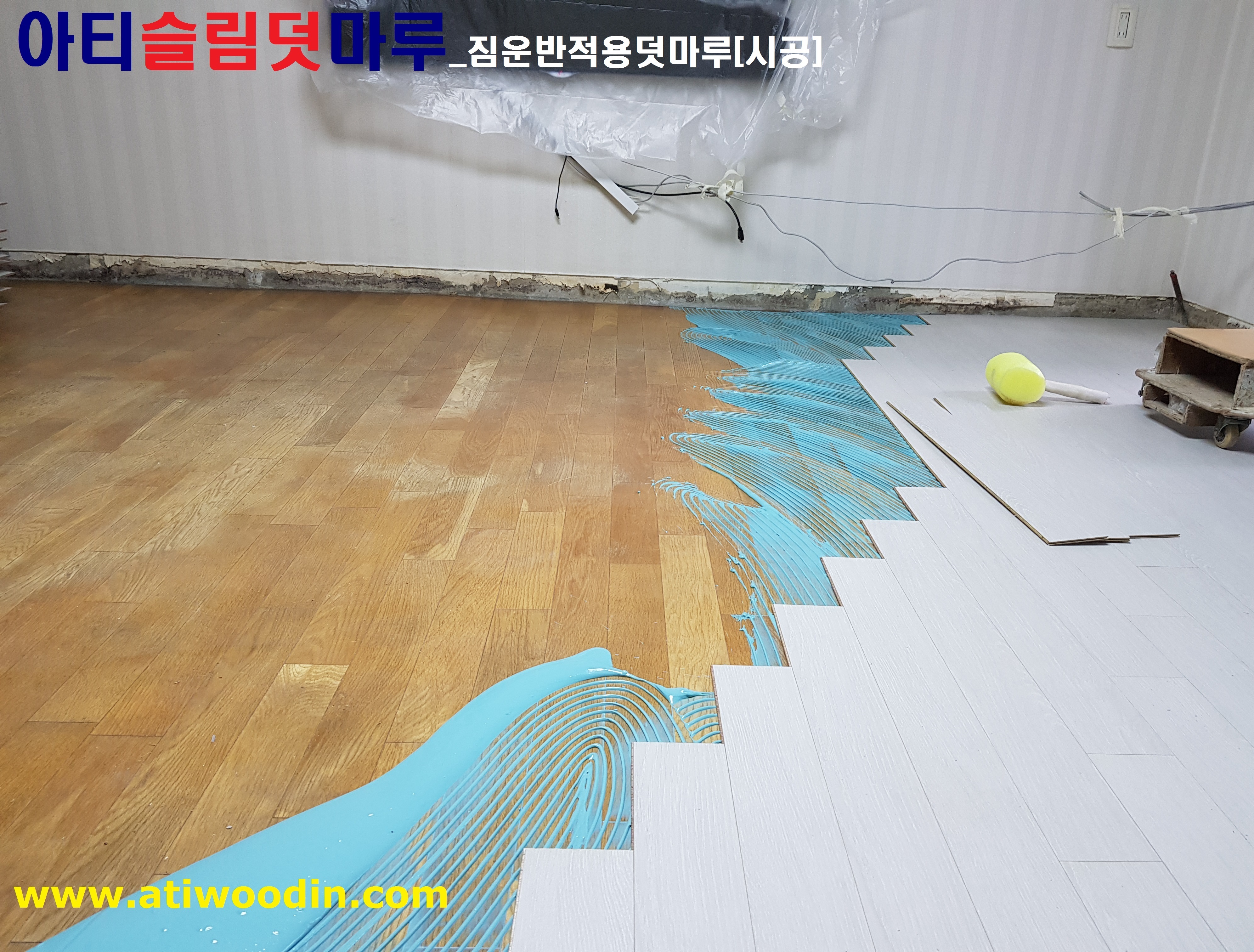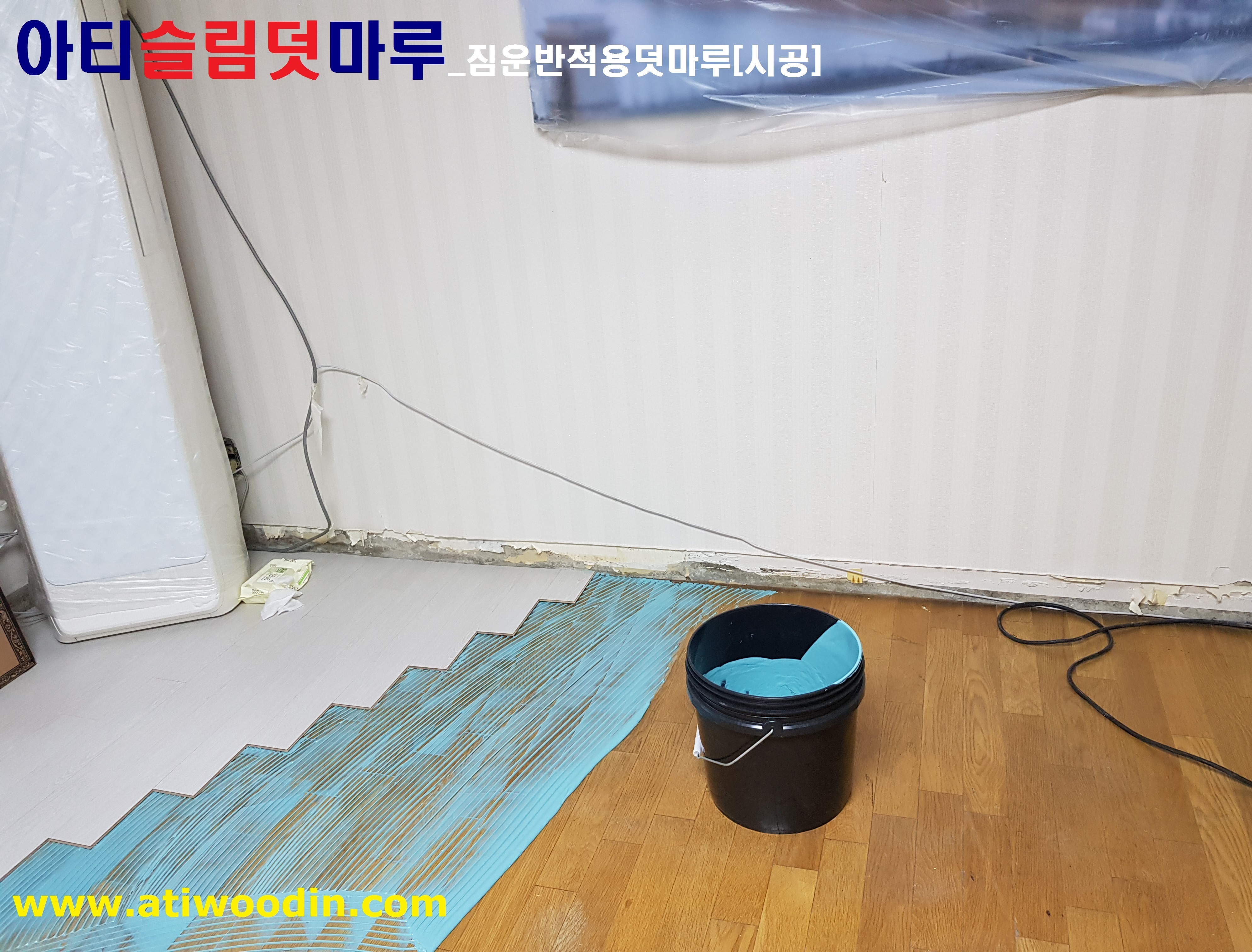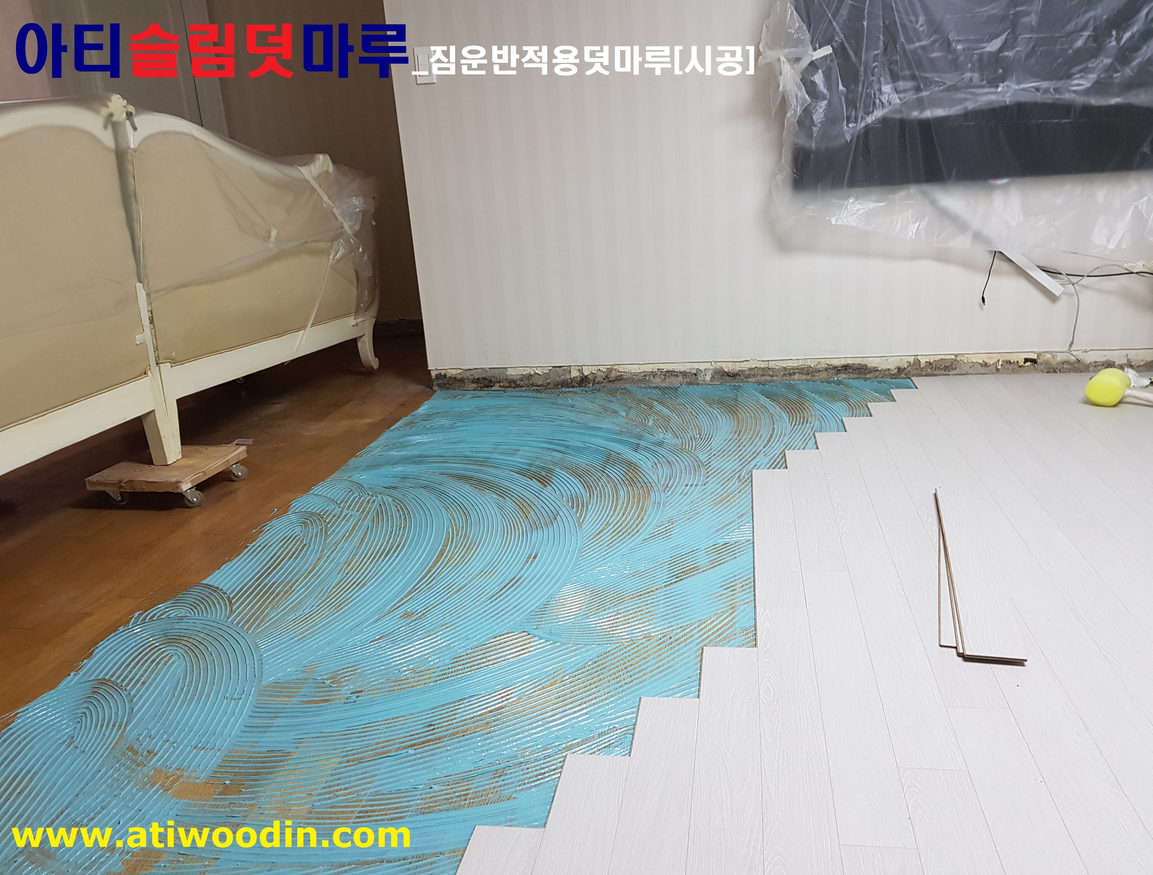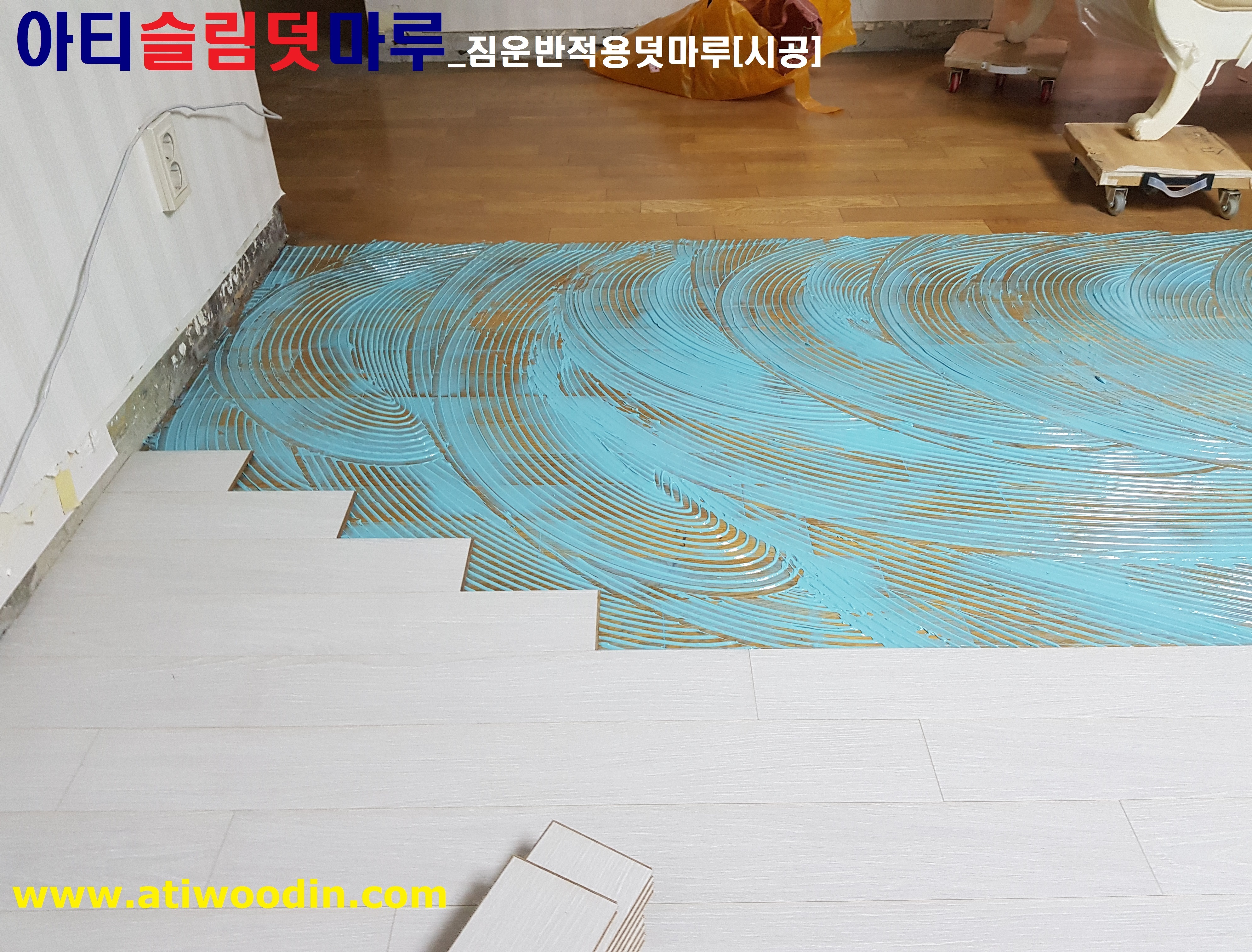 3. 짐운반적용덧마루시공- 냉장고,쇼파등 생활짐을 옮겨가면서 원목마루용 친환경접착제에의한 나무재질의 강마루제품으로 밀착시공