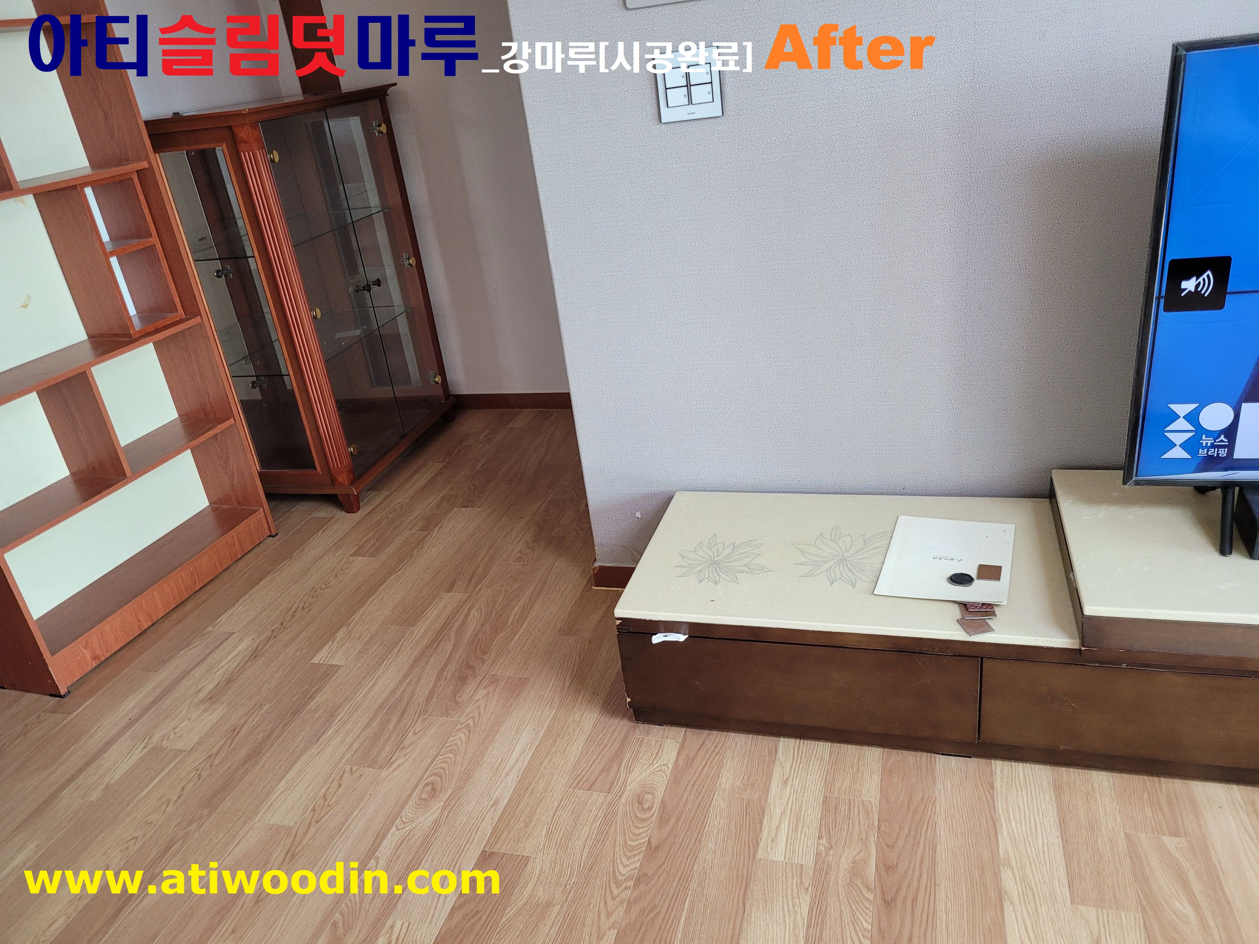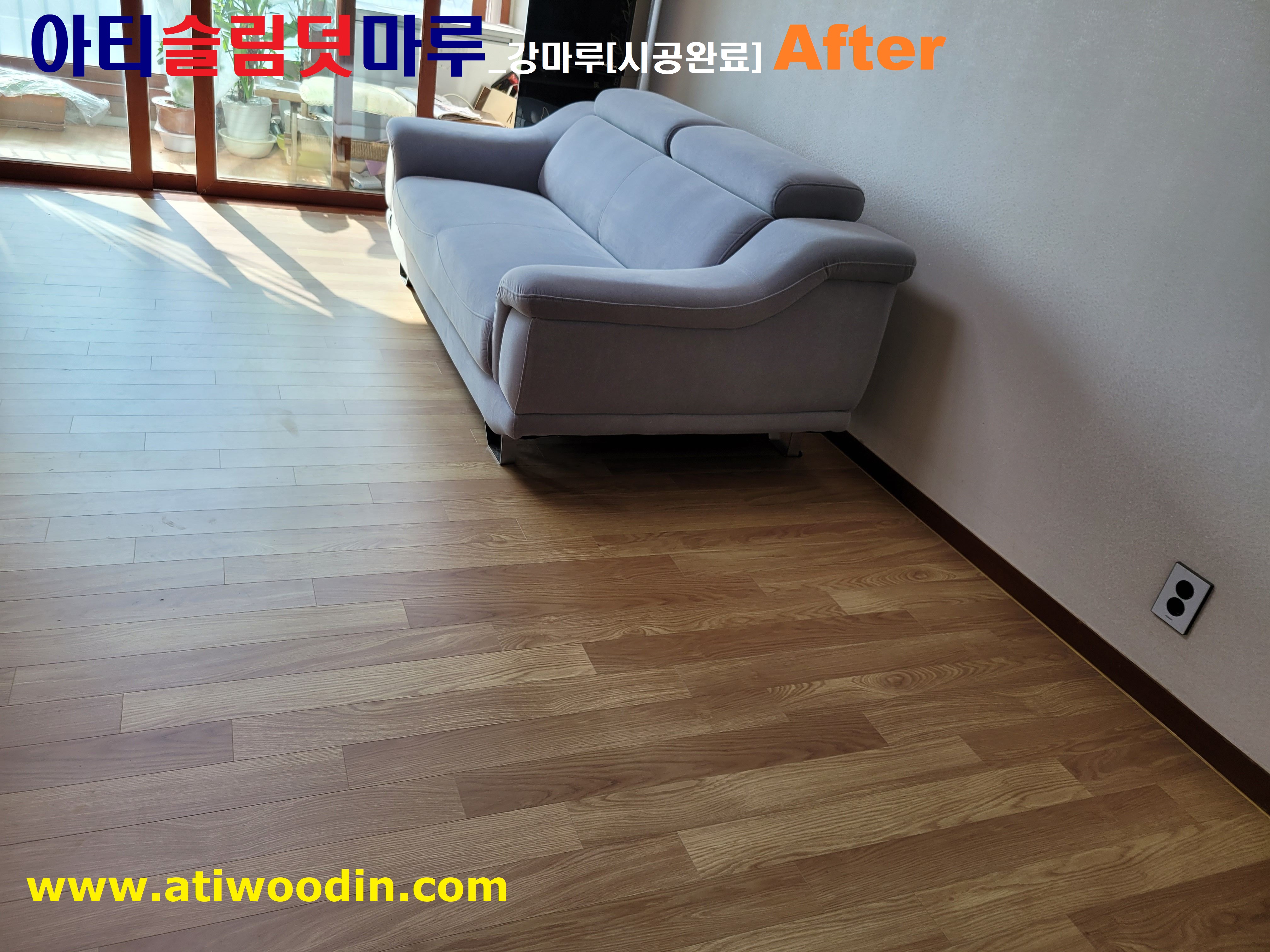 아티슬림덧마루_강마루시공은 기존 노후마루에 대한 NO철거로 철거소음, 철거먼지, 철거비용과 시간등 철거고민없이 원목마루용 친환경접착제에 의한 나무재질의 바닥재로 밀착시공하여 시간이 지나도 들뜸현상이 없어 바닥재에 대한 결로현상보완 기존 마루에 영향없이 마루교체 가능하며 표면을 긁힘이나 스크래치 강한 강마루바닥재를 사용하며 친환경접착제 사용으로 냄새도 없어 당일시공완료후 바로생활 할 수 있는 장점의 마루시공방법으로 살고있는집에 대한 짐운반적용 덧마루시공과 이사전 빈집에 대한 NO철거덧마루시공 2가지 방법으로 구분하여 진행 하고 있습니다.