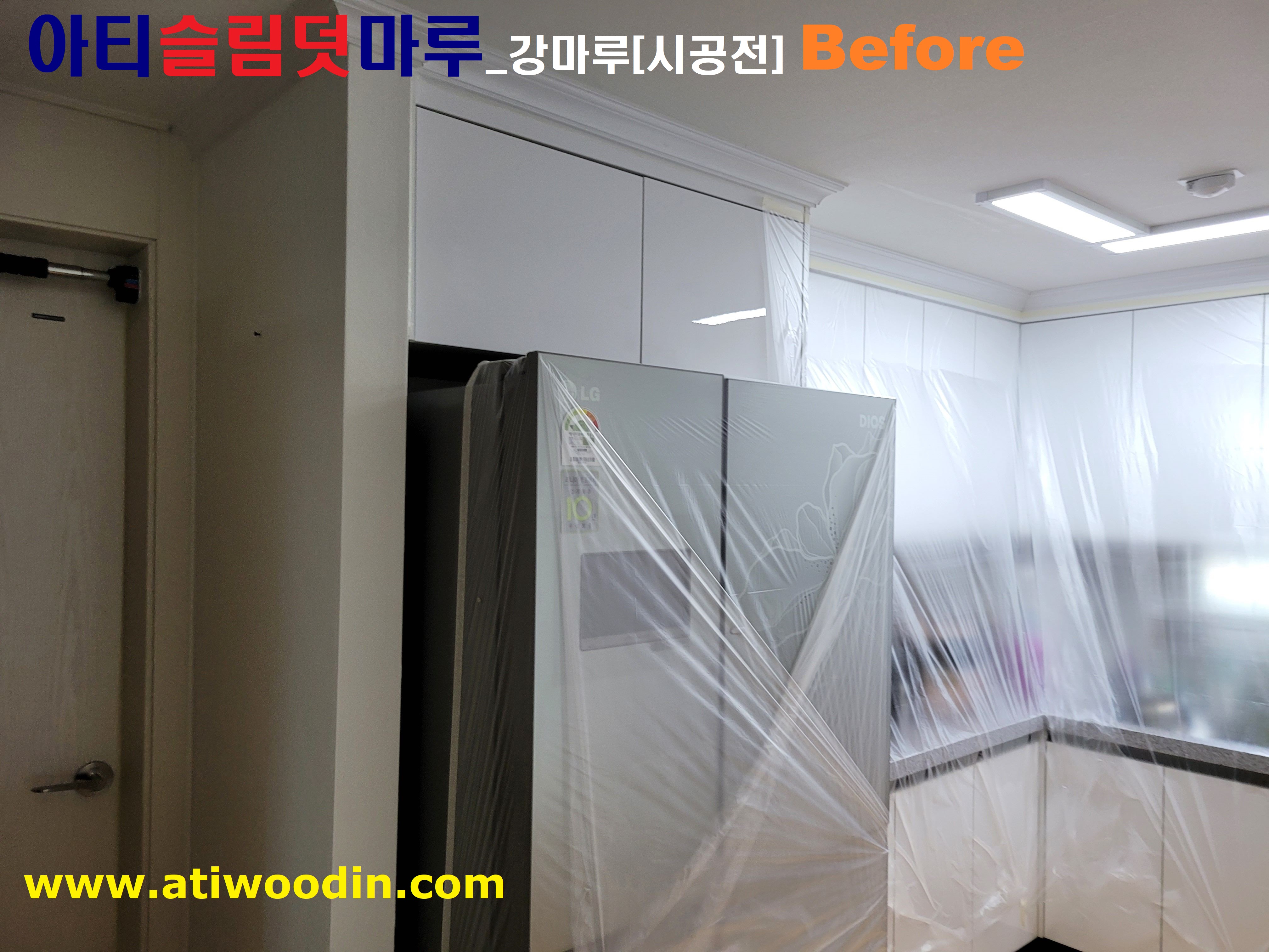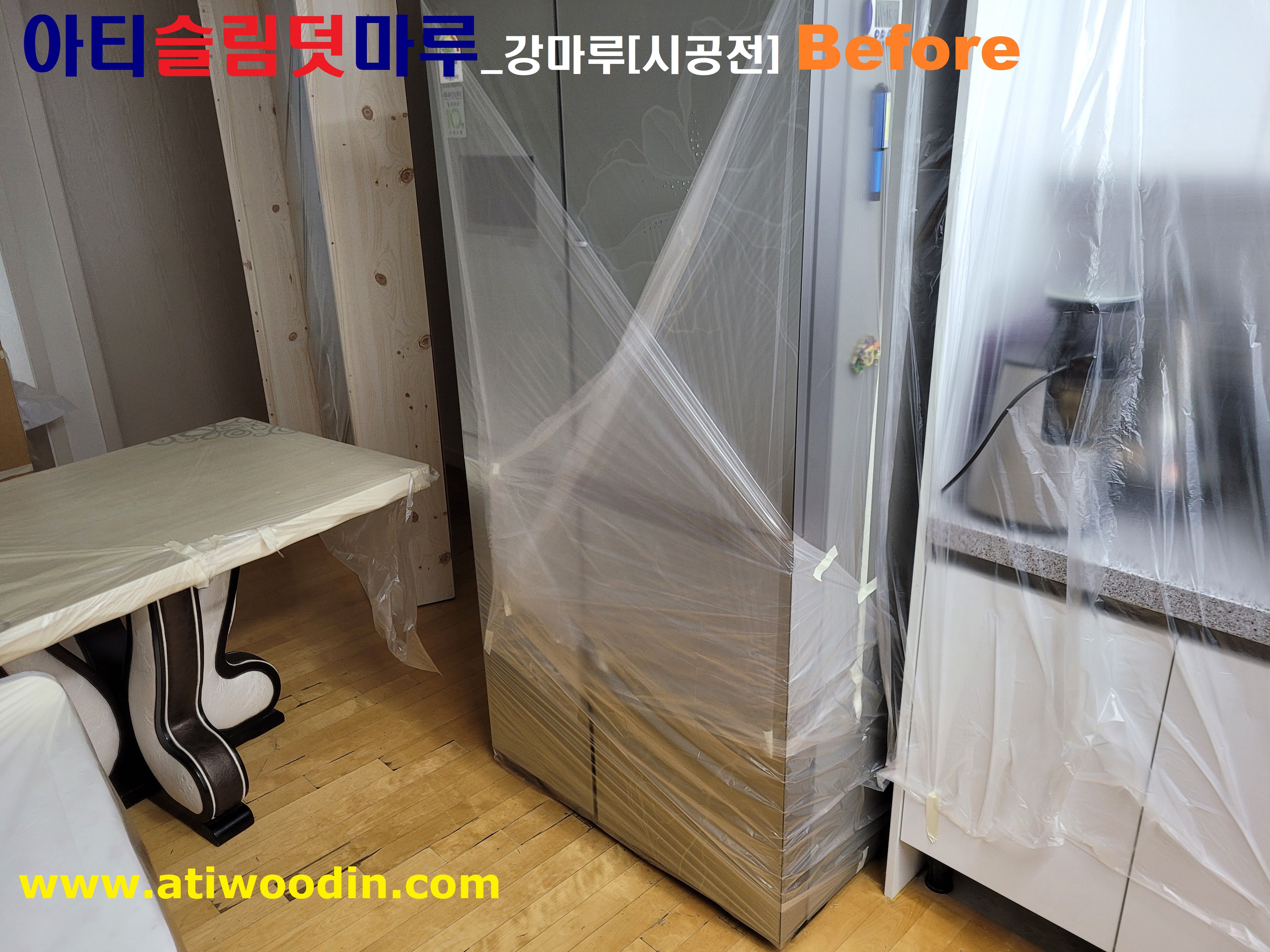 2. 짐운반적용덧마루시공전 준비작업- 거실 및 주방에 대한 냉장고등 큰 짐에 대한 비닐커버링작업