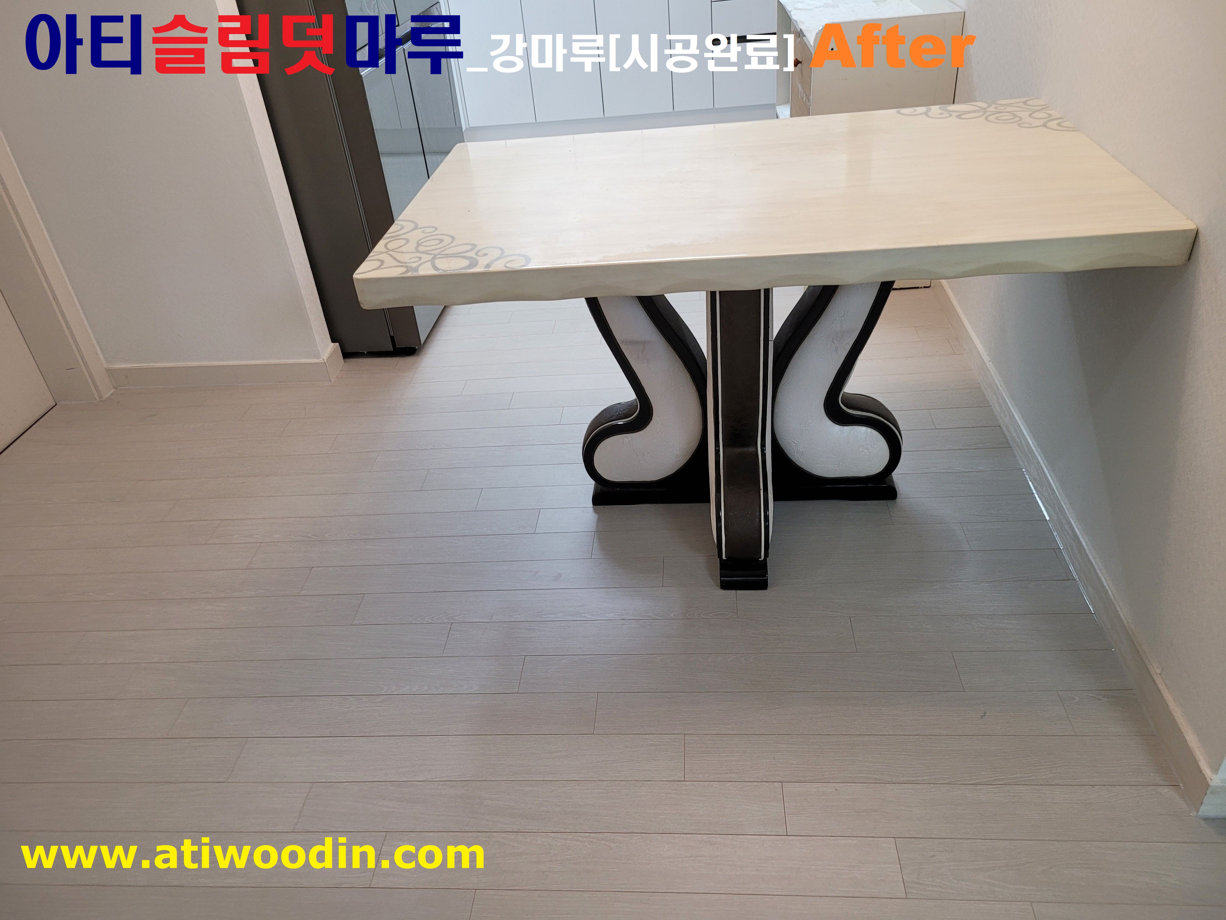 아티슬림덧마루 의 살고있는집에 대한 짐운반적용 덧마루시공 및 이사후 빈집에 대한 NO철거 덧마루시공은 기존 마루 NO철거로 원목마루 용 친환경접착제 에의한 강마루 제품으로 밀착시공하여 기존마루에 영향을 주지 않으며 친환경 접착제 사용으로 당일시공후 바로 생활 할 수 있으며 강마루제품 사용으로 표면긁힘이나 스크래치가 기존 온돌마루보다 강한 강마루시공 입니다.
