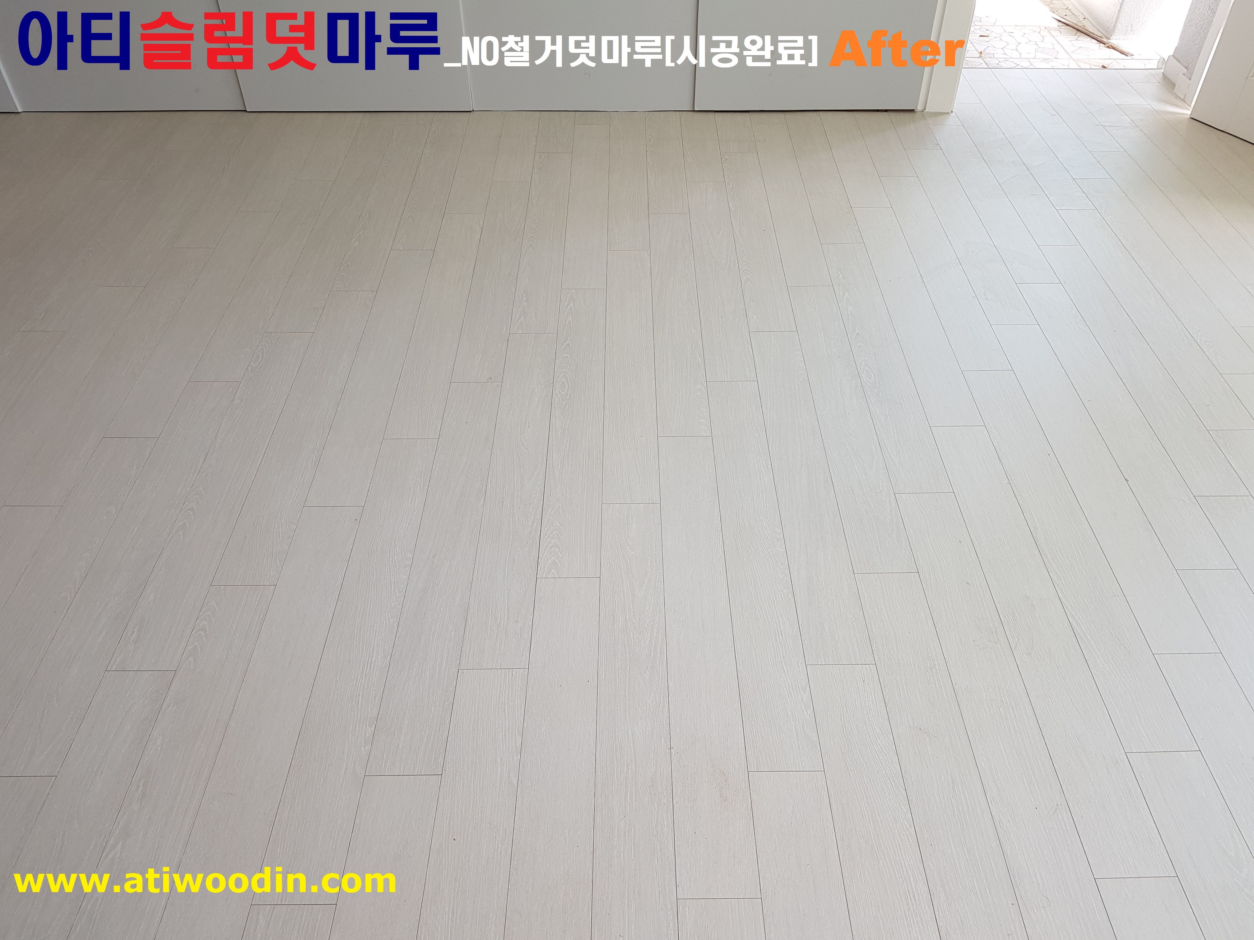 아티슬림덧마루_강마루시공은 기존 노후마루에 대한 NO철거로 철거소음, 철거먼지, 철거비용과 시간등 철거고민없이 원목마루용 친환경접착제에 의한 나무재질의 바닥재로 밀착시공하여 시간이 지나도 들뜸현상이 없어 바닥재에 대한 결로현상보완 기존 마루에 영향없이 마루교체 가능하며 표면을 긁힘이나 스크래치 강한 강마루바닥재를 사용하며 친환경접착제 사용으로 냄새도 없어 당일시공완료후 바로생활 할 수 있는 장점의 마루시공방법으로 살고있는집에 대한 짐운반적용 덧마루시공과 이사전 빈집에 대한 NO철거덧마루시공 2가지 방법으로 구분하여 진행 하고 있습니다.