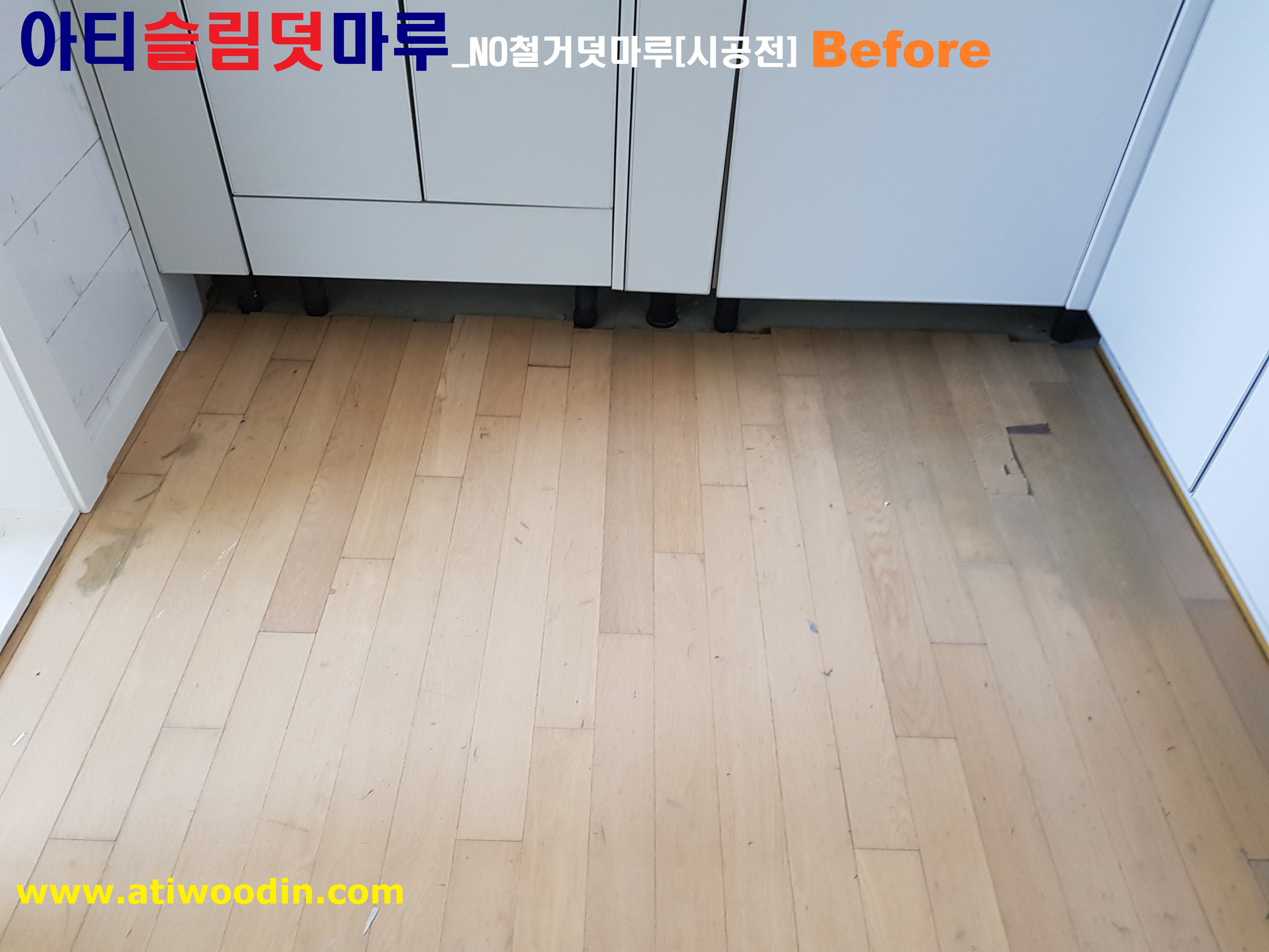 1. 이사전 빈집 NO철거덧마루시공전 노후바닥 - 표면변색 및 벚겨짐,긁힘등 노후바닥