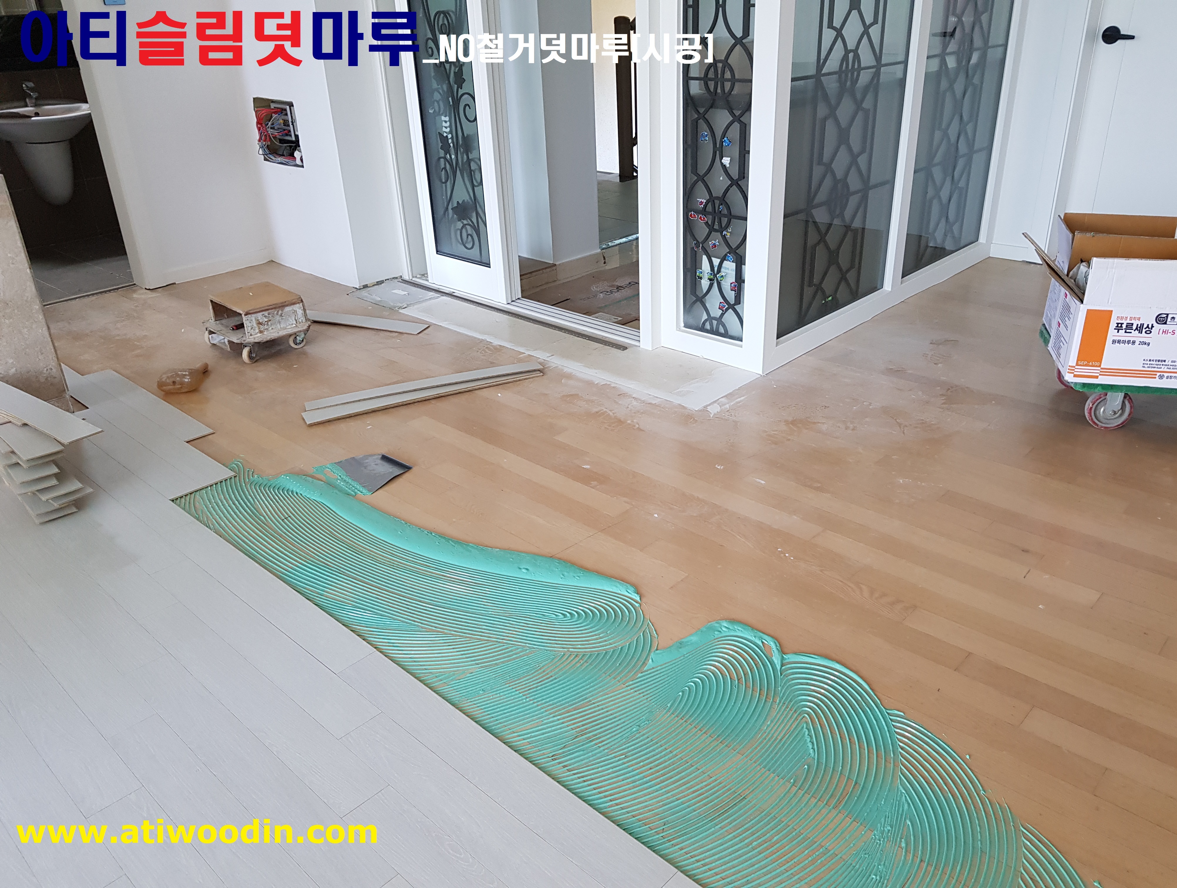 2. 이사전 빈집 NO철거덧마루시공-원목마루용 친환경접착제에의한 나무재질의 바닥재로 밀착시공