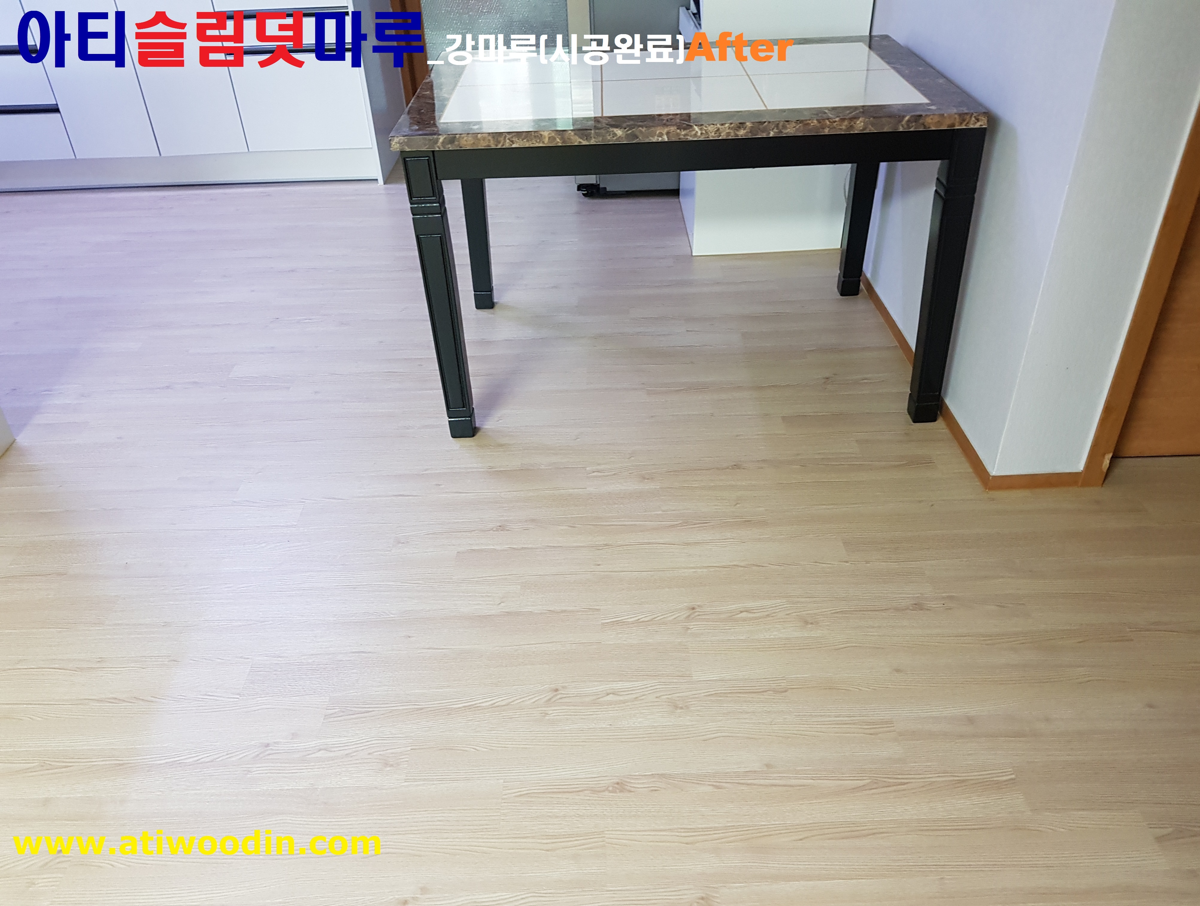 아티슬림덧마루_강마루시공은 기존 노후마루에 대한 NO철거로 철거소음, 철거먼지, 철거비용과 시간등 철거고민없이 마루교체 가능하며 원목마루용 친환경접착제에의한 강마루 바닥재를 사용하여 밀착시공으로 시간이 지나도 들뜸현상이 없어 바닥재에 대한 결로현상보완으로 기존 마루에 영향없이 마루새단장 할 수 있으며 난방에 대해서도 기존 생활하는거와 차이없이 생활 가능하며 표면을 긁힘이나 스크래치 강한 강마루바닥재를 사용하며 친환경접착제 사용으로 당일시공완료후 바로생활 할 수 있는 장점의 시공방법으로 살고있는집에 대한 짐운반적용덧마루시공과 이사전 빈집에 대한 NO철거덧마루시공 2가지 시공방법으로 구분하여 진행하고 있습니다.