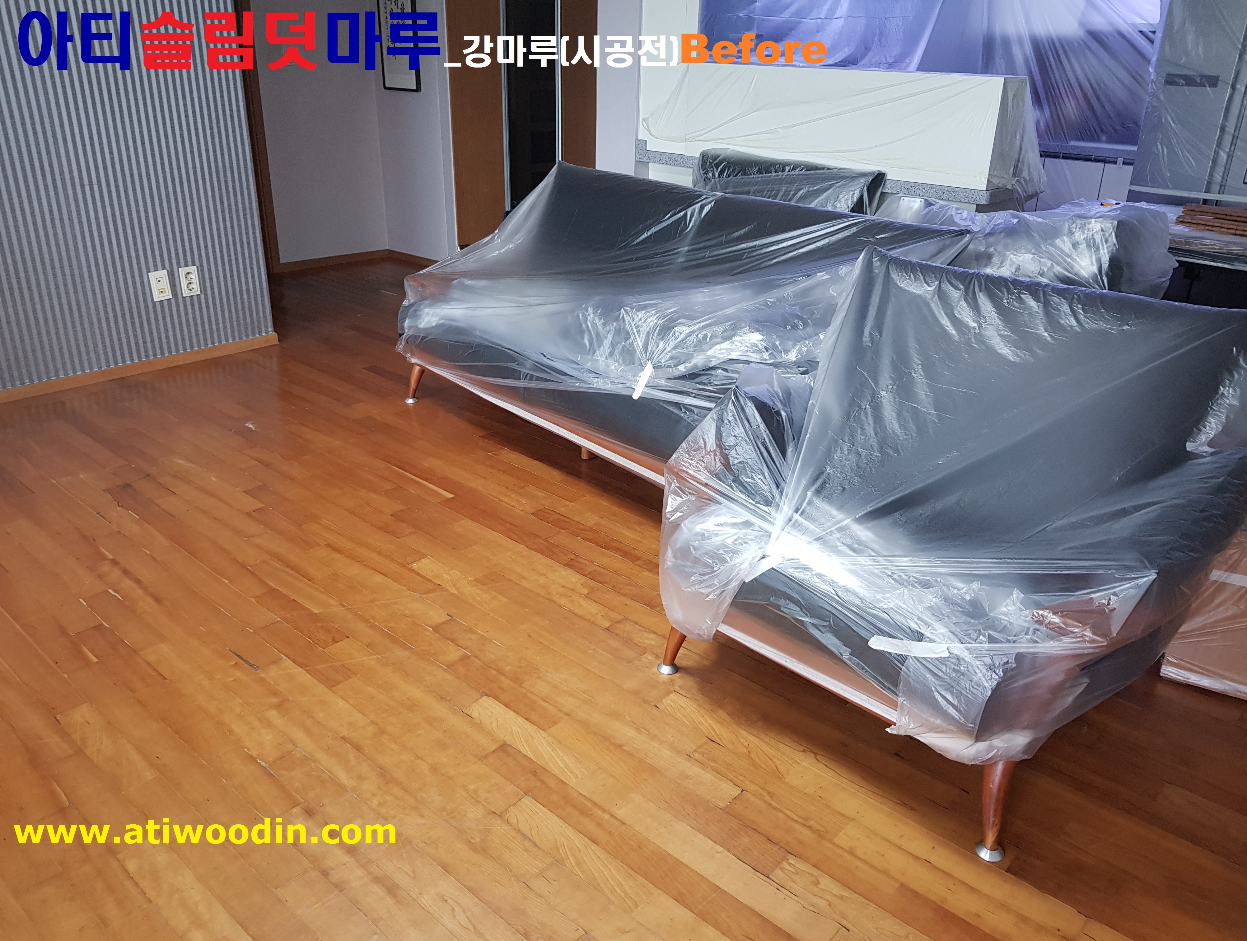 2. 짐운반적용덧마루시공전 사전준비작업- 살고있는집 거실 및 주방 쇼파등 큰 짐에 한하여 비닐커버링작업