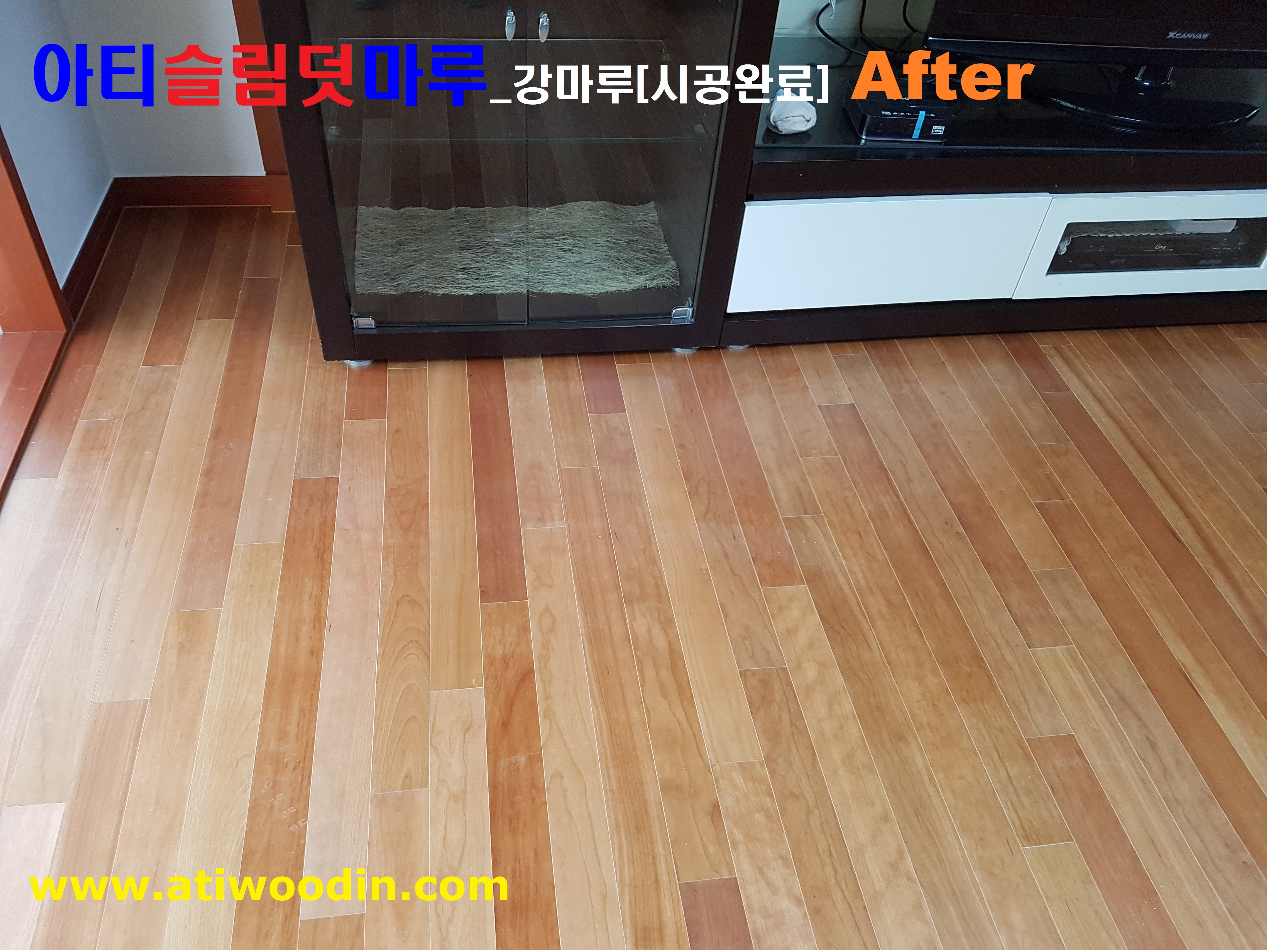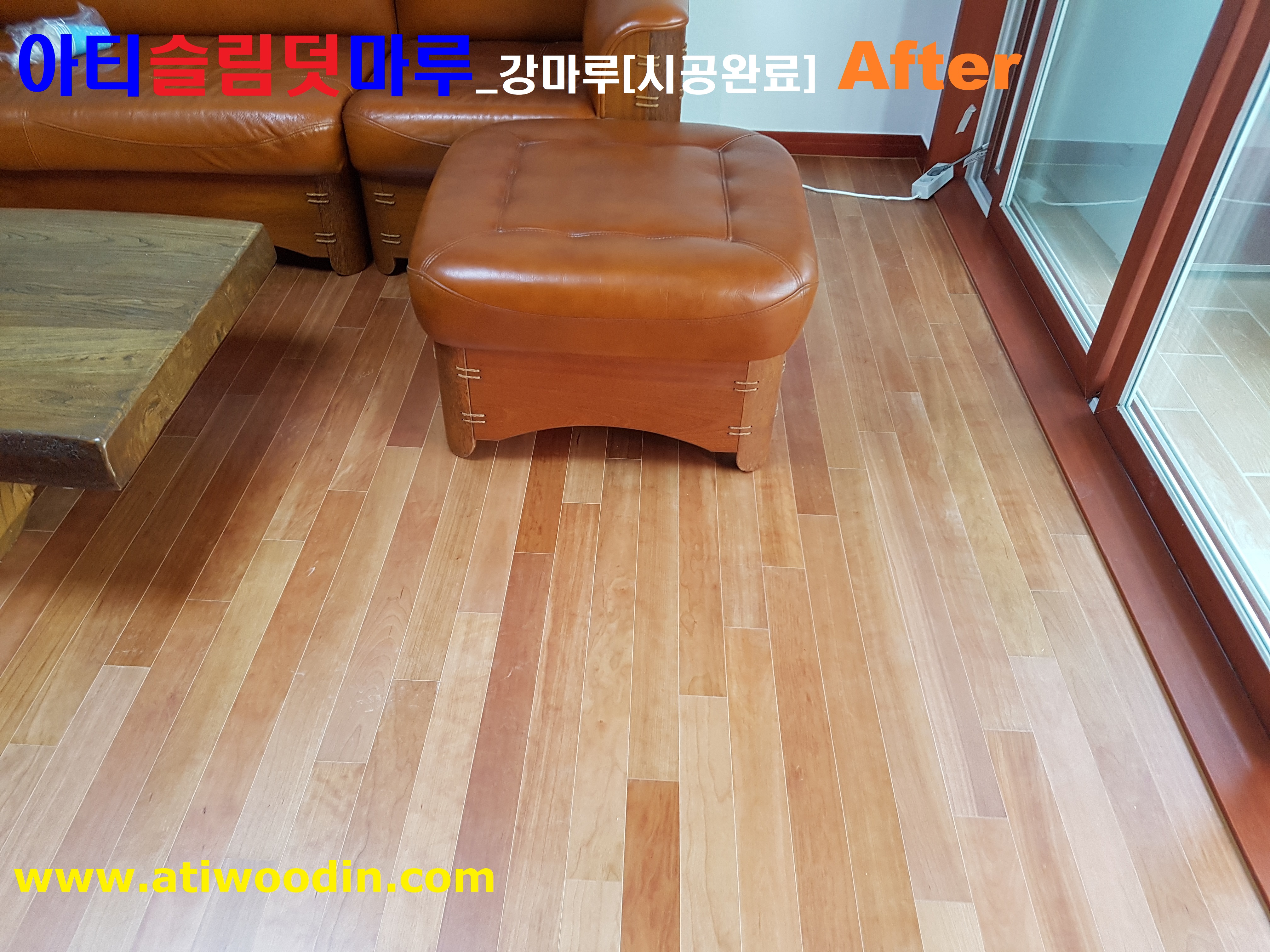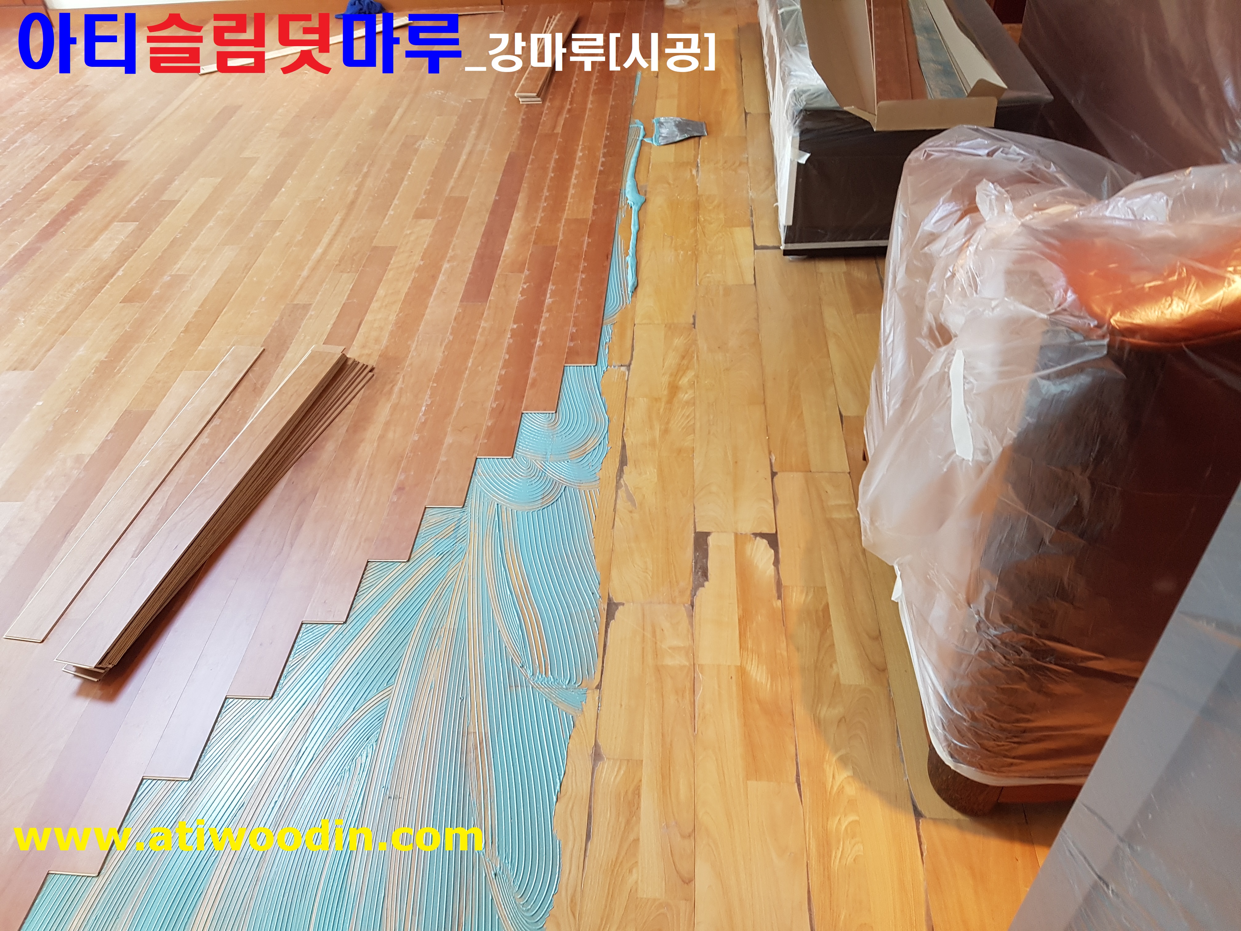 아티슬림덧마루강마루시공은 기존 노후마루에 대한 NO철거로 철거소음, 철거먼지, 철거비용과 시간등 철거고민없이 마루교체 가능하며 원목마루용 친환경접착제에의한 강마루바닥재를 사용하여 밀착시공으로 시간이 지나도 들뜸현상이 없어 바닥재에 대한 결로현상보완으로 기존 마루에 영향없이 마루새단장 할 수 있으며 난방에 대해서도 기존 생활하는거와 차이없이 생활 가능하며 표면을 긁힘이나 스크래치 강한 강마루바닥재를 사용하며 친환경접착제 사용으로 당일시공완료후 바로생활 할 수 있는 장점의 시공방법으로 살고있는집에 대한 짐운반적용덧마루시공과 이사전 빈집에 대한 NO철거덧마루시공 2가지 시공방법으로 구분하여 진행하고 있습니다.