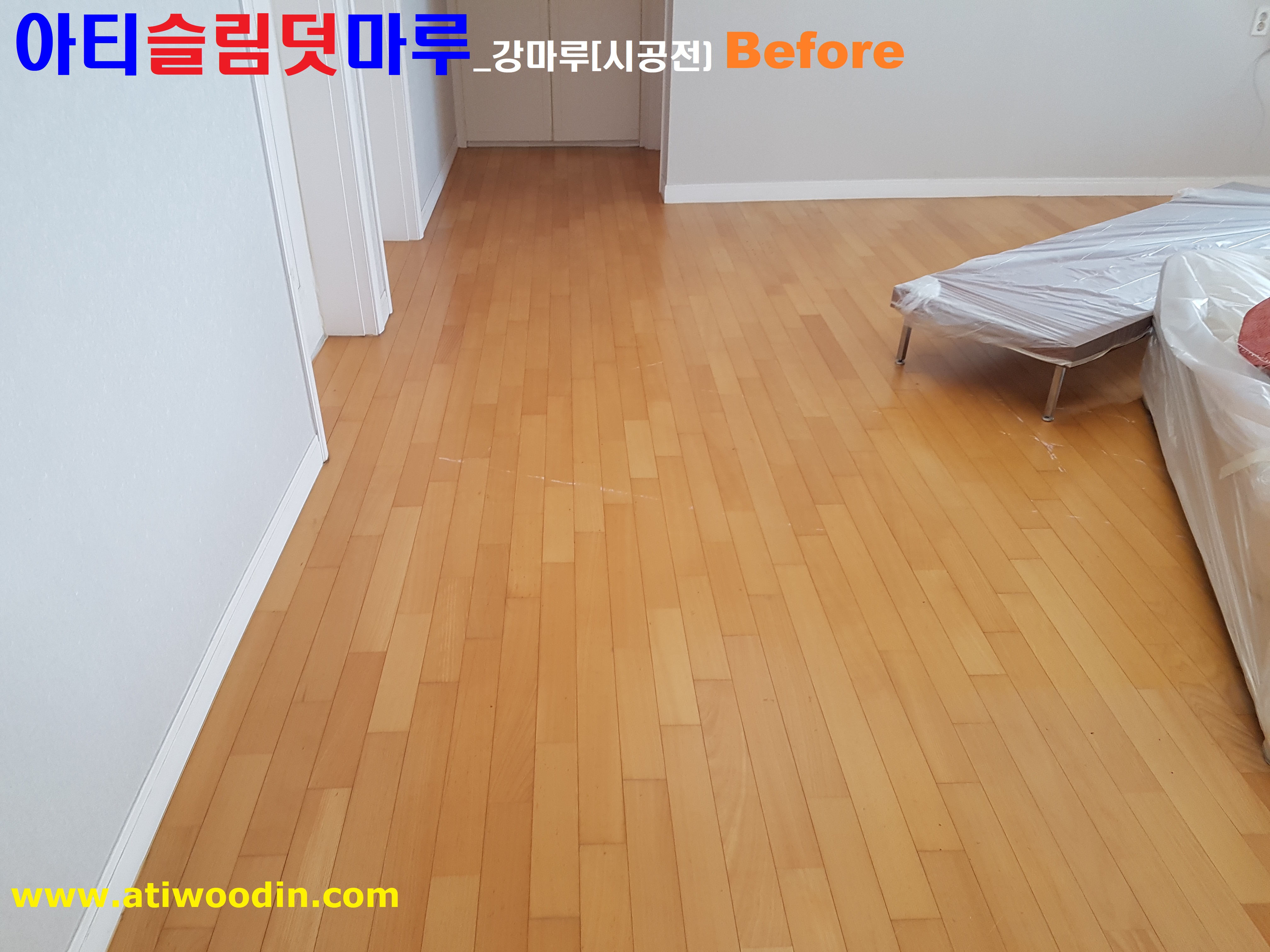 1. 짐운반적용덧마루시공전 - 색상변색 ,벚겨짐 및 긁힘등 노후바닥으로 덧마루시공전 Before