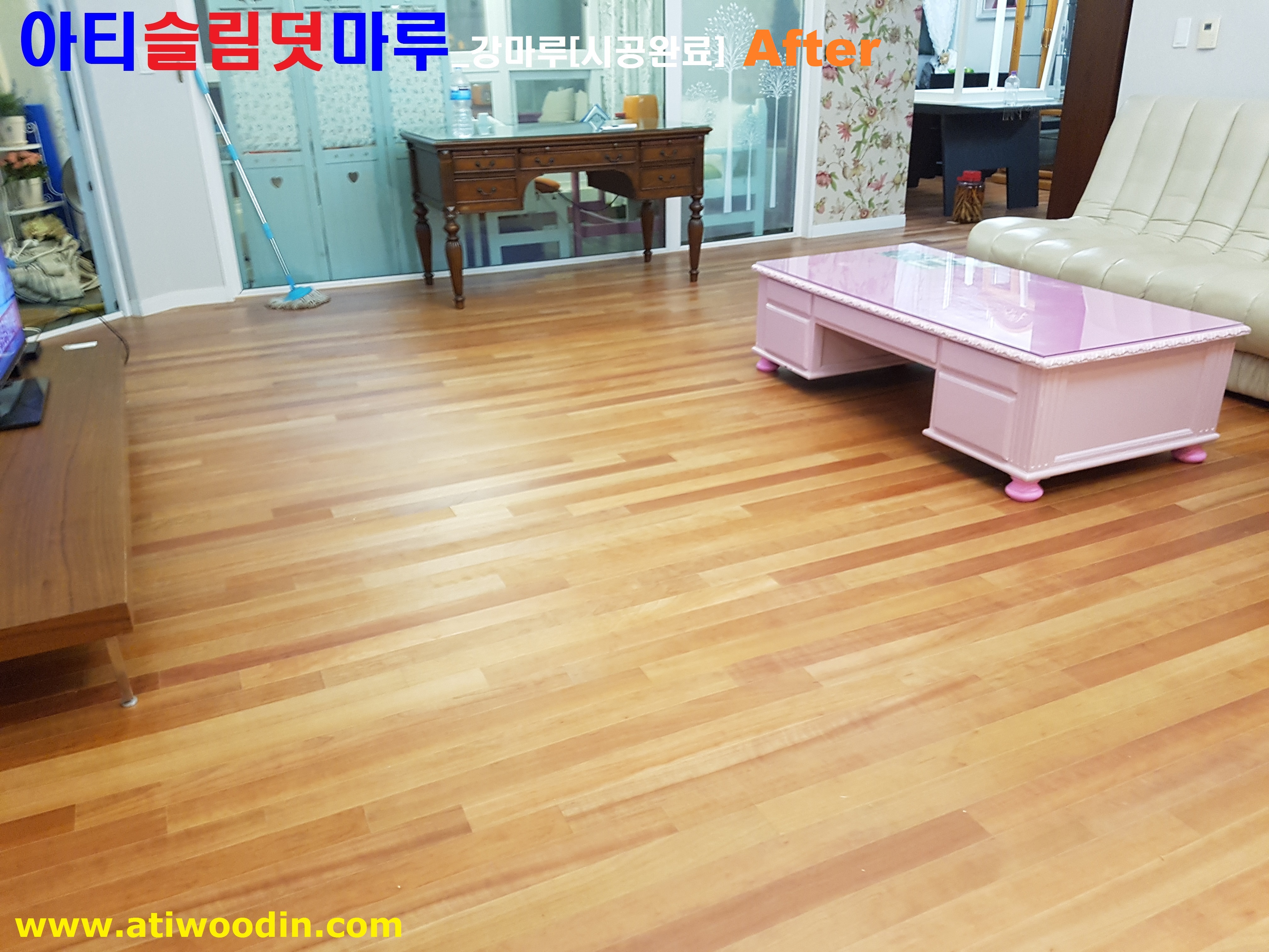 4. 짐운반적용덧마루시공완료 - 거실 및 주방에 대한 덧마루시공후 짐정리까지 당일시공완료 마루새단장 끝