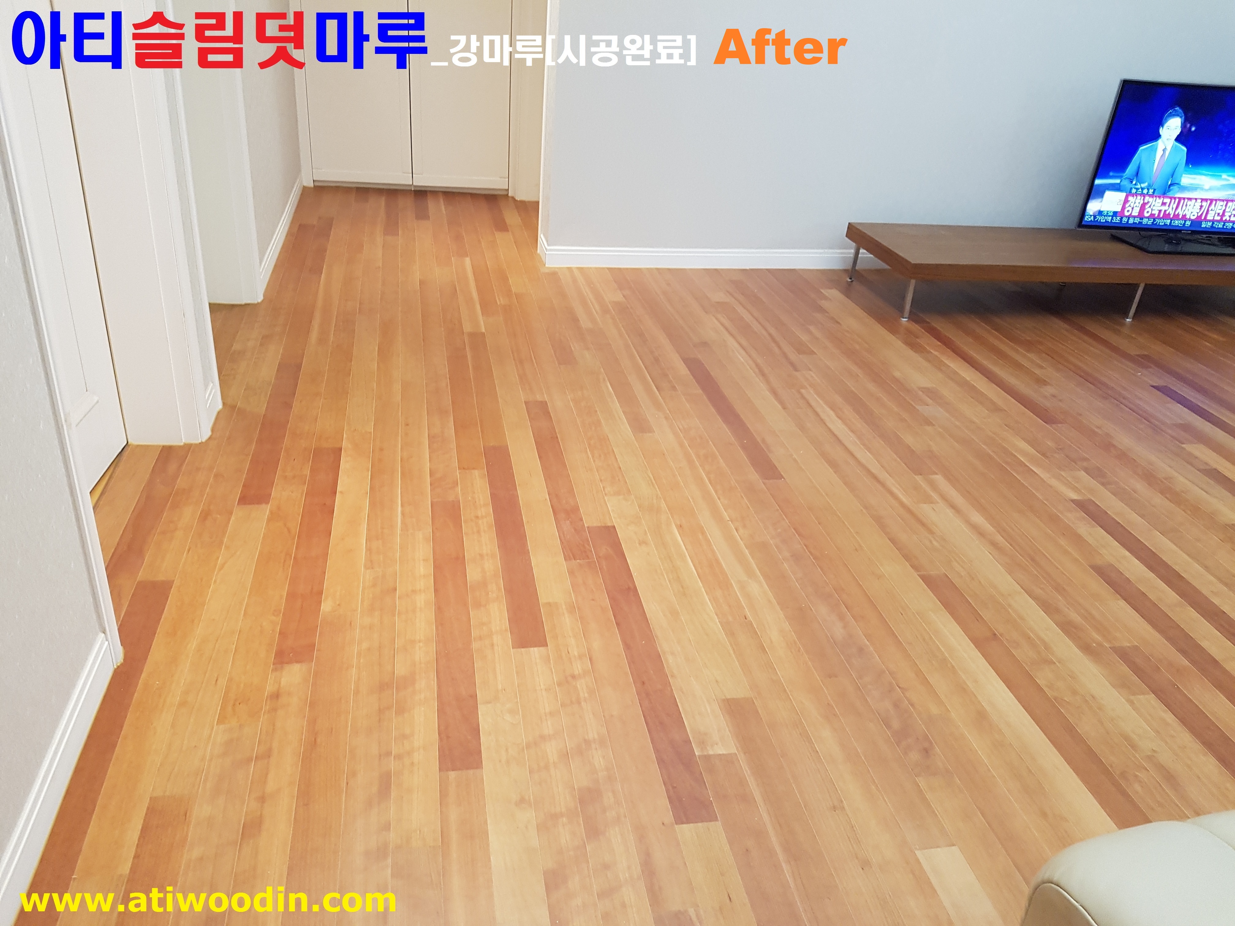 아티슬림덧마루_강마루시공은 기존 노후마루에 대한 NO철거로 철거소음, 철거먼지, 철거비용과 시간등 철거고민없이 마루교체 가능하며 원목마루용 친환경접착제에의한 나무재질의 바닥재를 사용하여 밀착시공으로 시간이 지나도 들뜸현상이 없어 바닥재에 대한 결로현상보완으로 기존 마루에 영향없이 마루새단장 할 수 있으며 난방에 대해서도 기존 생활하는거와 차이없이 생활 가능하며 표면을 긁힘이나 스크래치 강한 나무재질의 강마루바닥재를 사용하며 친환경접착제 사용으로 당일시공완료후 바로생활 할 수 있는 장점의 시공방법으로 살고있는집에 대한 짐운반적용덧마루시공과 이사전 빈집에 대한 NO철거덧마루시공 2가지 시공방법으로 구분하여 진행하고 있습니다.