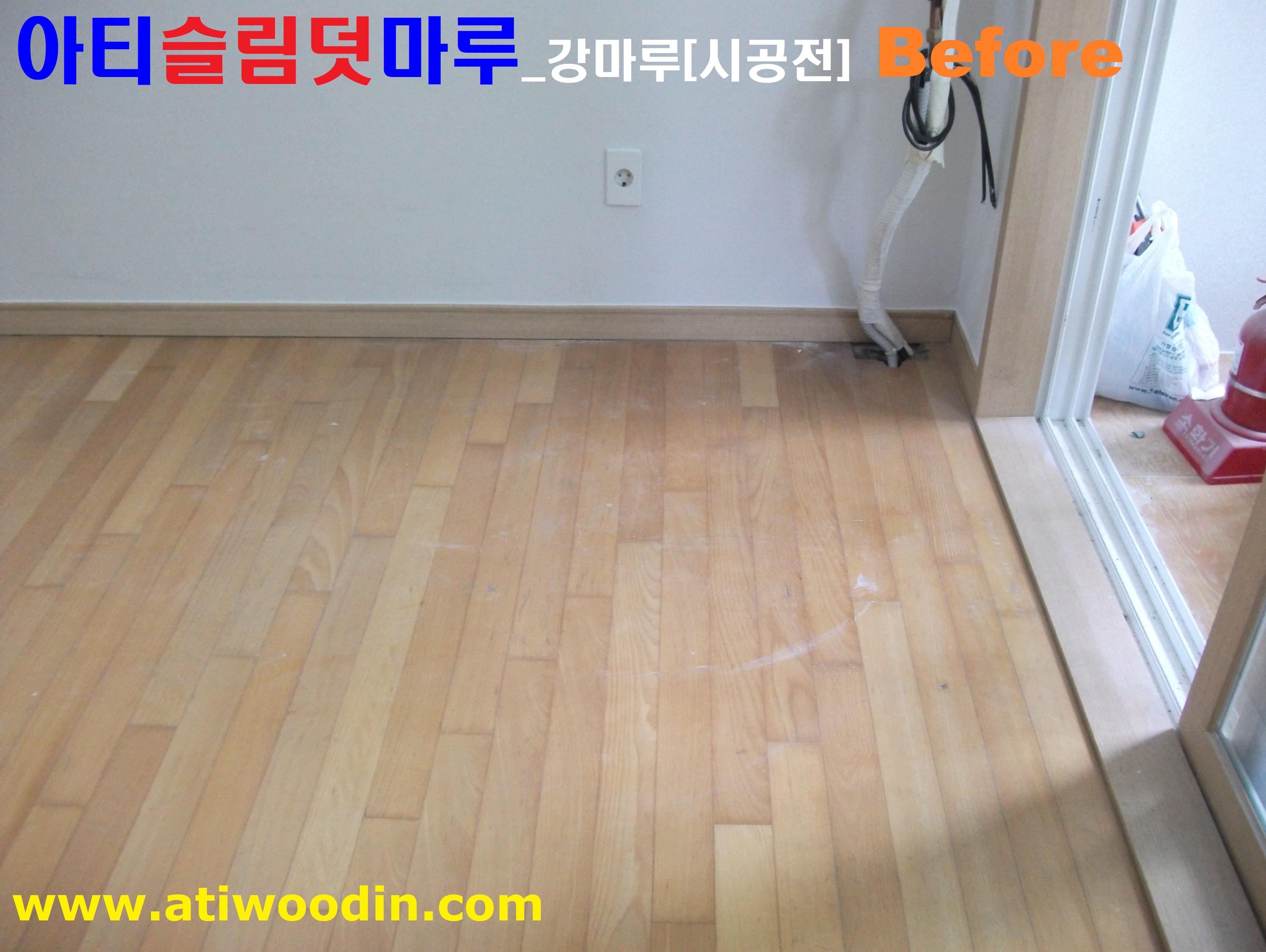 경기 용인 롯데케슬아파트 이사전 빈집에 대한 노후온돌마루 시공을 아티슬림덧마루_강마루시공으로 마루보수 고민해결 당일시공완료로 기존마루 NO 철거덧마루시공 마루새단장 사례입니다.