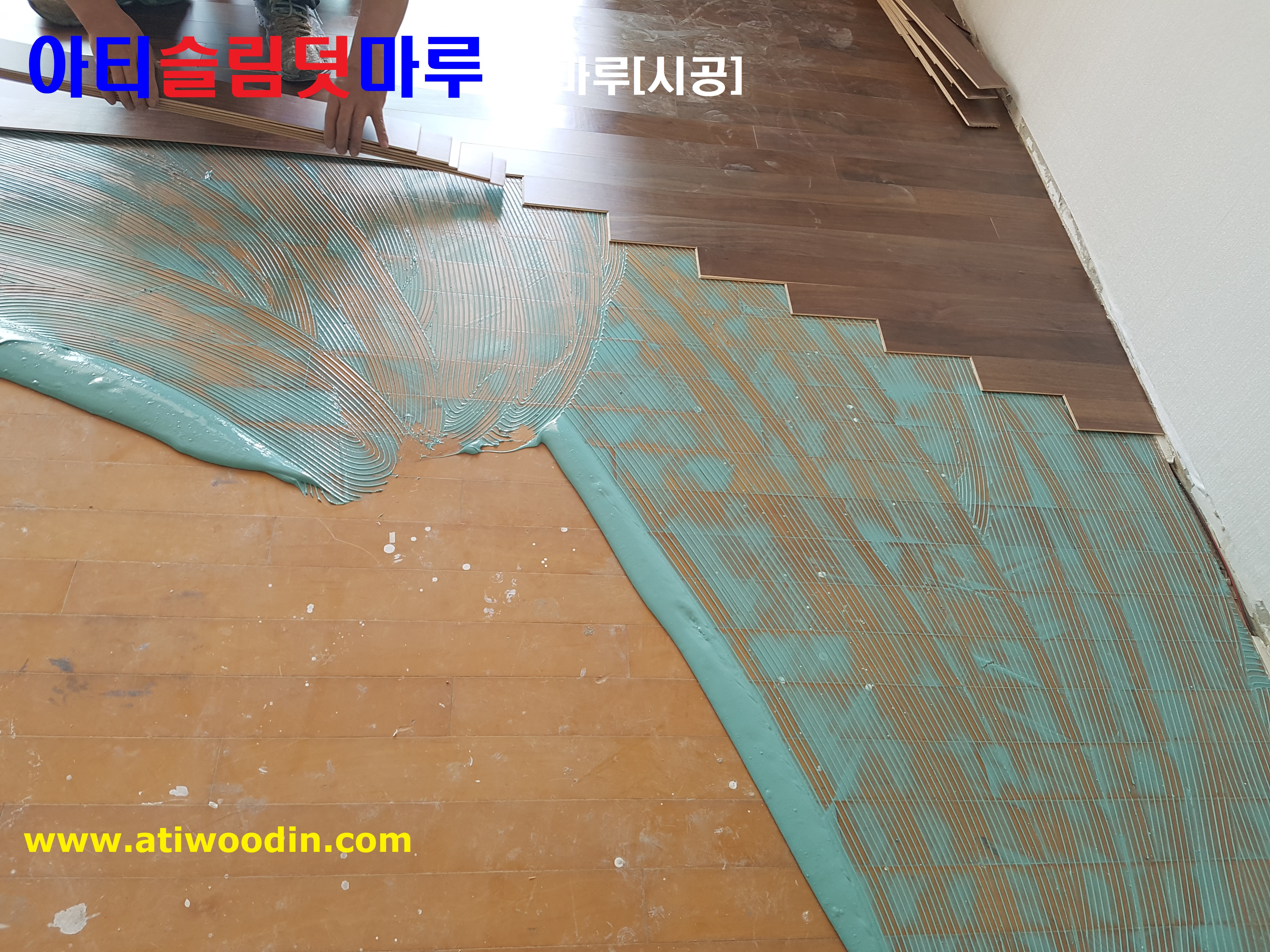 2. 이사전 빈집 NO철거덧마루시공-원목마루용 친환경접착제에의한 나무재질의 바닥재로 밀착시공