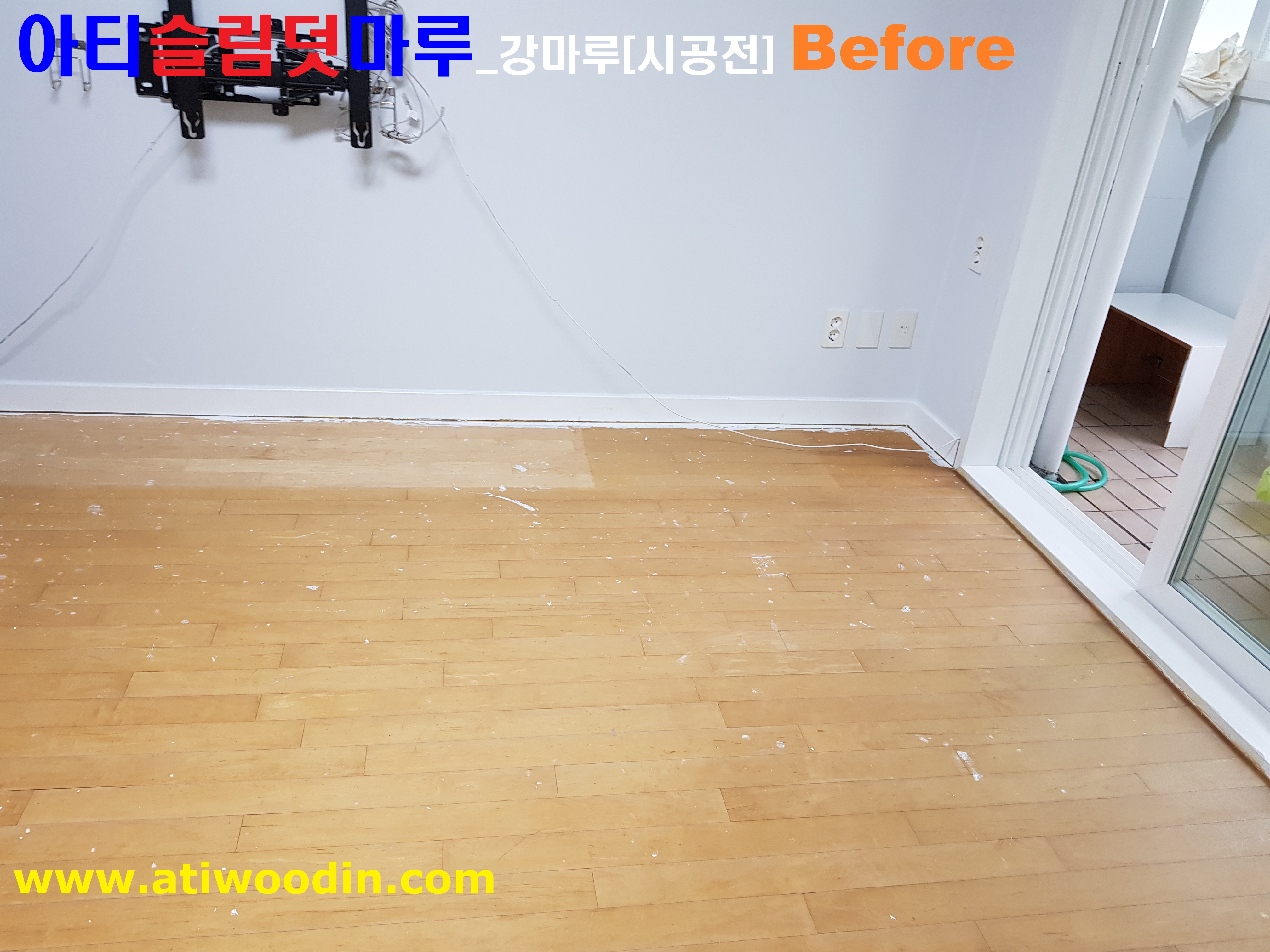 아티슬림덧마루_강마루시공은 기존 노후마루에 대한 NO철거로 철거소음, 철거먼지, 철거비용과 시간등 철거고민없이 마루교체 가능하며 원목마루용 친환경접착제에의한 나무재질의 바닥재를 사용하여 밀착시공으로 시간이 지나도 들뜸현상이 없어 바닥재에 대한 결로현상보완으로 기존 마루에 영향없이 마루새단장 할 수 있으며 난방에 대해서도 기존 생활하는거와 차이없이 생활 가능하며 표면을 긁힘이나 스크래치 강한 나무재질의 강마루바닥재를 사용하며 친환경접착제 사용으로 당일시공완료후 바로생활 할 수 있는 장점의 시공방법으로 살고있는집에 대한 짐운반적용덧마루시공과 이사전 빈집에 대한 NO철거덧마루시공 2가지 시공방법으로 구분하여 진행하고 있습니다.