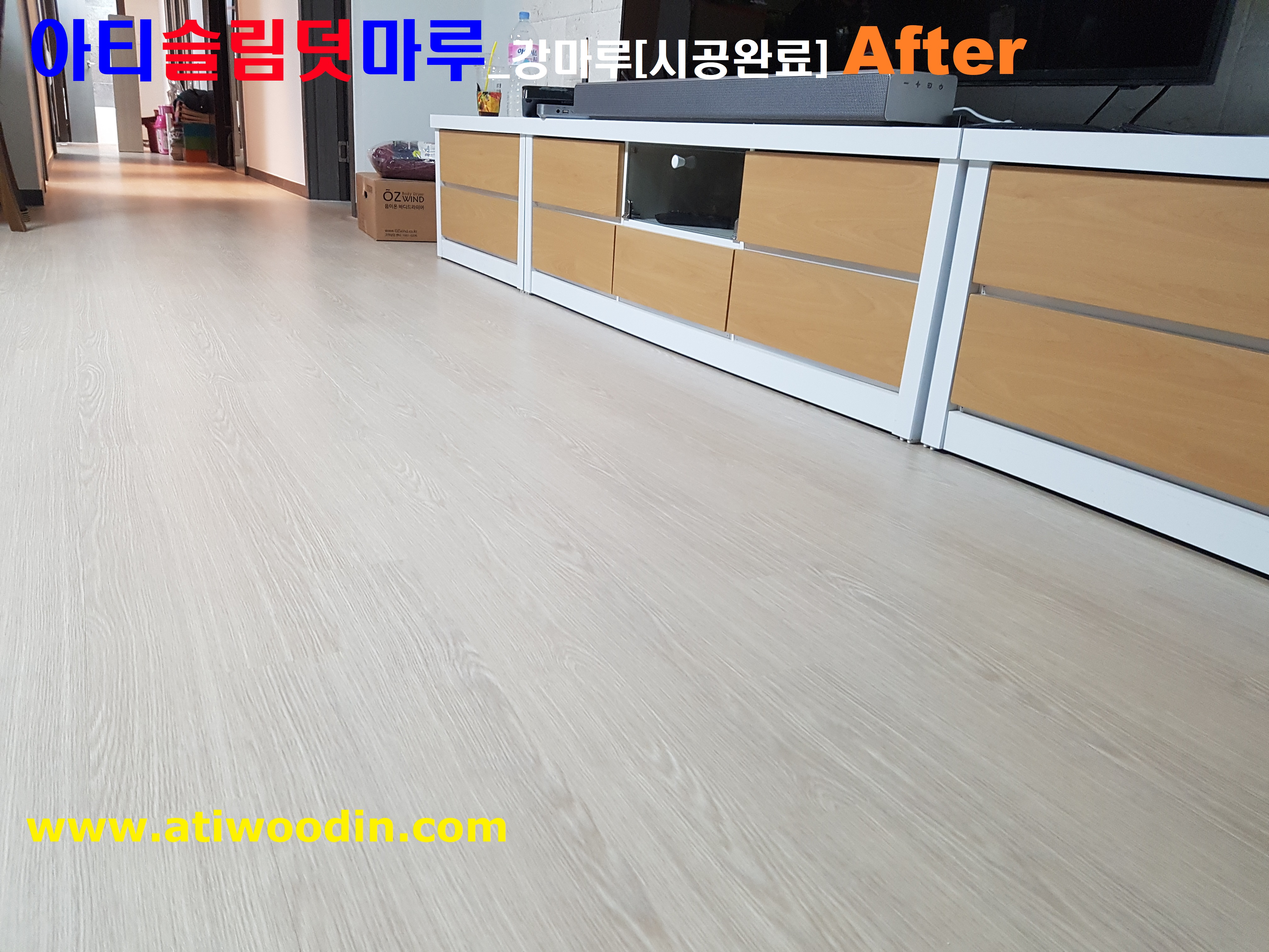 4. 짐운반적용덧마루시공완료 - 거실 및 주방에 대한 덧마루시공후 짐정리까지 당일시공완료 마루새단장 끝