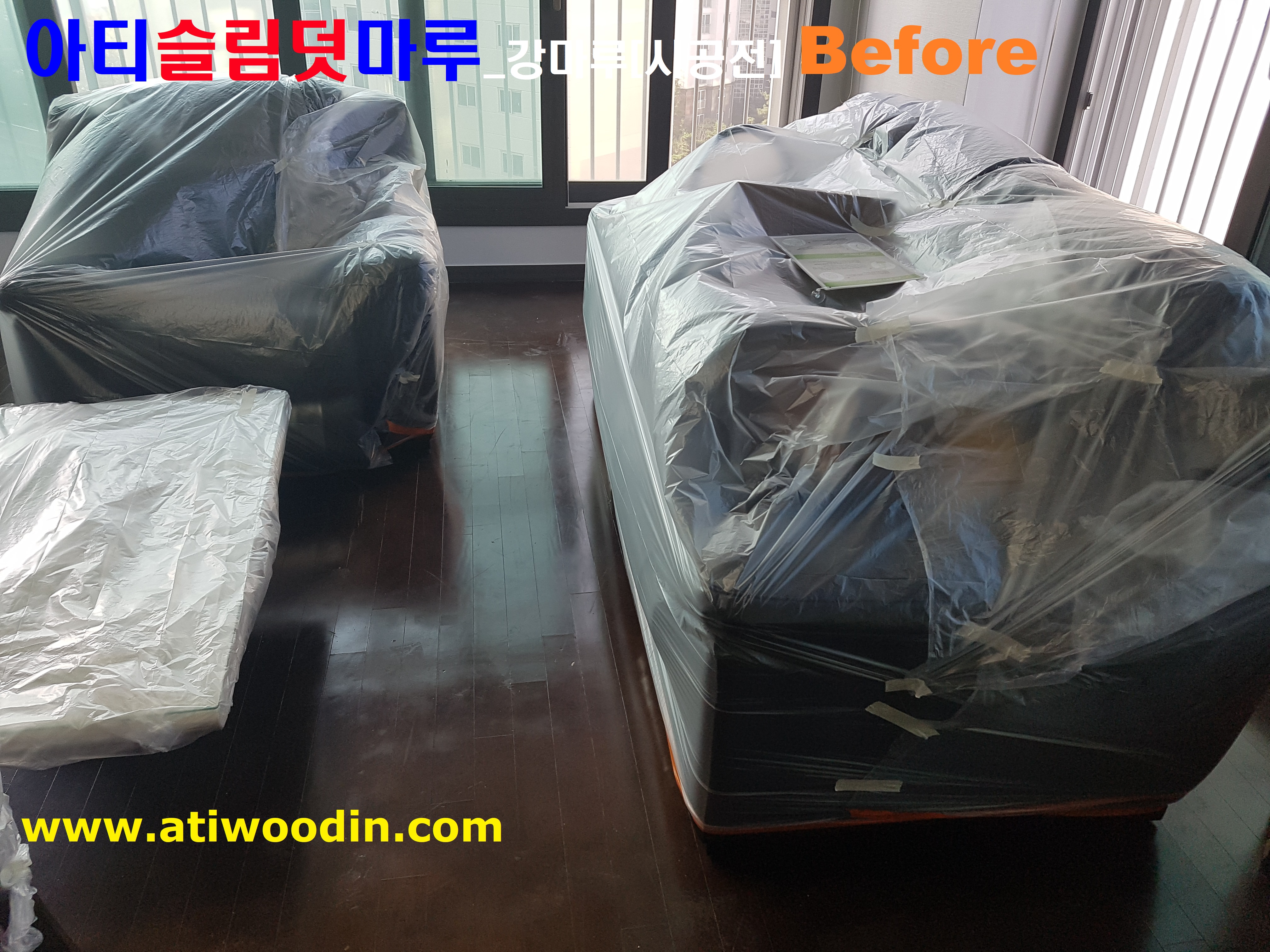 2. 짐운반적용덧마루시공전 사전준비작업- 살고있는집 거실 및 주방 쇼파등 큰 짐에 한하여 비닐커버링작업