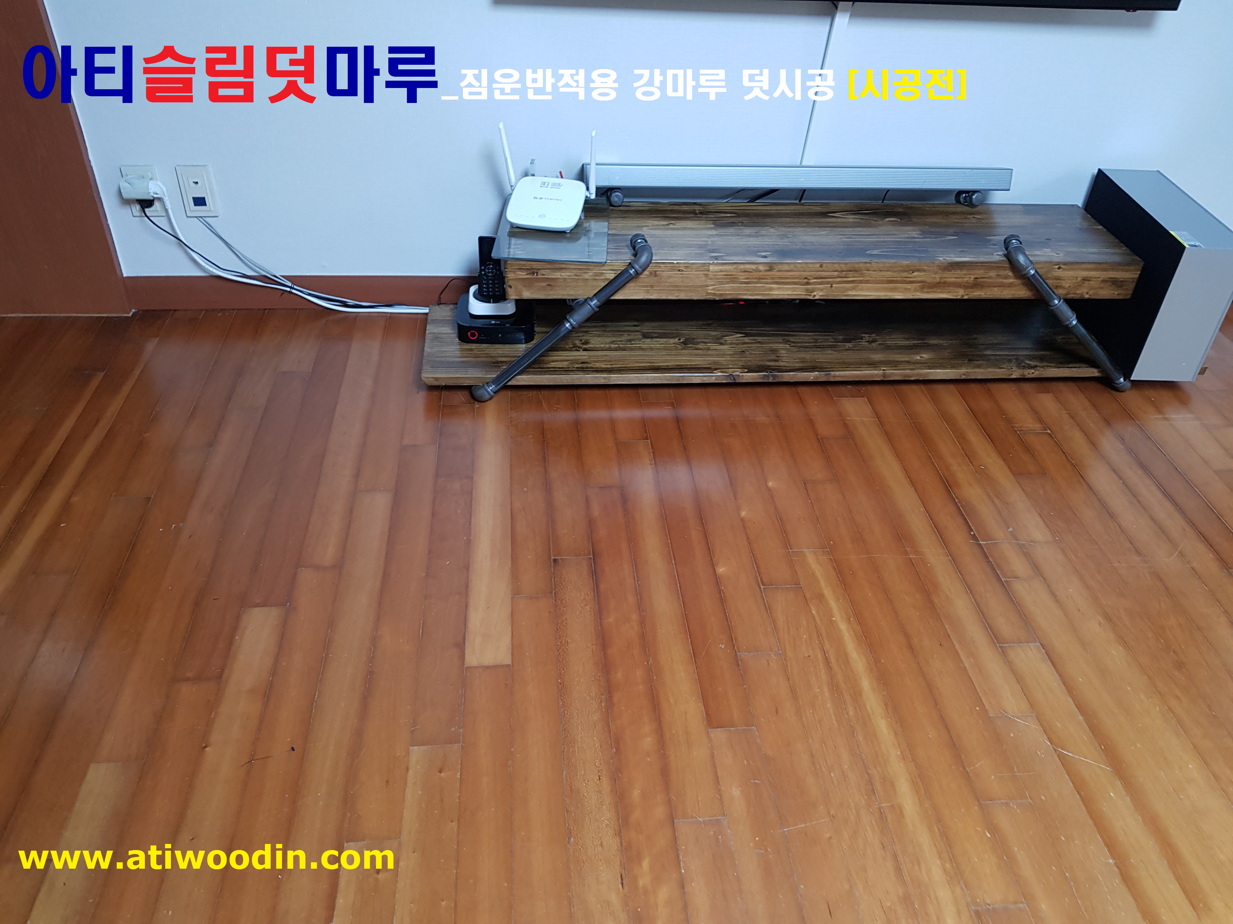 3. 짐운반적용덧마루시공 -원목마루용 친환경접착제에의한 나무재질의 바닥재를 사용하여 쇼파,TV다이, 냉장고,식탁등 큰 짐을 옮겨가면서 덧마루 밀착시공