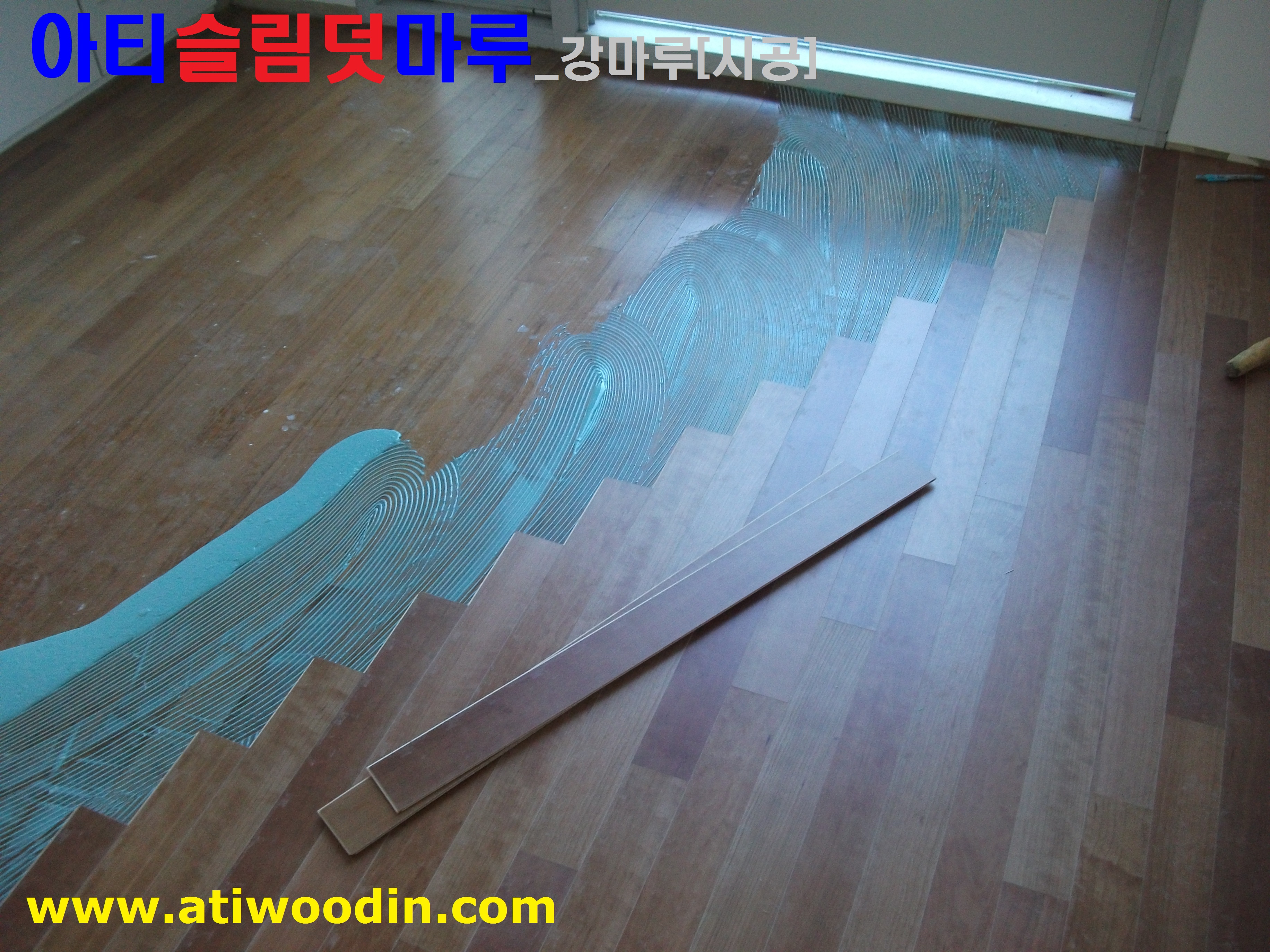 원목마루용 친환경접착제에 의한 나무재질의 바닥재를 밀착시공 하므로서 시간이지나도 들뜸현상이 없어 결로현상을 보완하고 기존 마루에 영향없이 마루새단장 할 수 있습니다