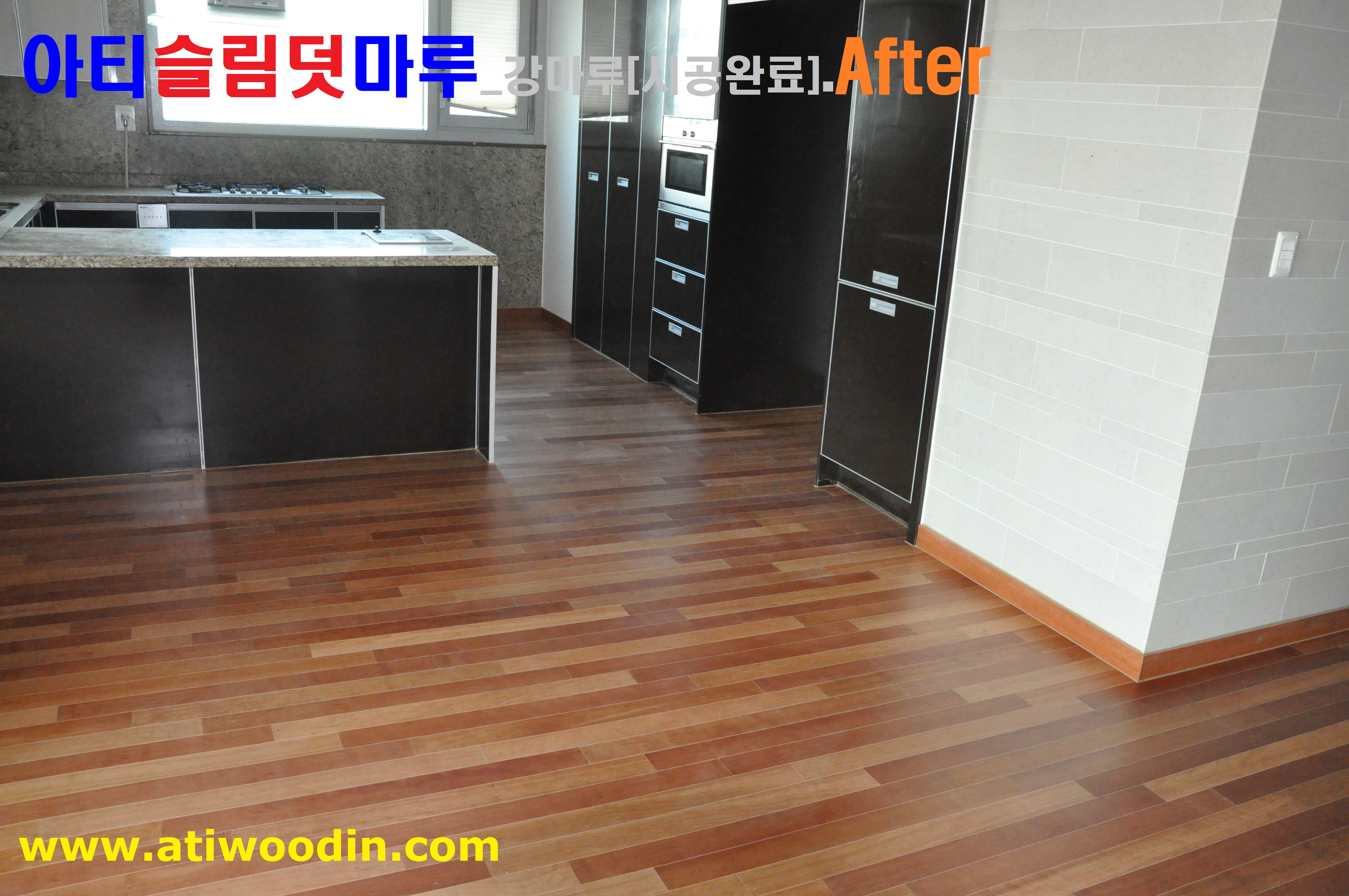 아티슬림덧마루 시공완료 후 거실 및 주방에 대한 시공완료입니다