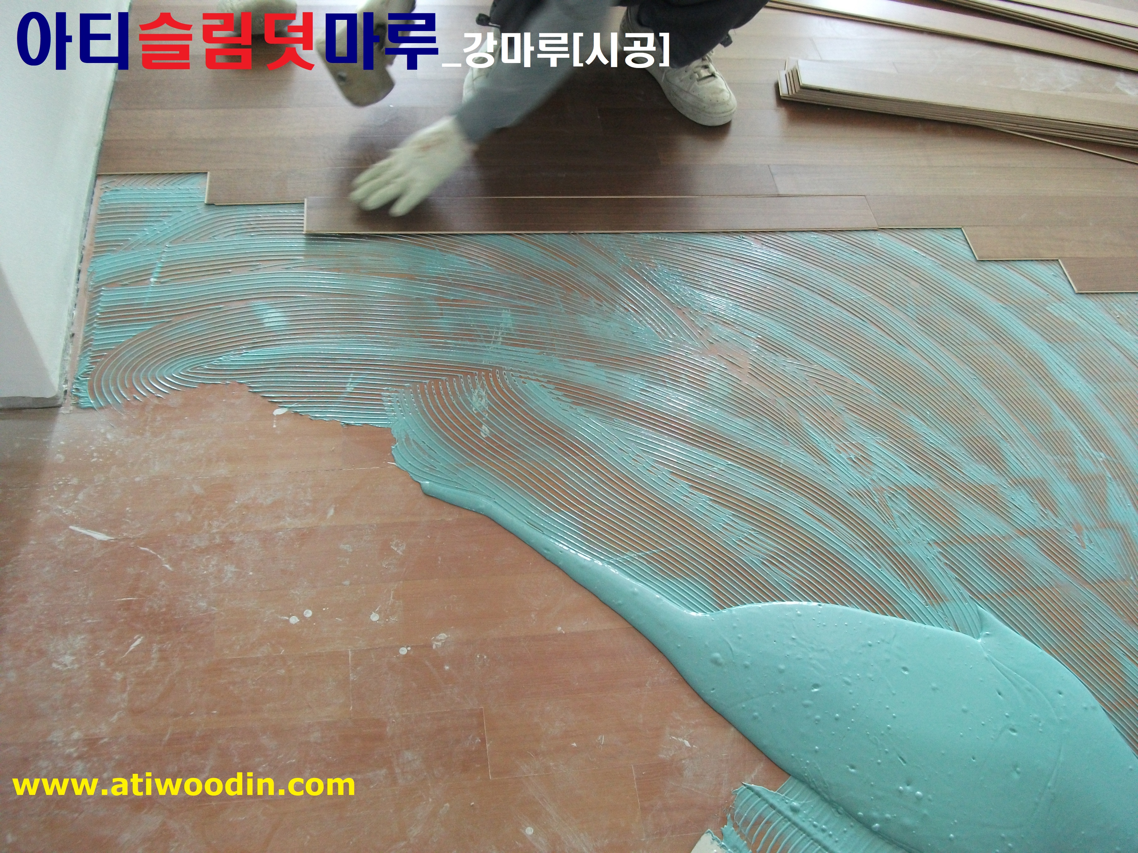 2. NO철거덧마루시공-원목마루용 친환경접착제에의한 나무재질의 강마루바닥재를 적용하여 밀착시공