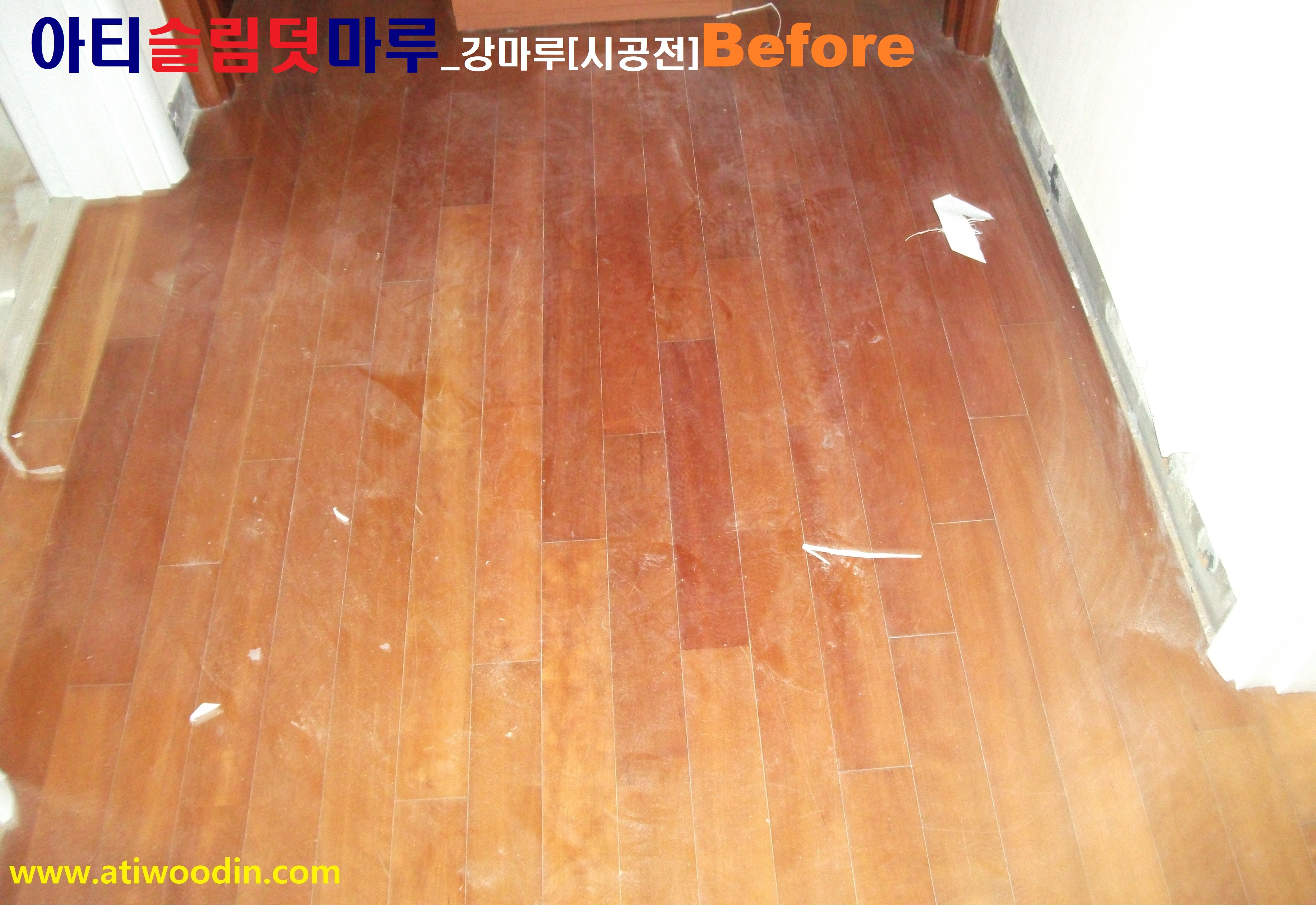 1. 이사전 빈집 NO철거덧마루시공전 노후바닥 - 표면변색 및 벚겨짐,긁힘등 노후바닥