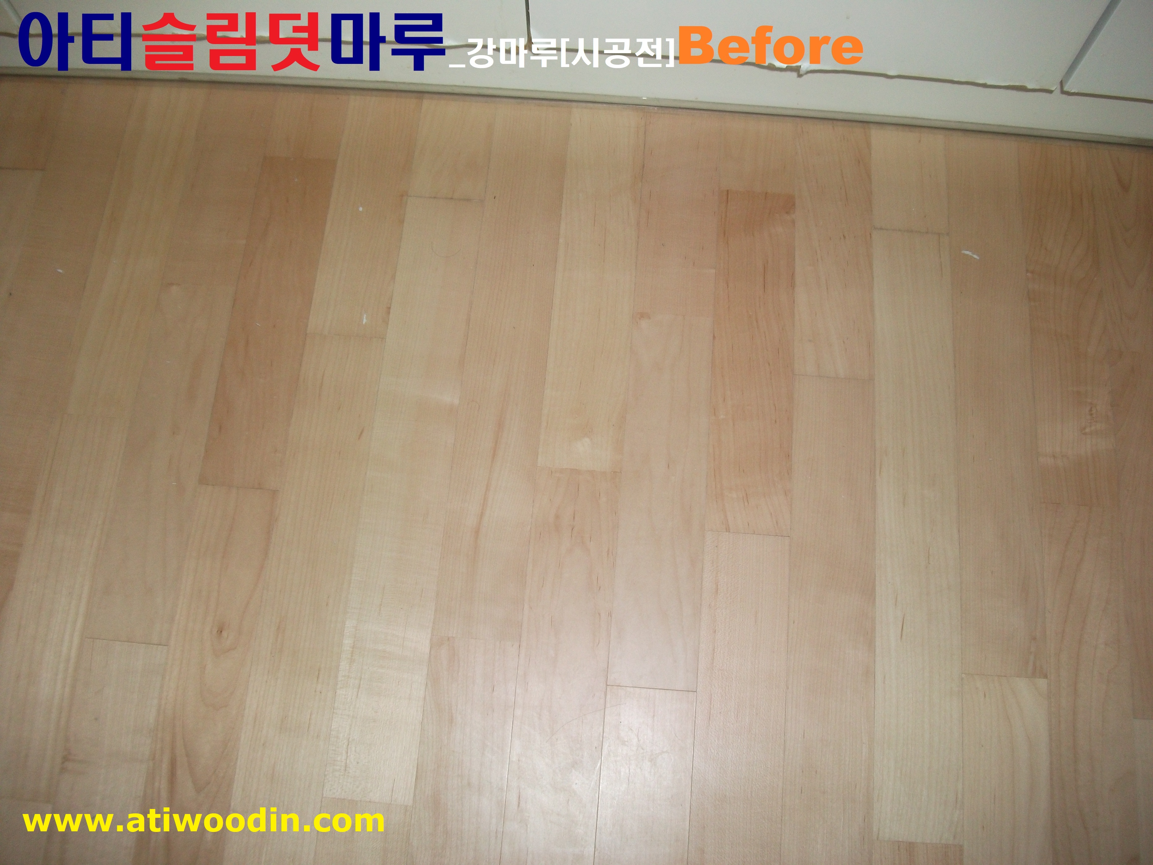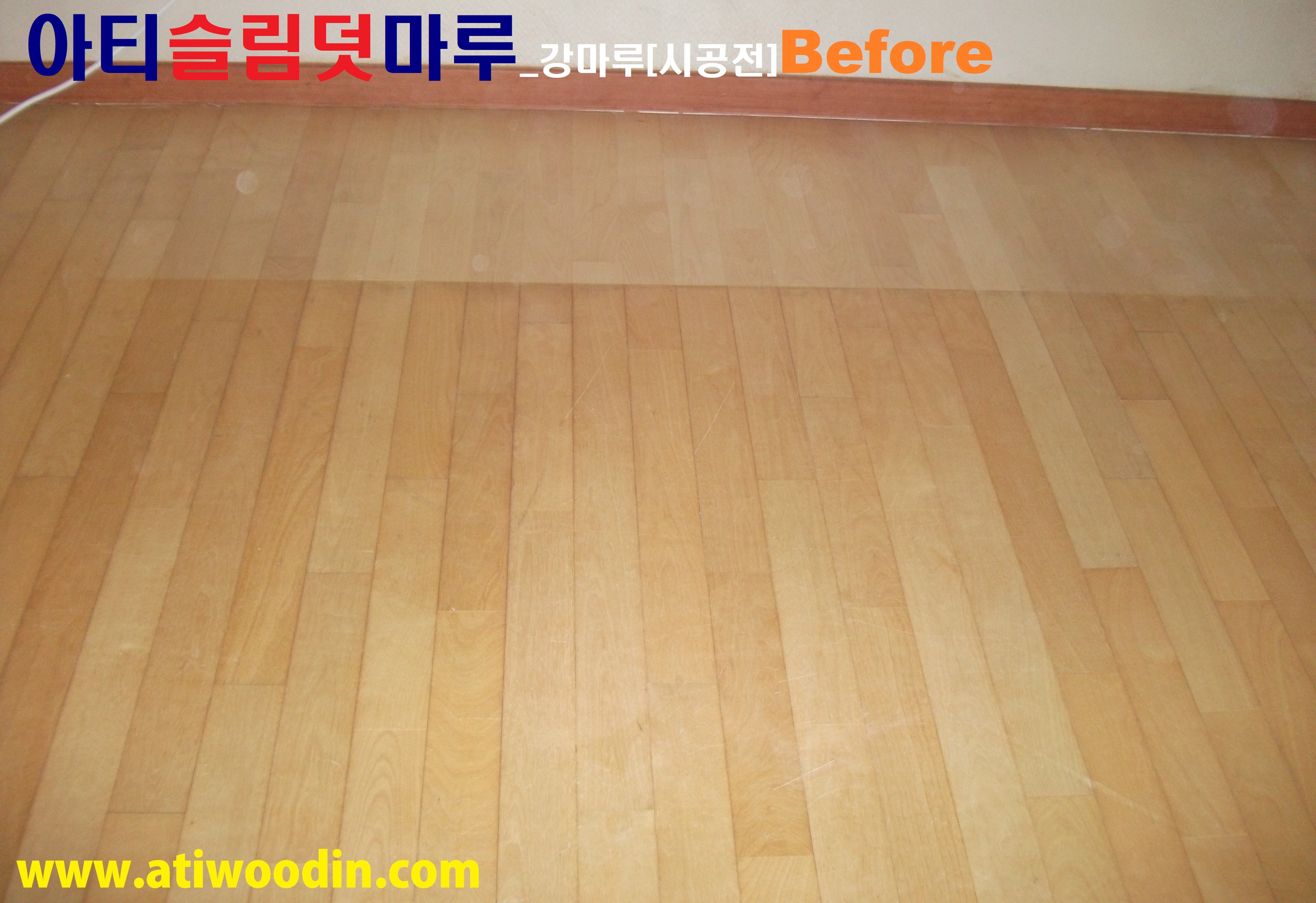 1. 짐운반적용덧마루시공전 - 색상변색 ,벚겨짐 및 긁힘등 노후바닥으로 덧마루시공전 Before