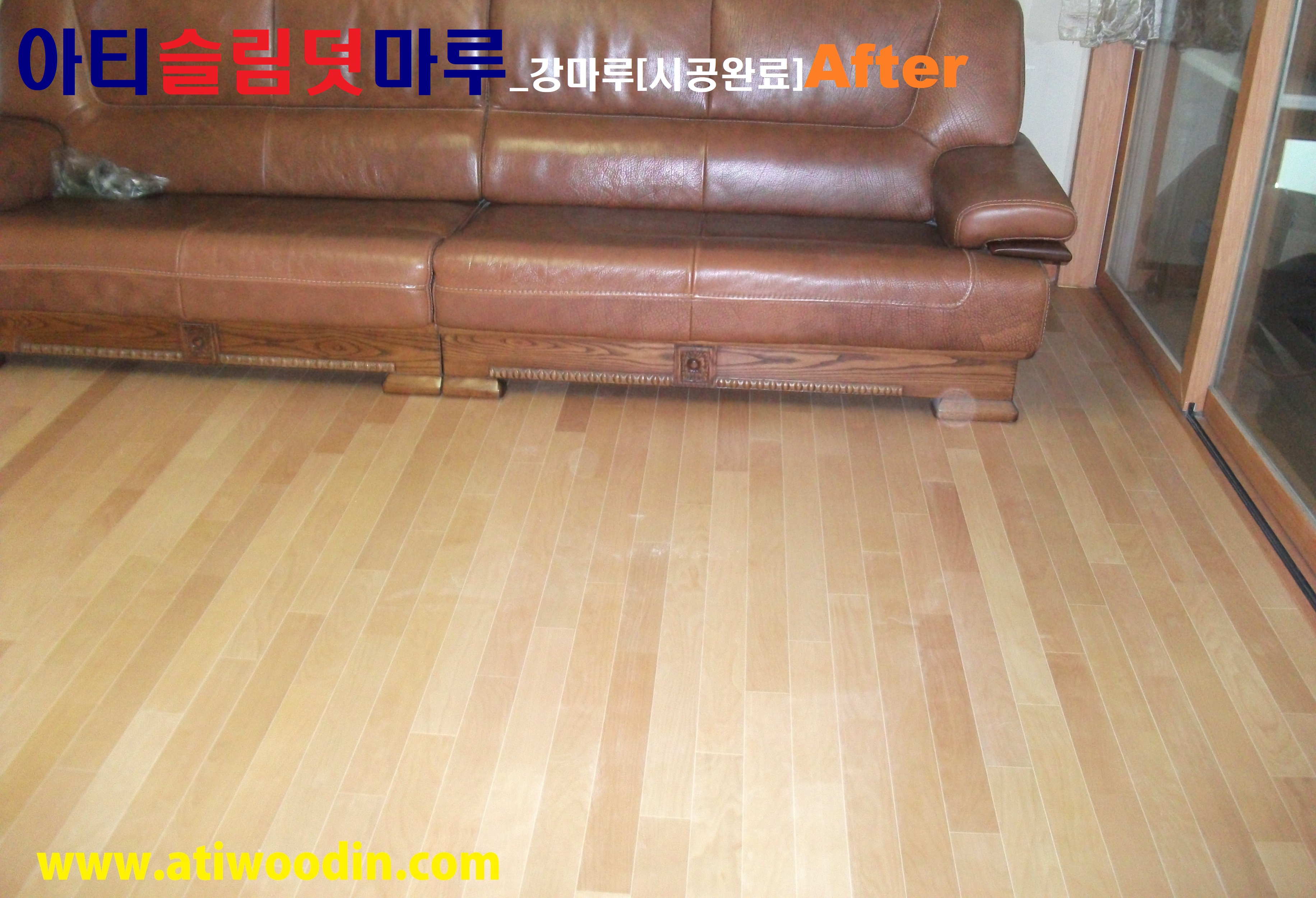 아티슬림덧마루_강마루시공은 기존노후마루에 대한 NO철거로 철거소음, 철거먼지, 철거비용과 시간등 철거고민없이 빠른시간내에 마루새단장 시공방법으로 원목마루용 친환경접착제에의한 강마루바닥재로 밀착시공하여 시간이 지나도 들뜸현상이 없어 결로현상을 보완 기존마루에 영향없이 마루시공할 수 있으며 표면은 긁힘이나 스크래치강한 강마루바닥재사용과 친환경접착제 사용으로 냄새도 없어 당일시공완료후 바로생활 할 수 있는 장점이 있는 시공방법으로 살고있는집에 대한 짐운반적용덧마루시공과 이사하기전 비워있는집에 대한 NO철거덧마루시공 2가지 방법이 있습니다.