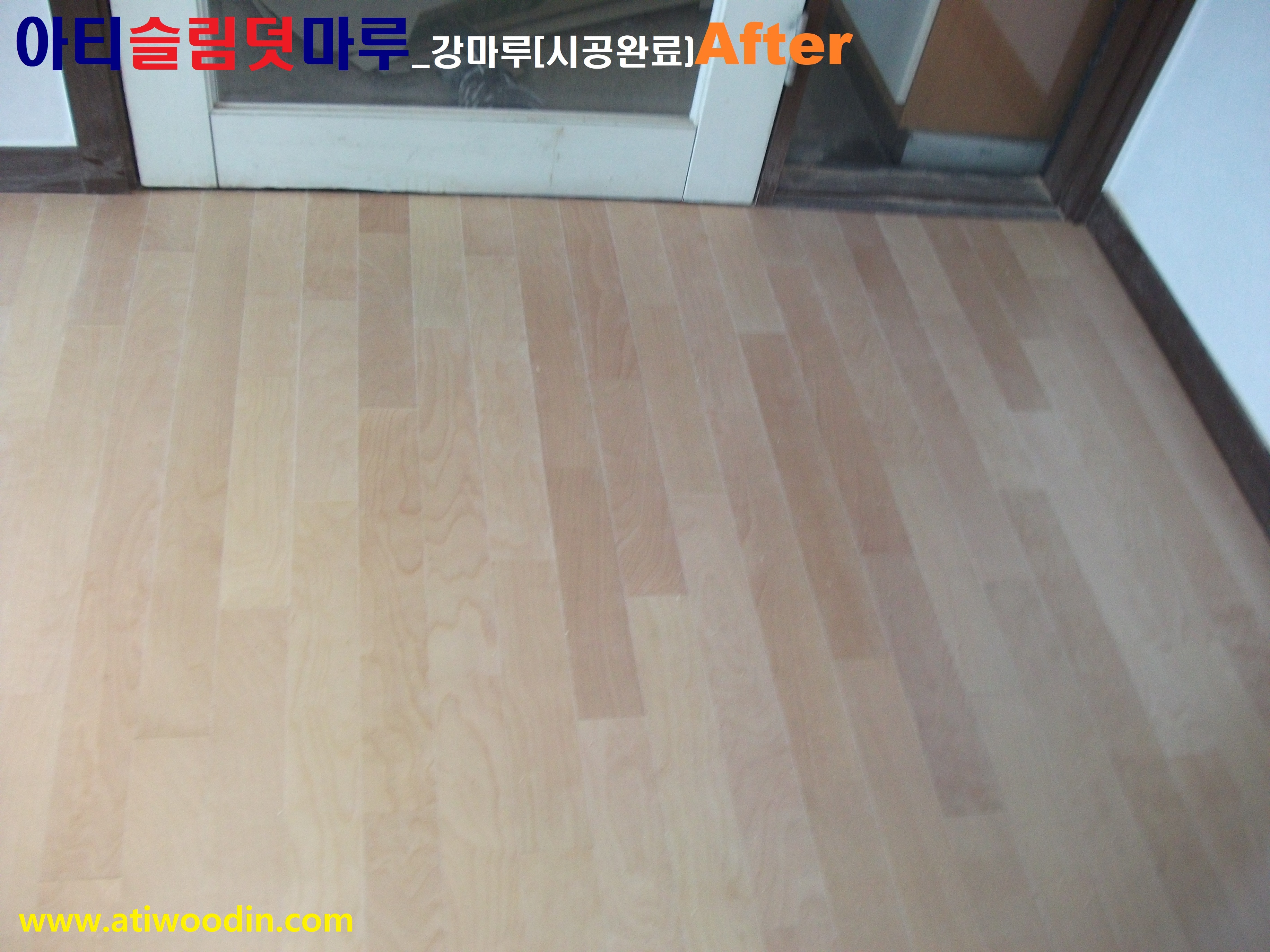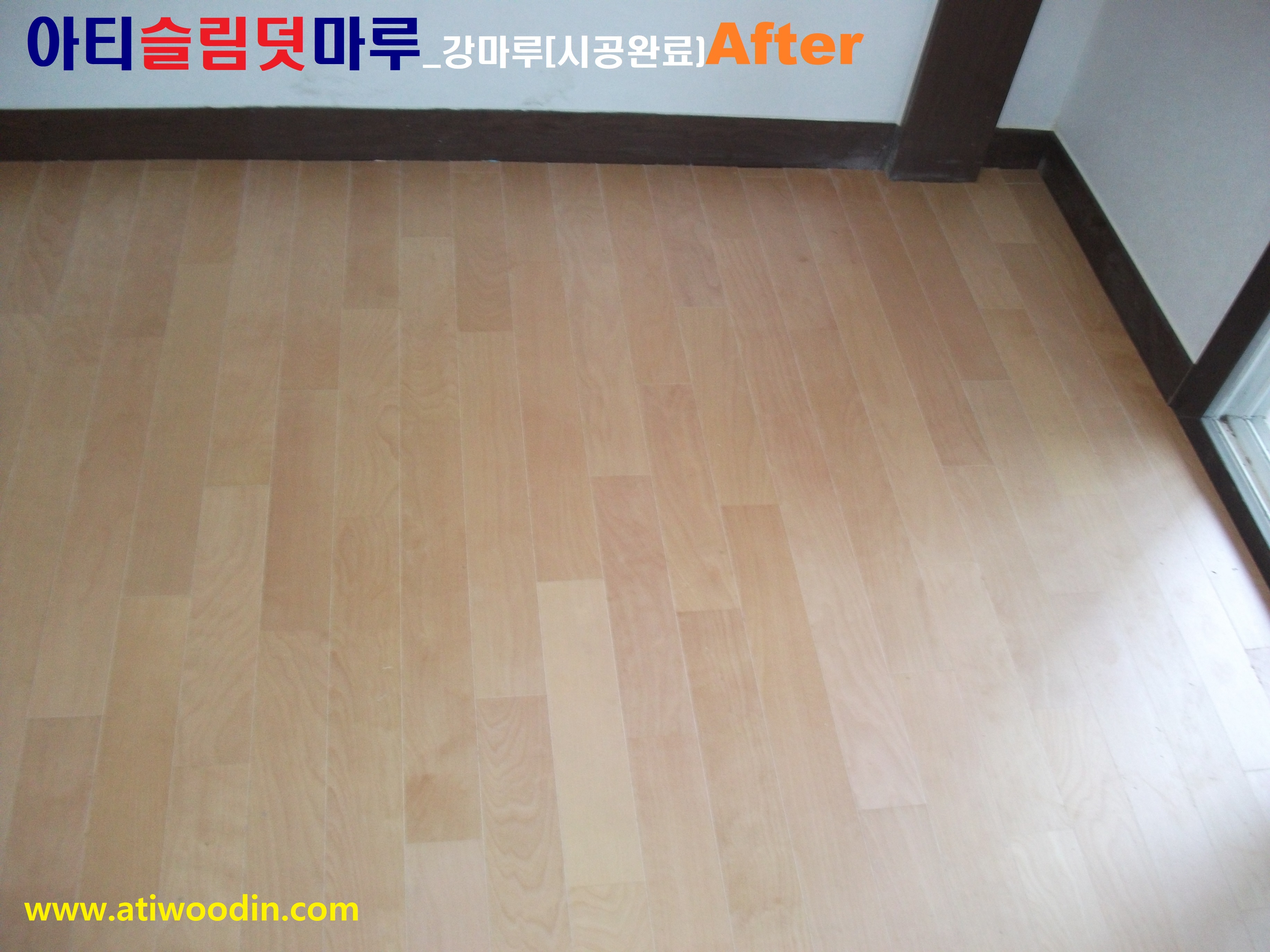 아티슬림덧마루_강마루시공은 기존노후마루에 대한 NO철거로 철거소음, 철거먼지, 철거비용과 시간등 철거고민없이 빠른시간내에 마루새단장 시공방법으로 원목마루용 친환경접착제에의한 강마루바닥재로 밀착시공하여 시간이 지나도 들뜸현상이 없어 결로현상을 보완 기존마루에 영향없이 마루시공할 수 있으며 표면은 긁힘이나 스크래치강한 강마루바닥재사용과 친환경접착제 사용으로 냄새도 없어 당일시공완료후 바로생활 할 수 있는 장점이 있는 시공방법으로 살고있는집에 대한 짐운반적용덧마루시공과 이사하기전 비워있는집에 대한 NO철거덧마루시공 2가지 방법이 있습니다.