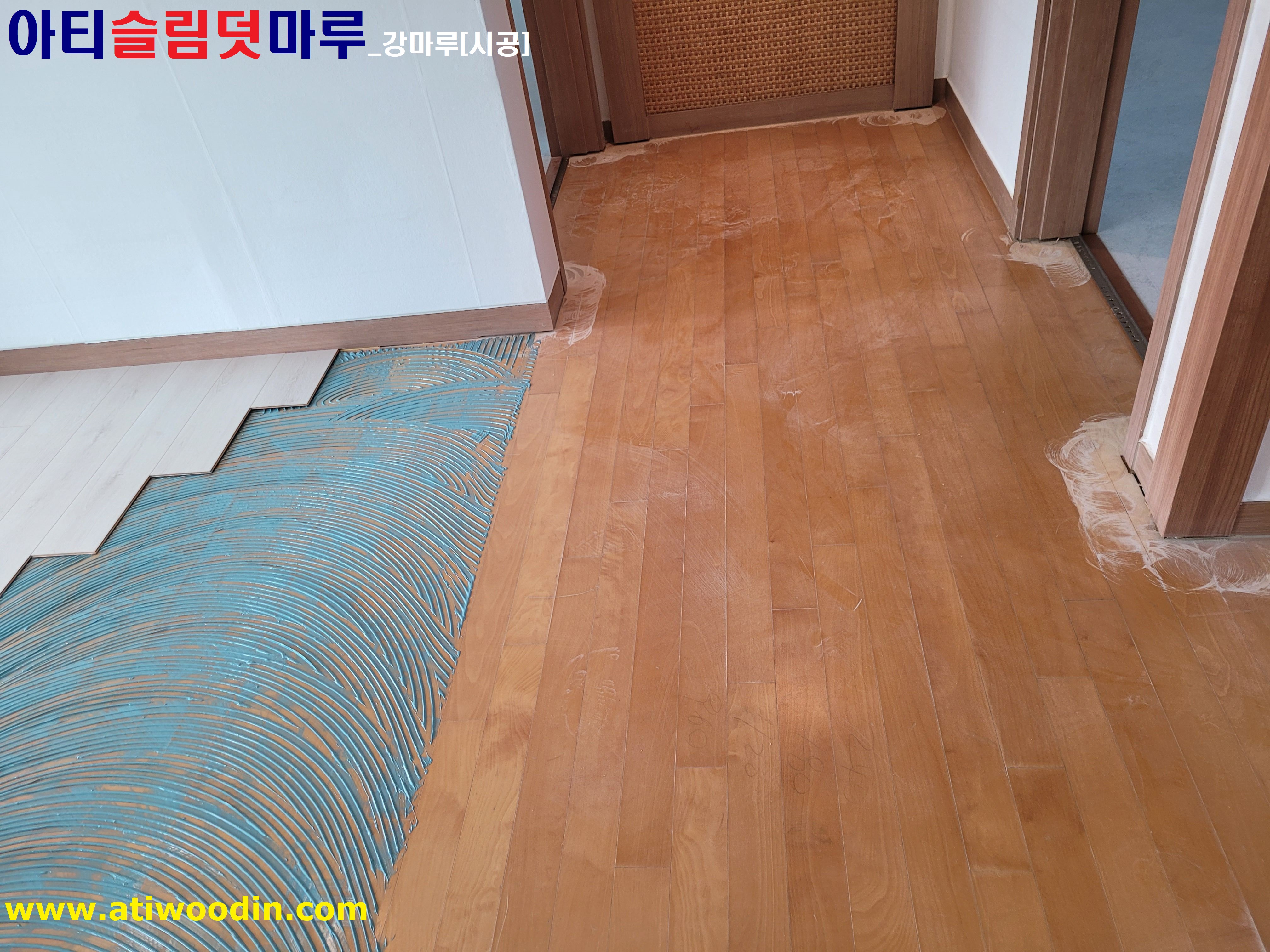 2. 이사전 빈집 NO철거덧마루시공-원목마루용 친환경접착제에의한 나무재질의 바닥재로 밀착시공